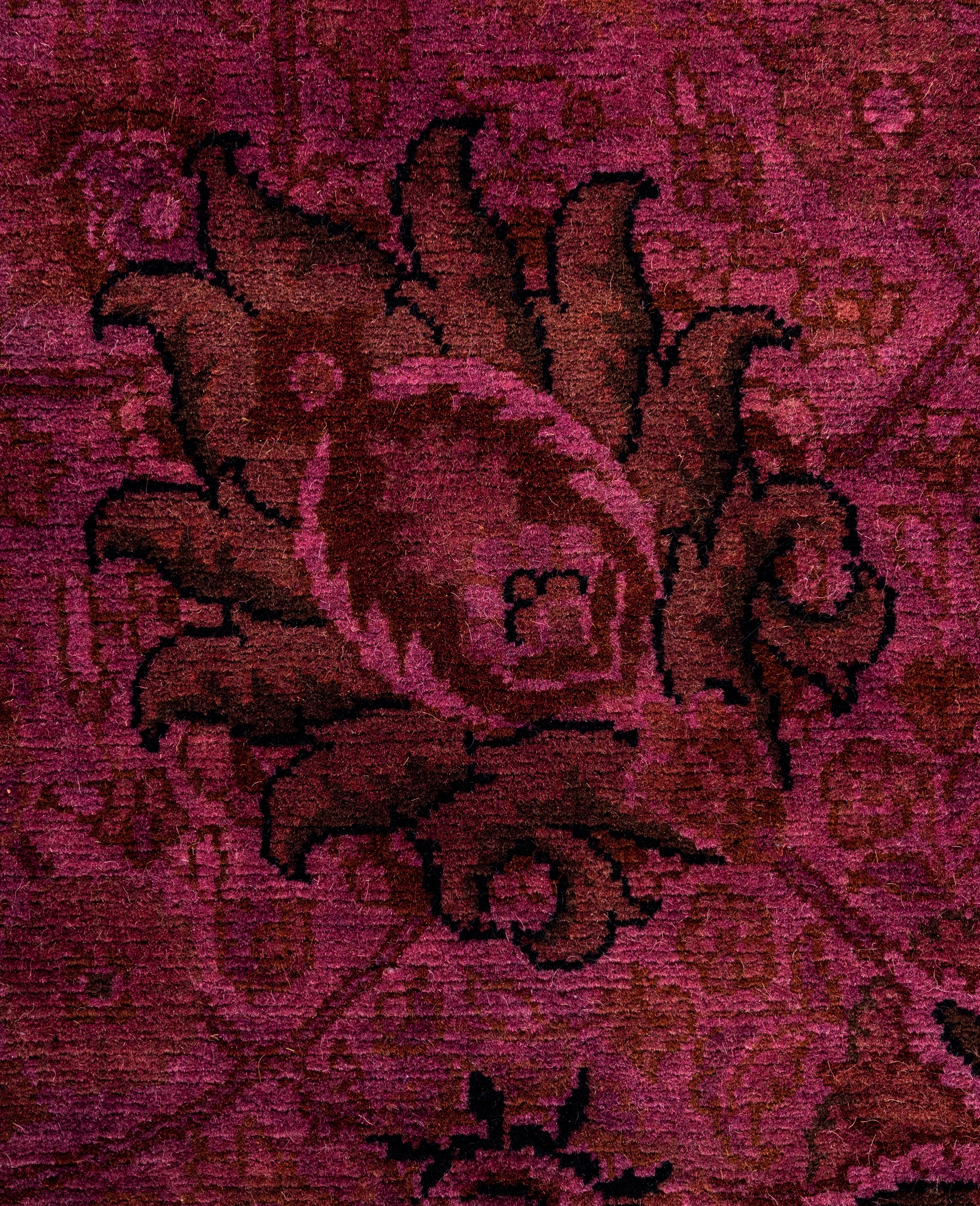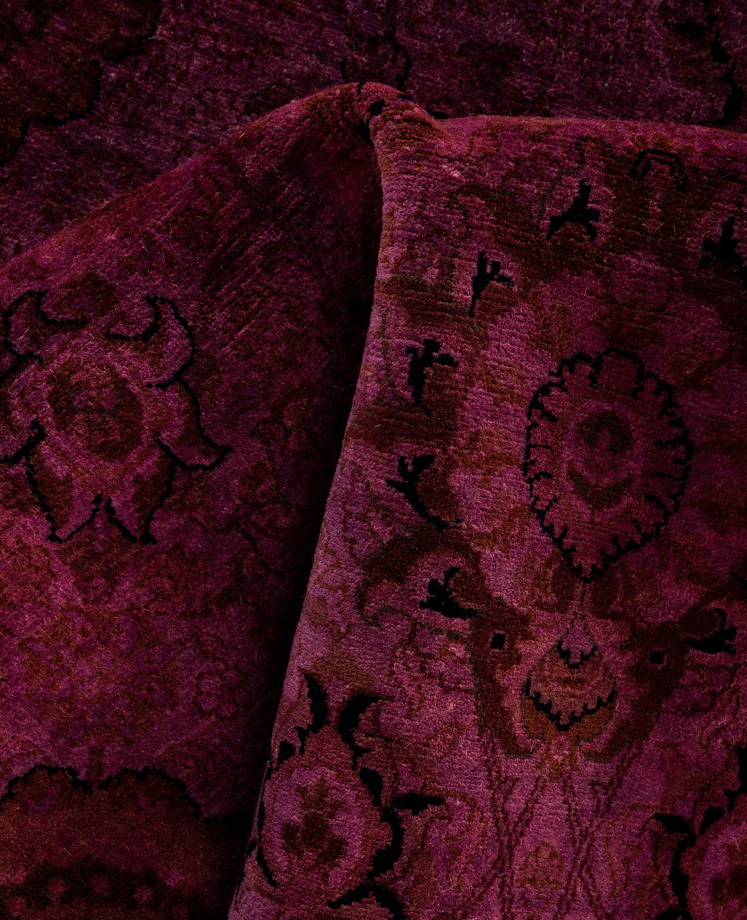 Over-dyed area rugs are created by taking vintage or traditional rugs and applying a vibrant, monochromatic dye over the existing patterns. This technique results in a bold, modern aesthetic while preserving the intricate designs beneath, blending the old with the new. The rugs are often faded and distressed before dyeing, which adds texture and depth to their appearance. The over-dye process breathes new life into worn or antique rugs, giving them a contemporary twist with rich, saturated colors like deep blues, purples, or bright reds. These rugs work well in both eclectic and modern spaces, offering a unique, artistic flair to any room. They provide a dynamic focal point, balancing between traditional craftsmanship and contemporary design trends. Over-dyed rugs are perfect for those looking to add a pop of color and character to their home decor.