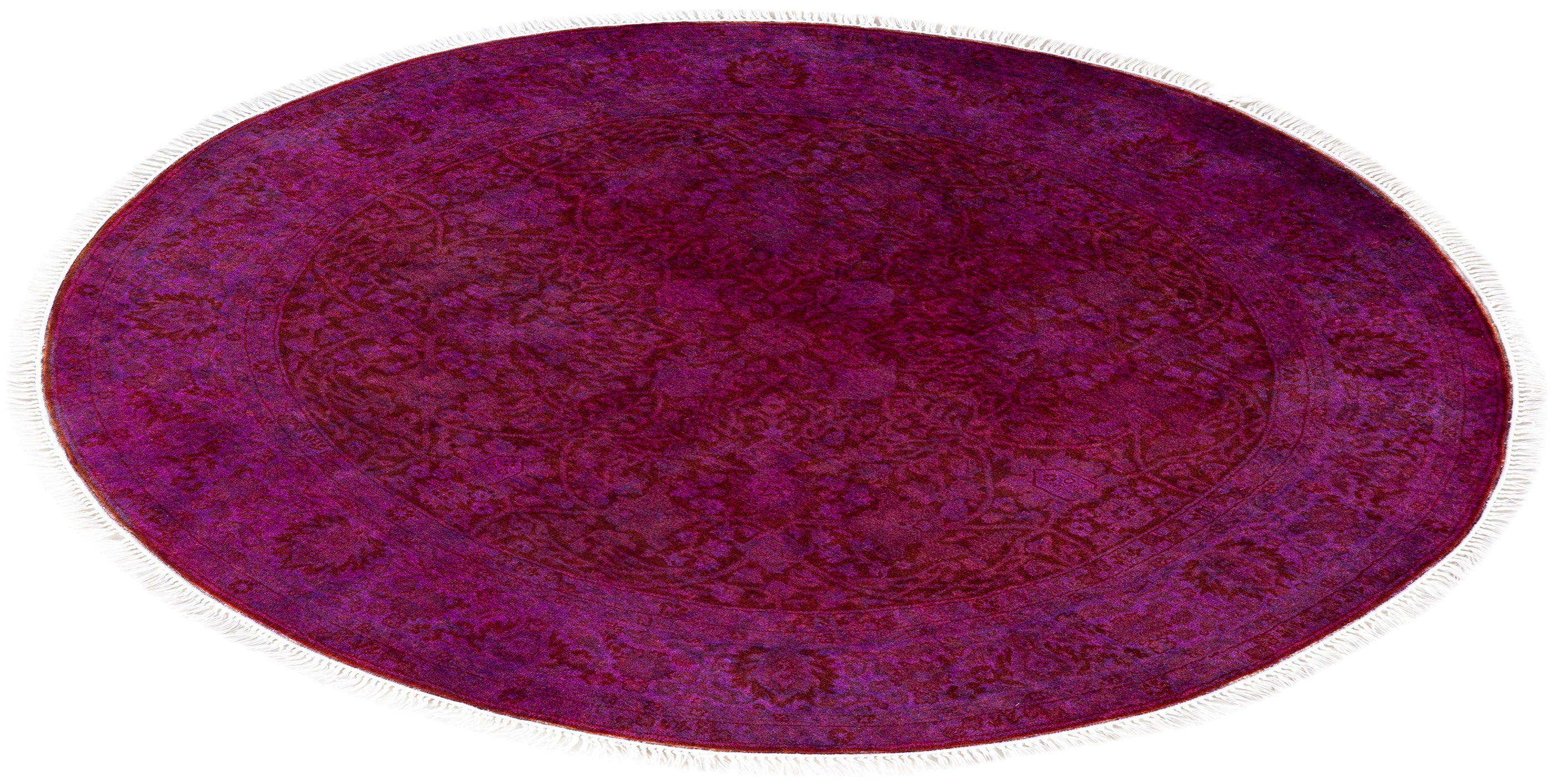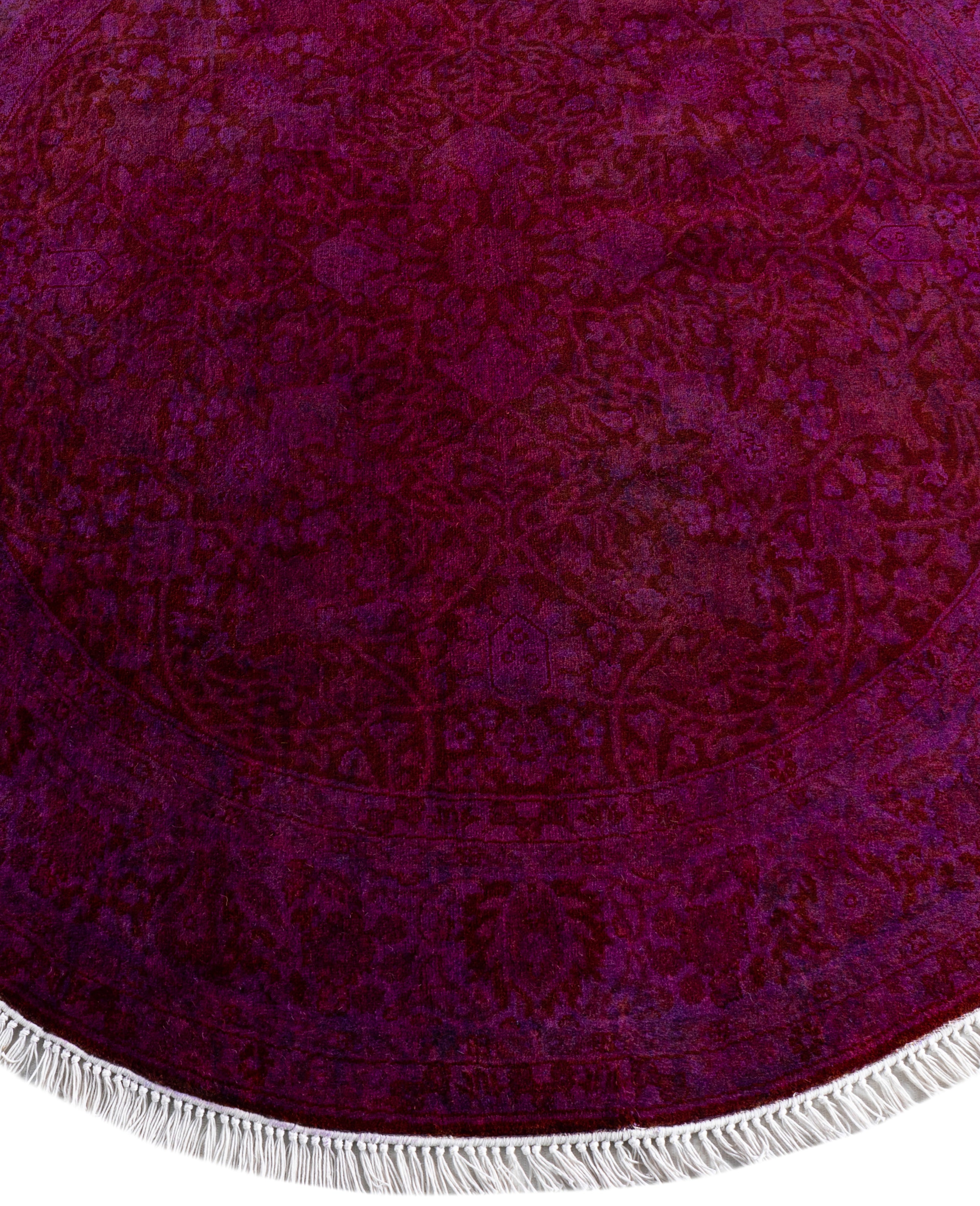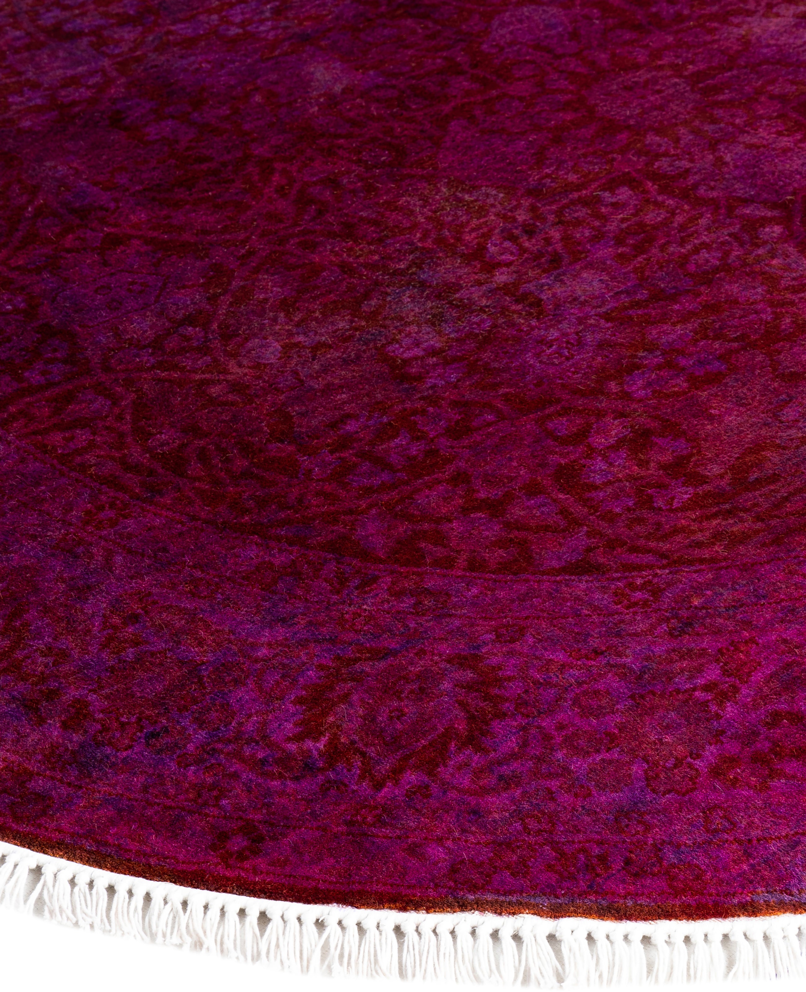 Contemporary Overdyed Wool Hand Knotted Purple Round Area Rug 4' 1" x 4' 1"