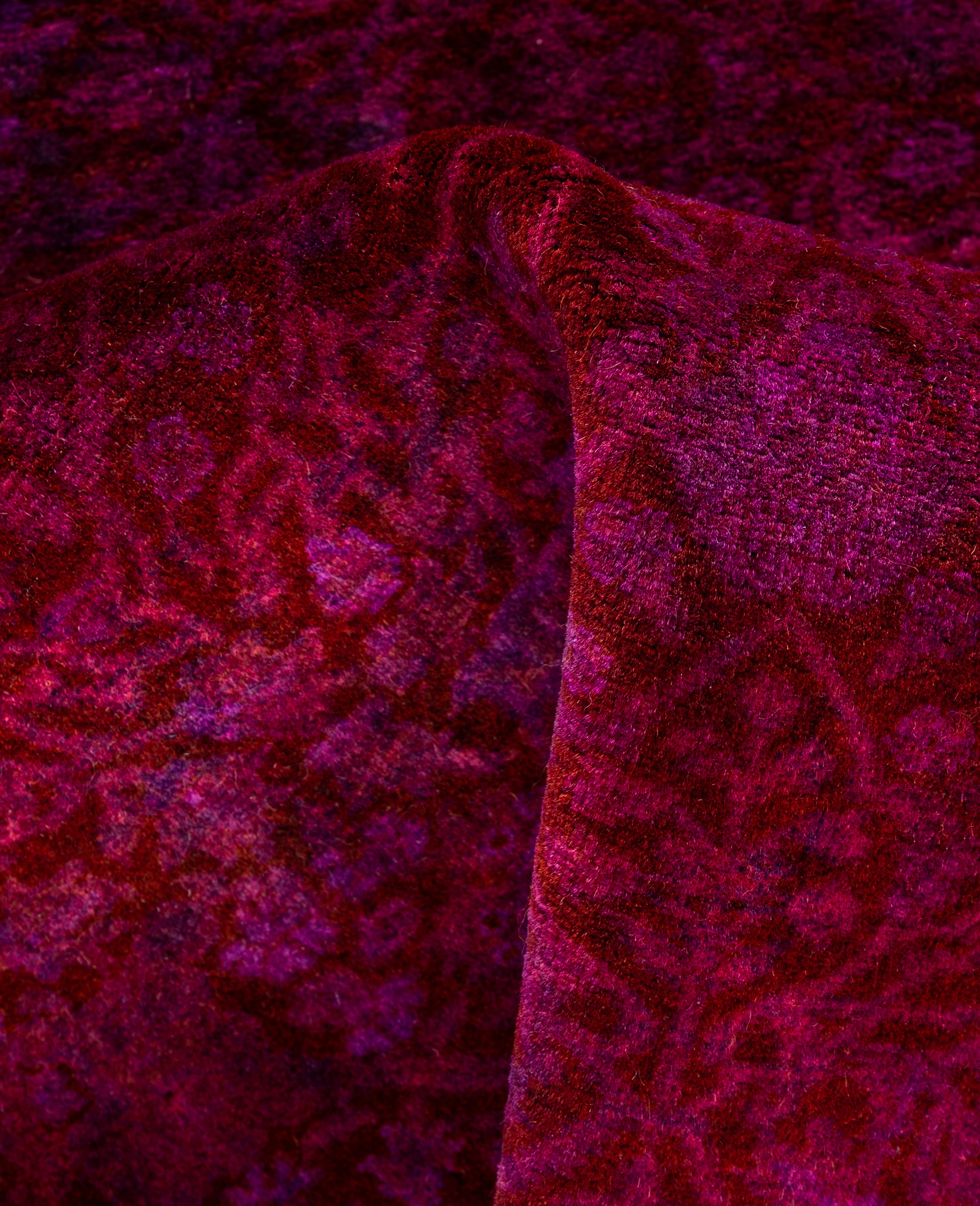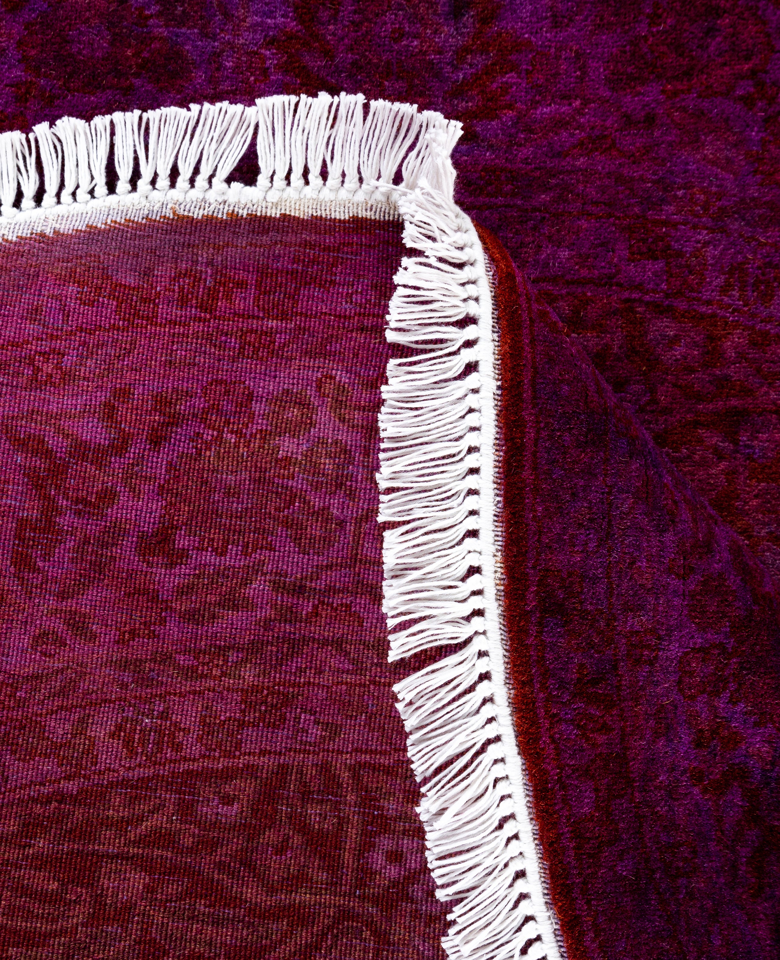 Over-dyed area rugs are created by taking vintage or traditional rugs and applying a vibrant, monochromatic dye over the existing patterns. This technique results in a bold, modern aesthetic while preserving the intricate designs beneath, blending the old with the new. The rugs are often faded and distressed before dyeing, which adds texture and depth to their appearance. The over-dye process breathes new life into worn or antique rugs, giving them a contemporary twist with rich, saturated colors like deep blues, purples, or bright reds. These rugs work well in both eclectic and modern spaces, offering a unique, artistic flair to any room. They provide a dynamic focal point, balancing between traditional craftsmanship and contemporary design trends. Over-dyed rugs are perfect for those looking to add a pop of color and character to their home decor.