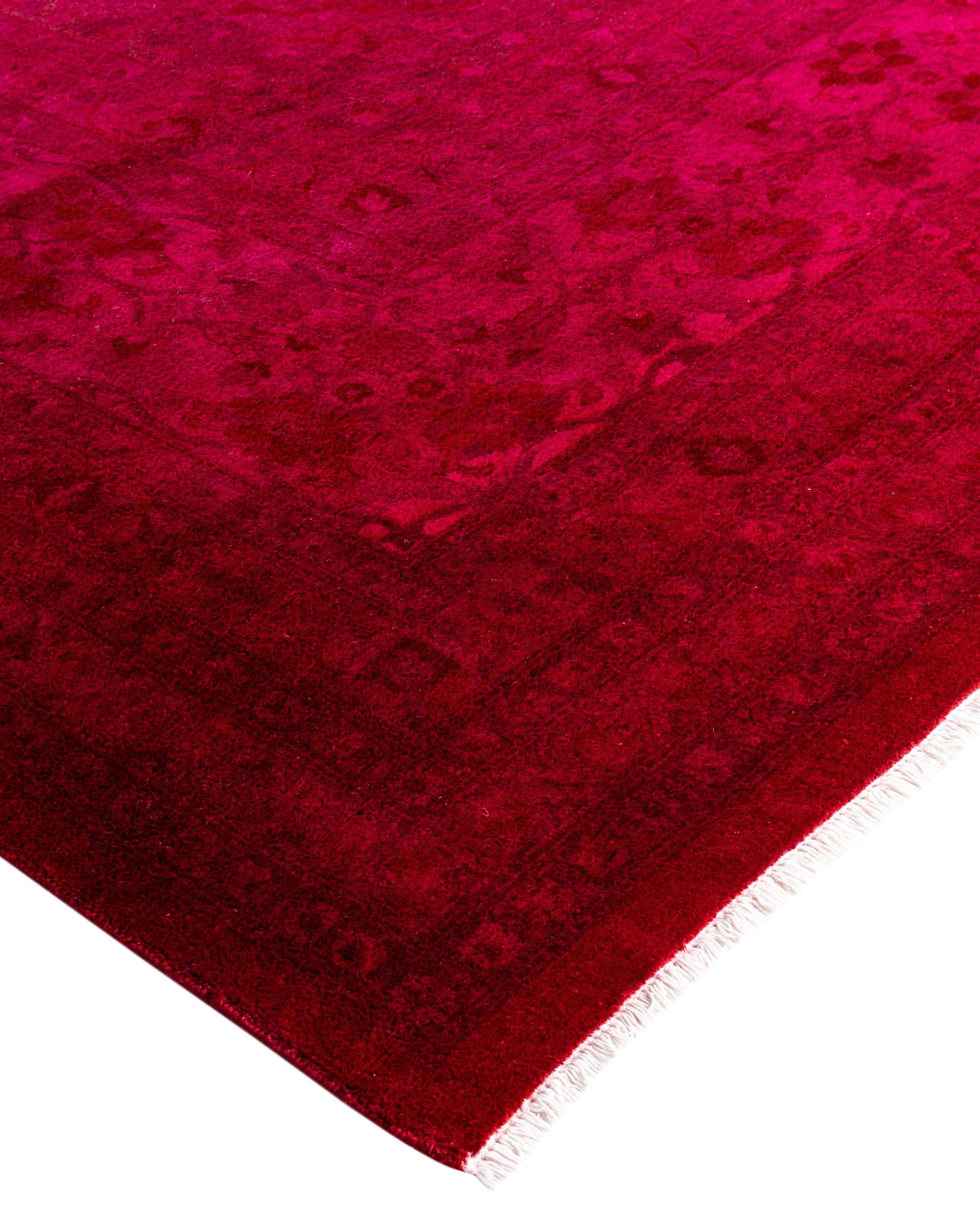 Over-dyed area rugs are created by taking vintage or traditional rugs and applying a vibrant, monochromatic dye over the existing patterns. This technique results in a bold, modern aesthetic while preserving the intricate designs beneath, blending the old with the new. The rugs are often faded and distressed before dyeing, which adds texture and depth to their appearance. The over-dye process breathes new life into worn or antique rugs, giving them a contemporary twist with rich, saturated colors like deep blues, purples, or bright reds. These rugs work well in both eclectic and modern spaces, offering a unique, artistic flair to any room. They provide a dynamic focal point, balancing between traditional craftsmanship and contemporary design trends. Over-dyed rugs are perfect for those looking to add a pop of color and character to their home decor.
