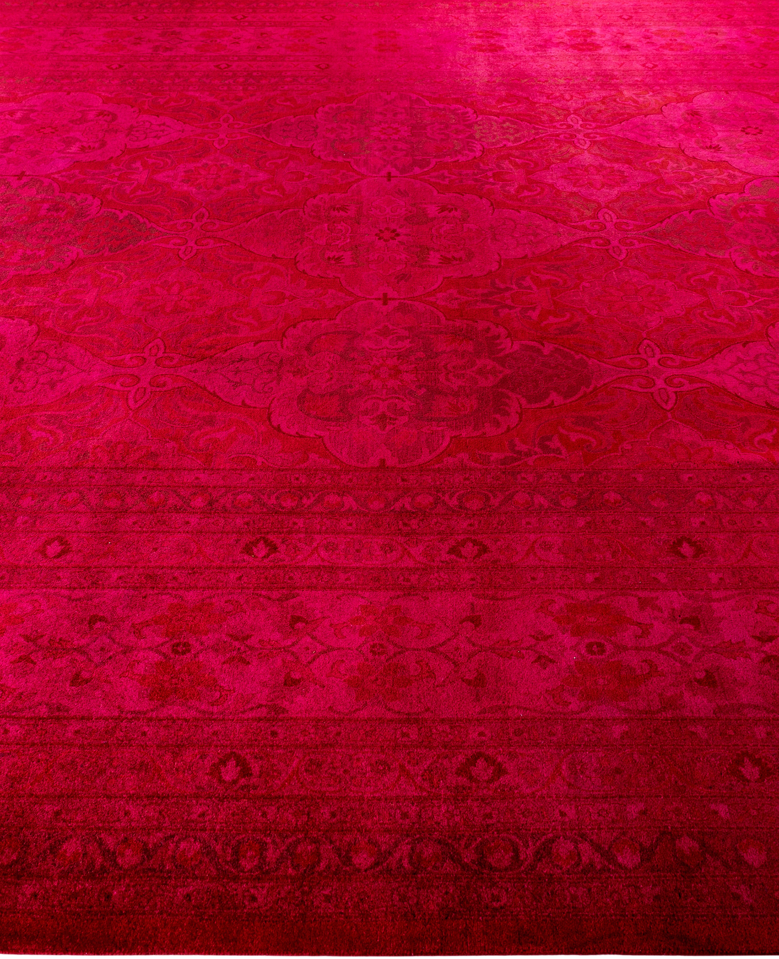 Contemporary Overdyed Wool Hand Knotted Pink Area Rug 10' 4" x 14' 2"
