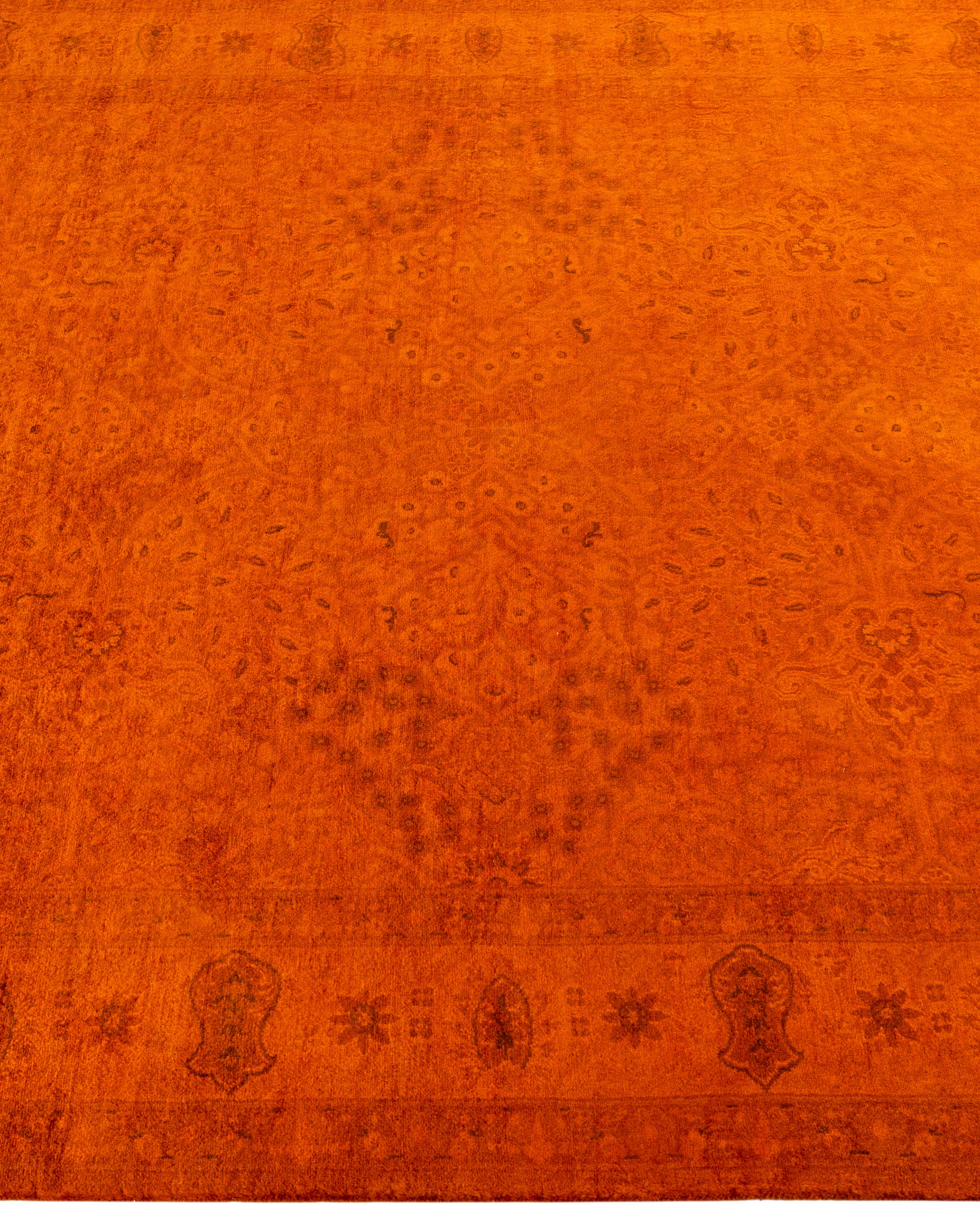 Contemporary Overdyed Wool Hand Knotted Orange Area Rug 4' 8" x 7' 3"