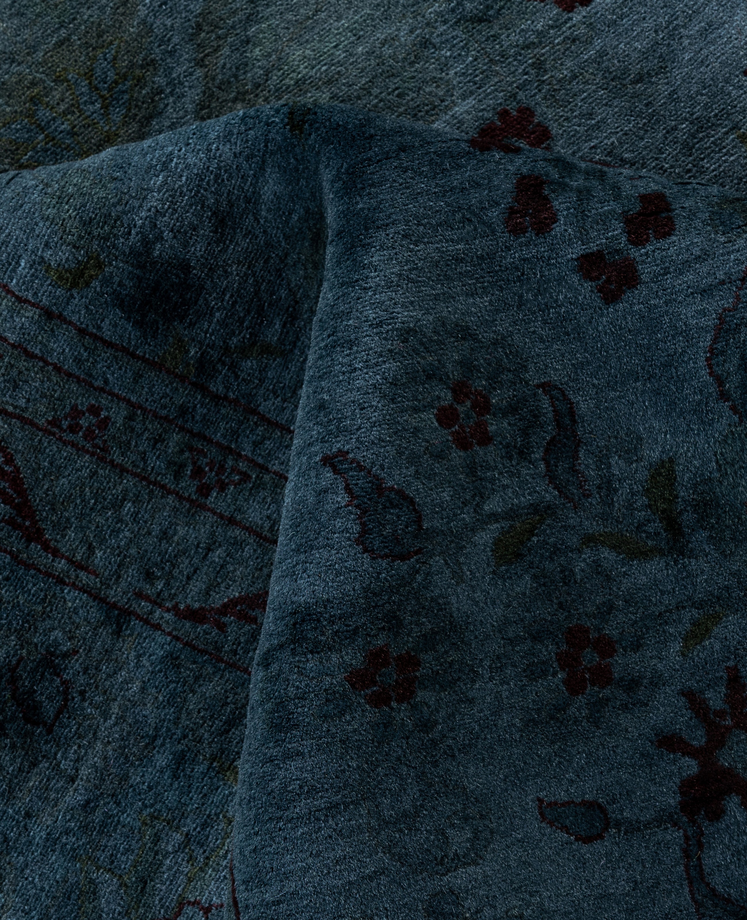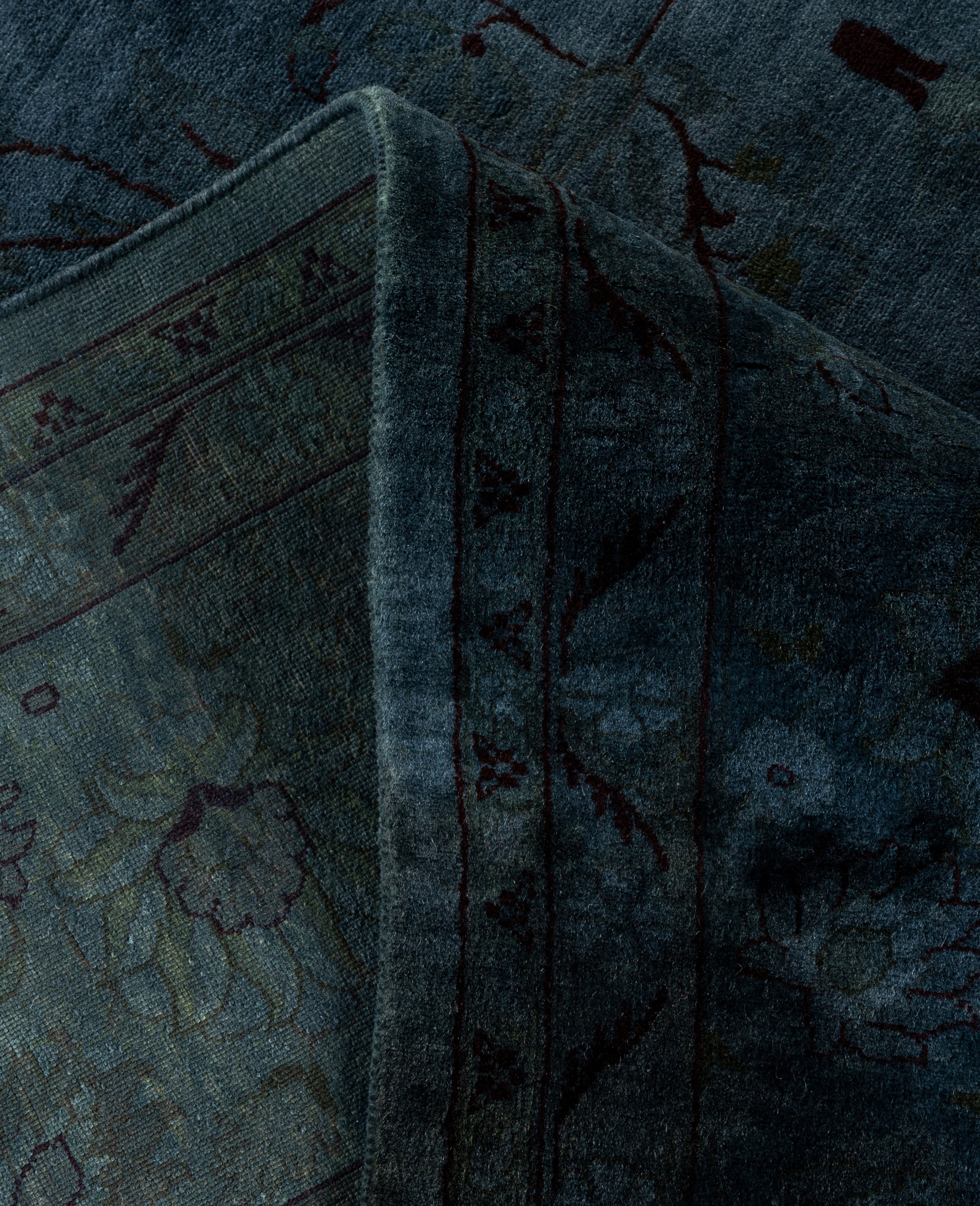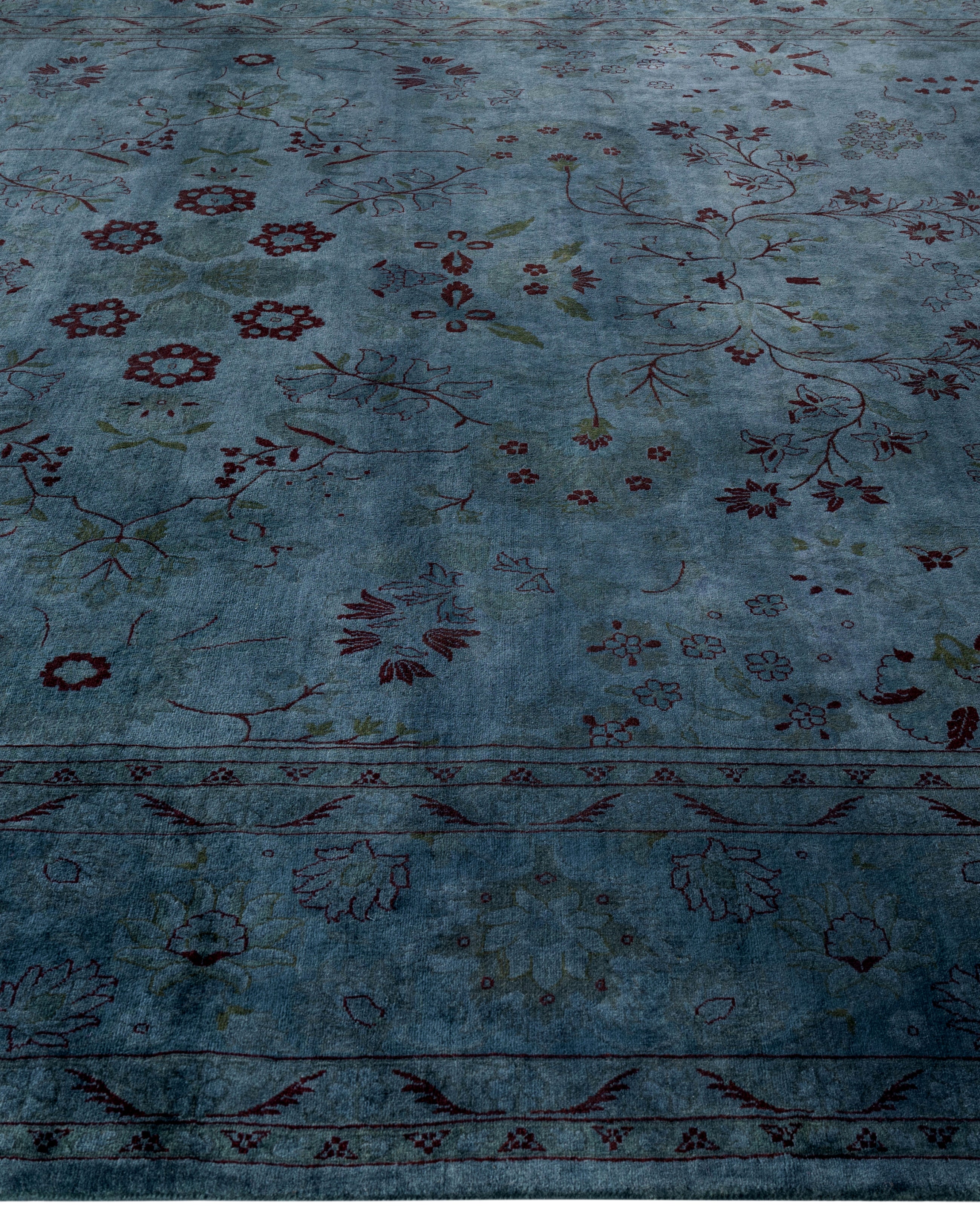 Over-dyed area rugs are created by taking vintage or traditional rugs and applying a vibrant, monochromatic dye over the existing patterns. This technique results in a bold, modern aesthetic while preserving the intricate designs beneath, blending the old with the new. The rugs are often faded and distressed before dyeing, which adds texture and depth to their appearance. The over-dye process breathes new life into worn or antique rugs, giving them a contemporary twist with rich, saturated colors like deep blues, purples, or bright reds. These rugs work well in both eclectic and modern spaces, offering a unique, artistic flair to any room. They provide a dynamic focal point, balancing between traditional craftsmanship and contemporary design trends. Over-dyed rugs are perfect for those looking to add a pop of color and character to their home decor.