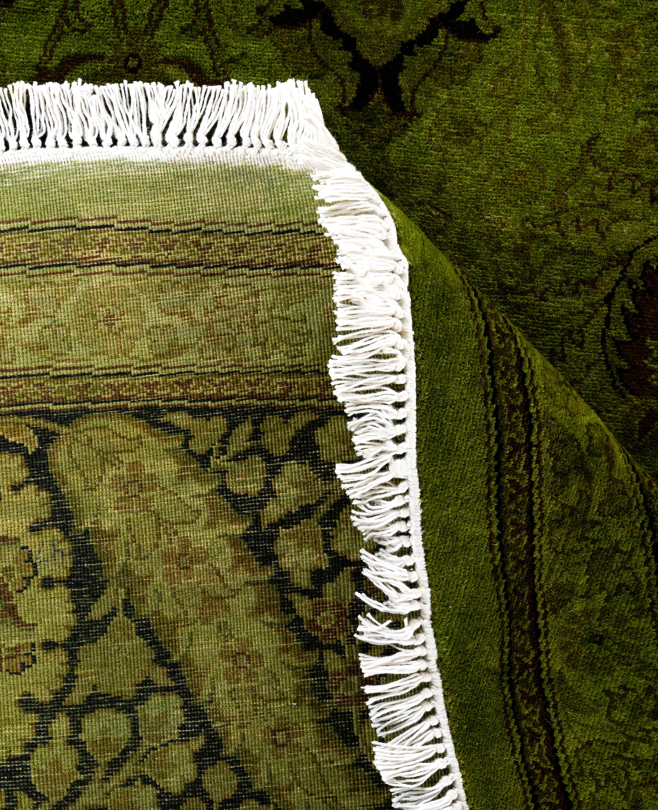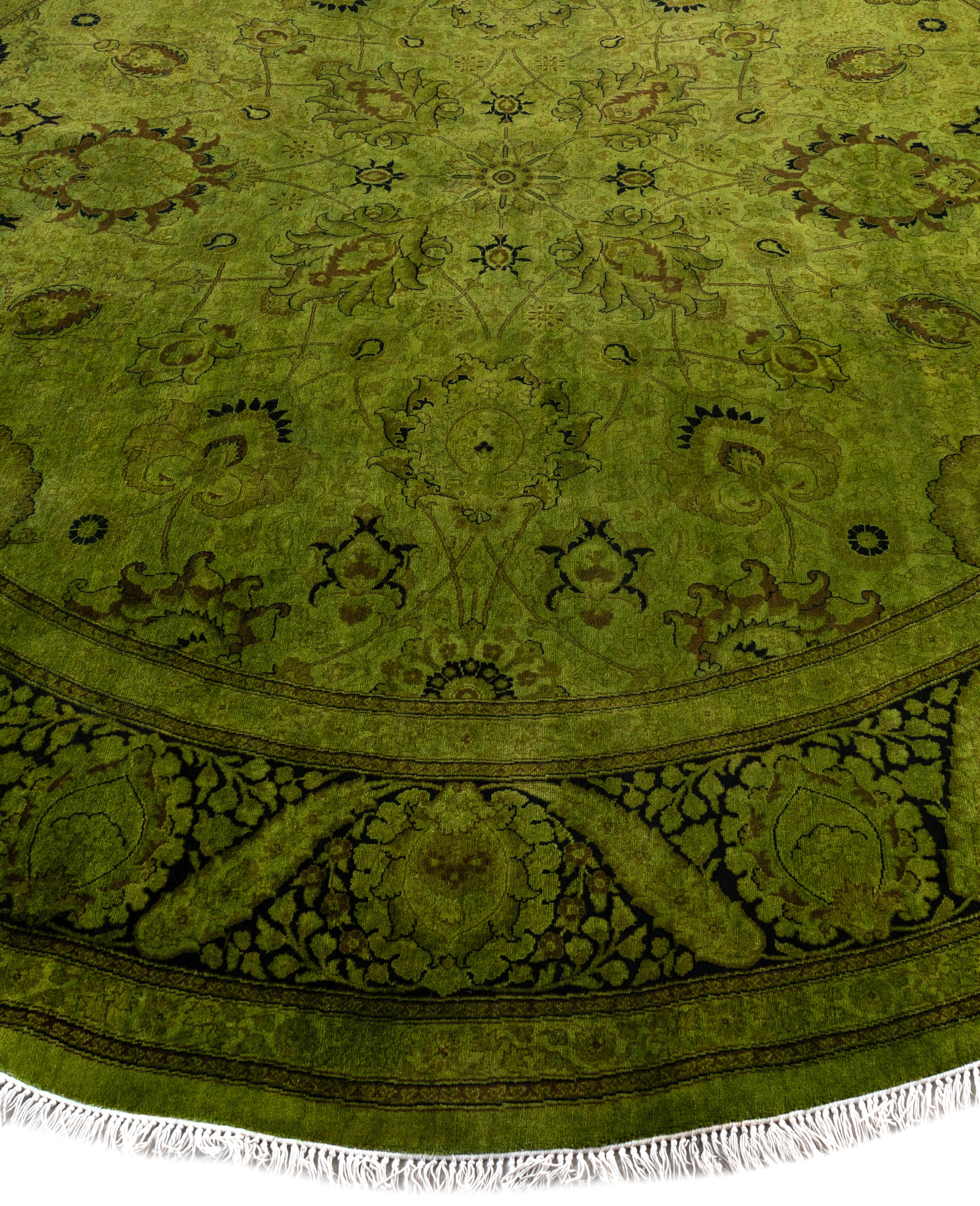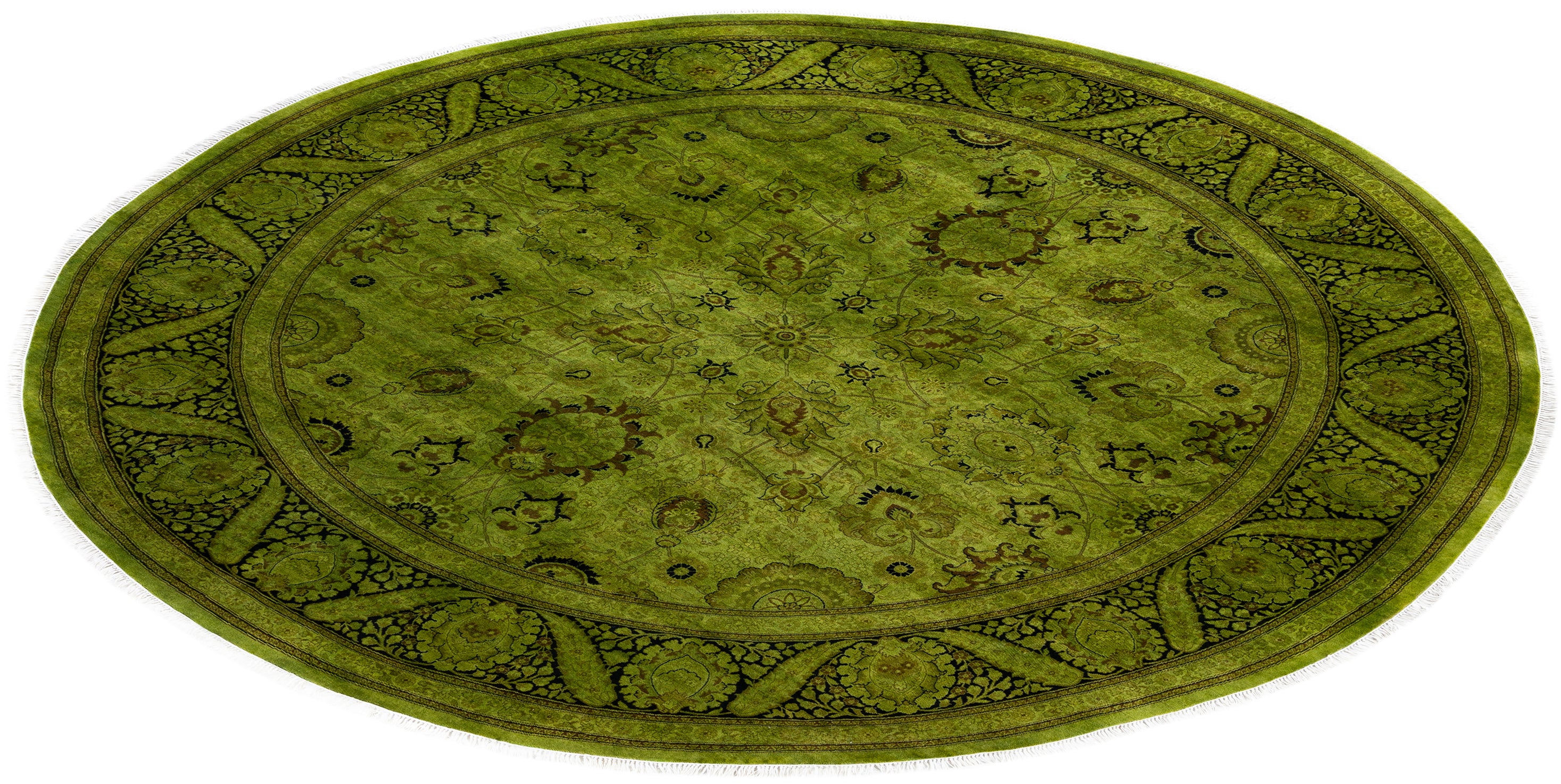 Contemporary Overdyed Wool Hand Knotted Green Round Area Rug 9' 1" x 9' 1"