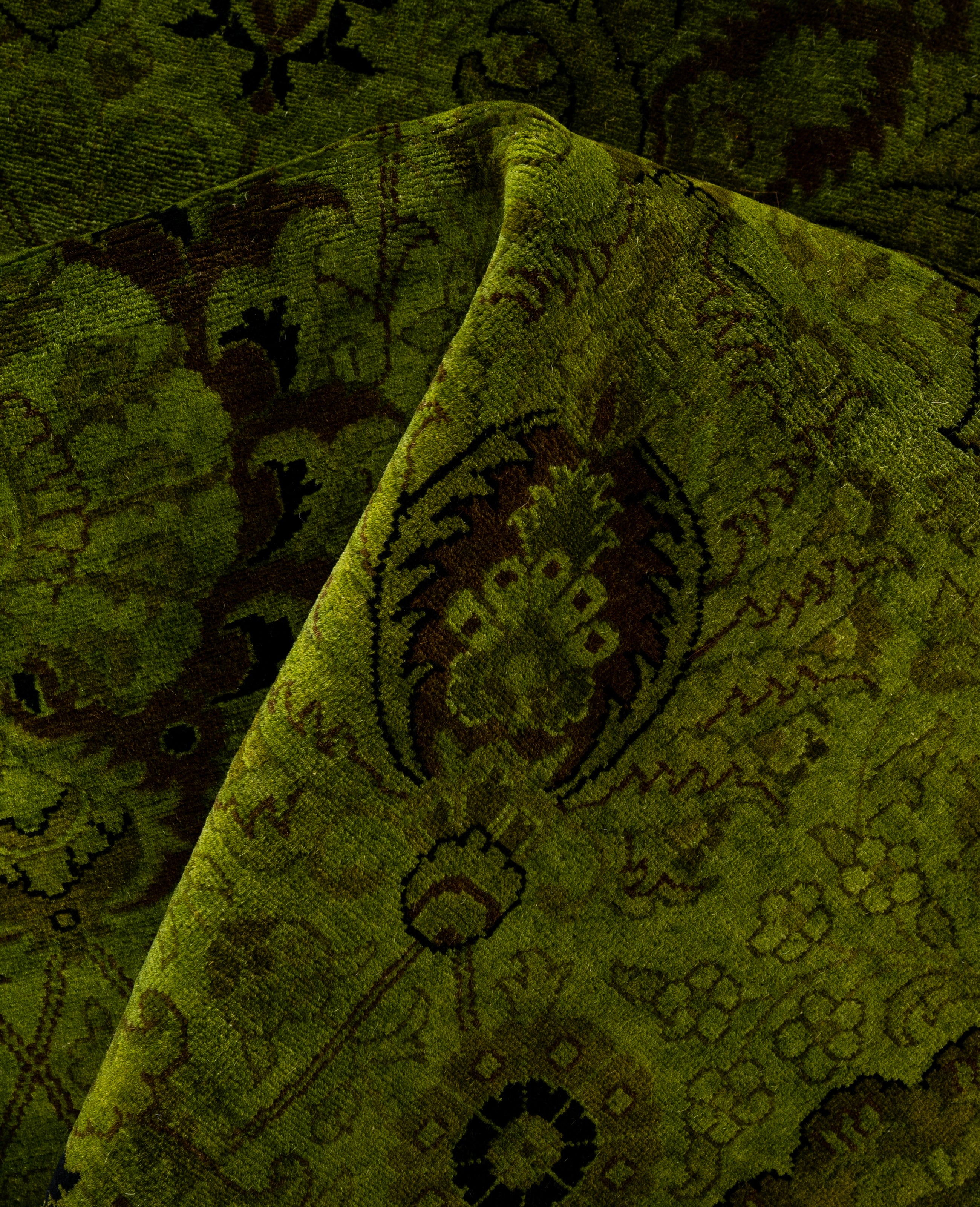 Over-dyed area rugs are created by taking vintage or traditional rugs and applying a vibrant, monochromatic dye over the existing patterns. This technique results in a bold, modern aesthetic while preserving the intricate designs beneath, blending the old with the new. The rugs are often faded and distressed before dyeing, which adds texture and depth to their appearance. The over-dye process breathes new life into worn or antique rugs, giving them a contemporary twist with rich, saturated colors like deep blues, purples, or bright reds. These rugs work well in both eclectic and modern spaces, offering a unique, artistic flair to any room. They provide a dynamic focal point, balancing between traditional craftsmanship and contemporary design trends. Over-dyed rugs are perfect for those looking to add a pop of color and character to their home decor.