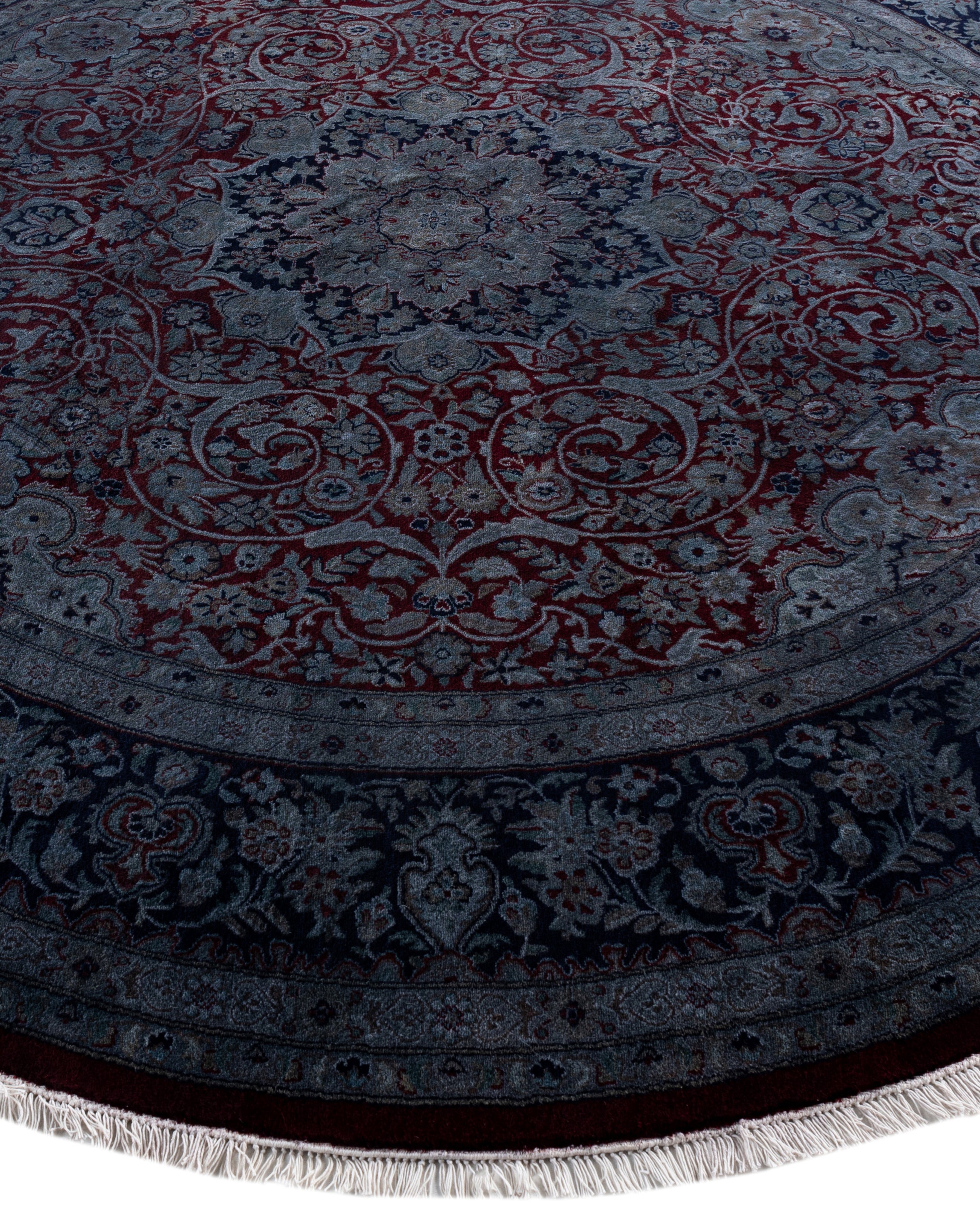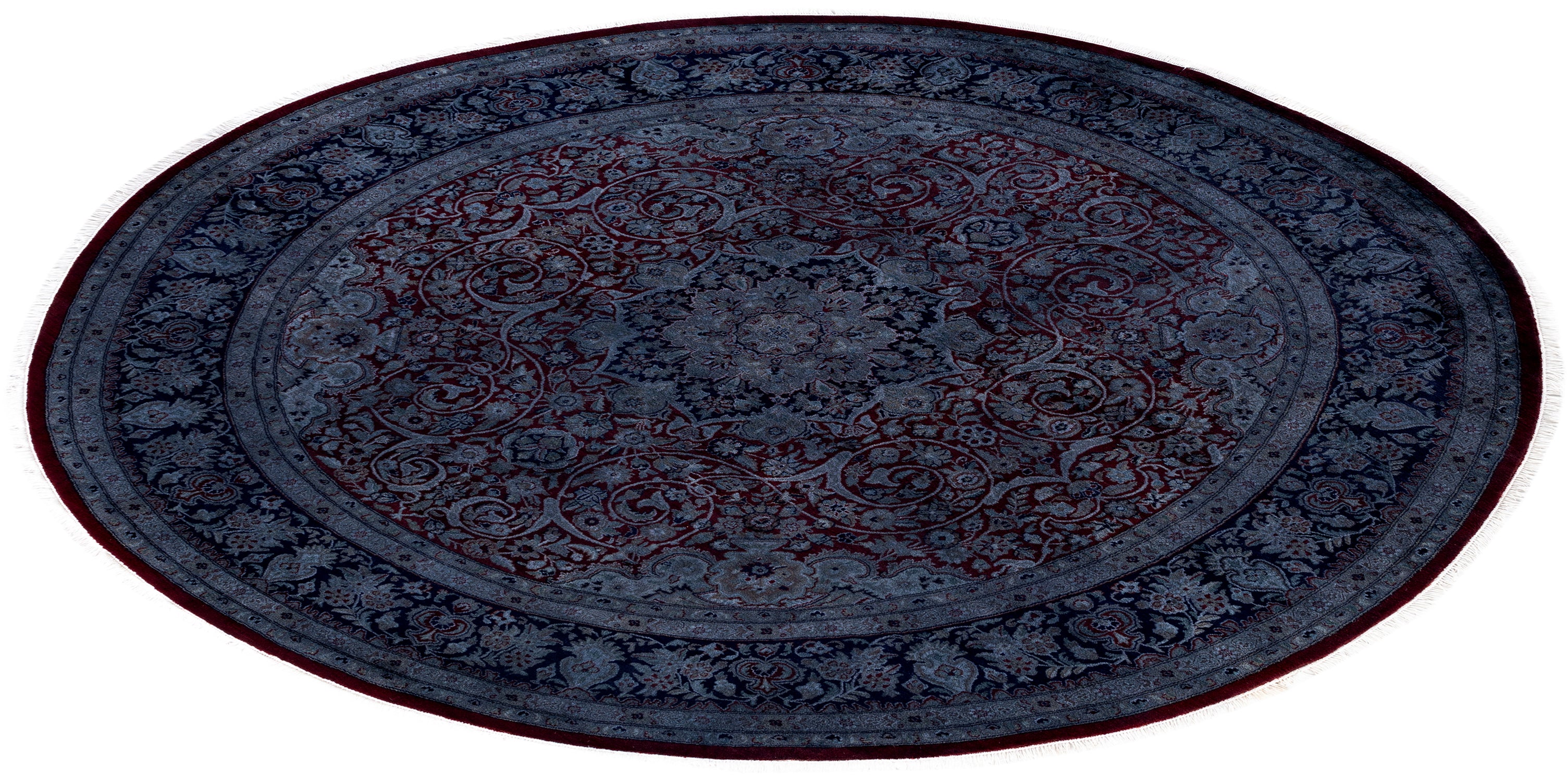Contemporary Overdyed Wool Hand Knotted Red Round Area Rug 8' 1" x 8' 1"