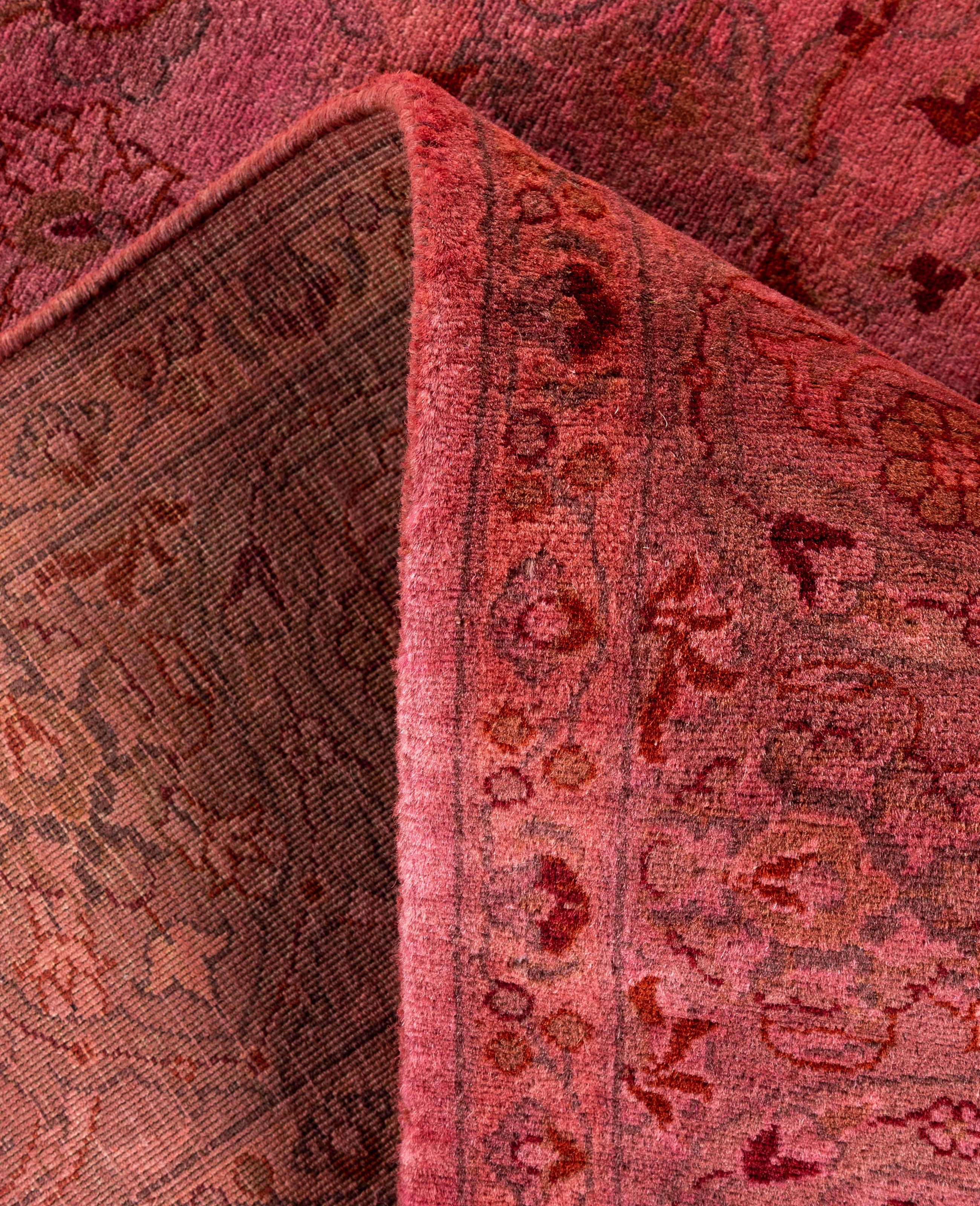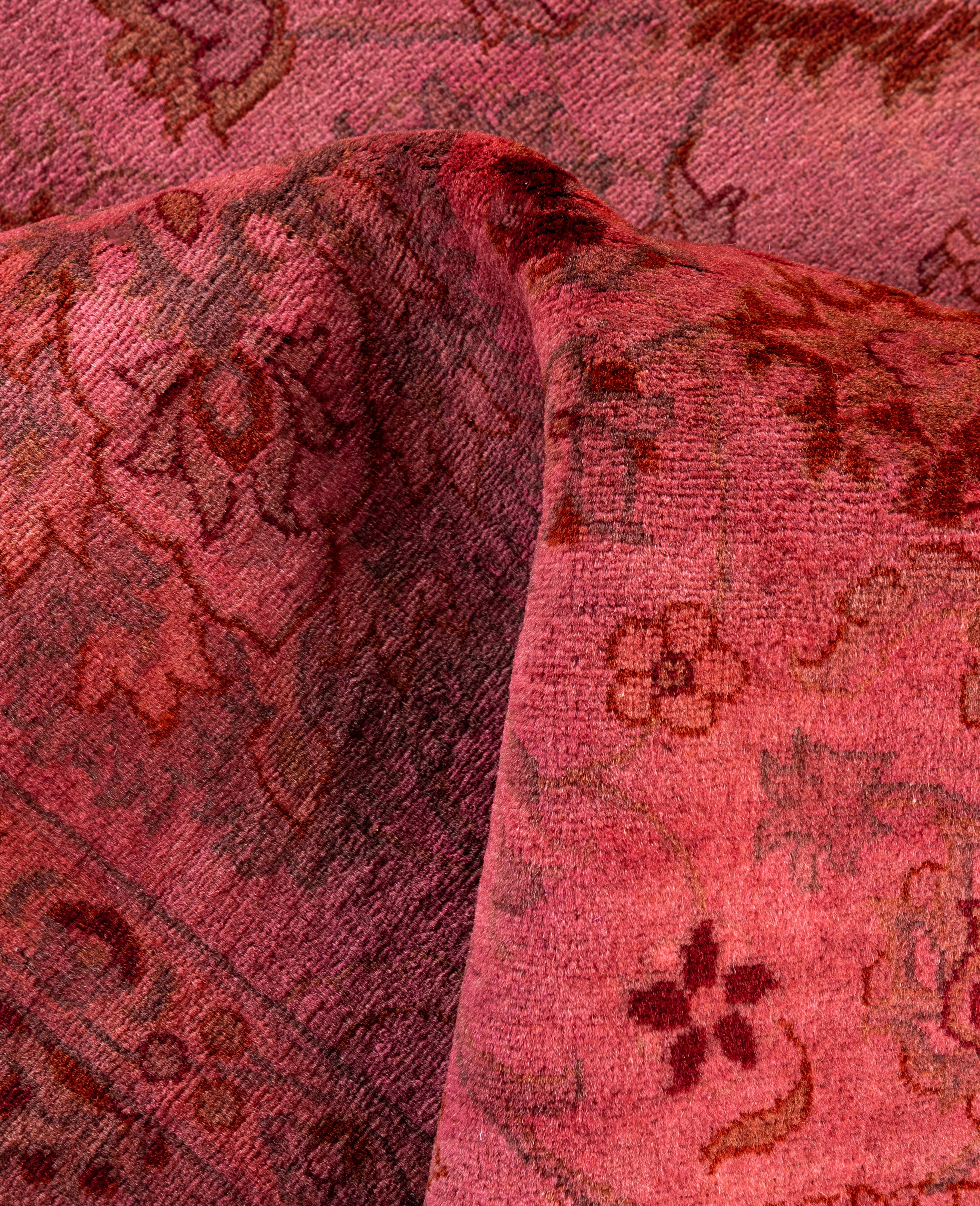 Over-dyed area rugs are created by taking vintage or traditional rugs and applying a vibrant, monochromatic dye over the existing patterns. This technique results in a bold, modern aesthetic while preserving the intricate designs beneath, blending the old with the new. The rugs are often faded and distressed before dyeing, which adds texture and depth to their appearance. The over-dye process breathes new life into worn or antique rugs, giving them a contemporary twist with rich, saturated colors like deep blues, purples, or bright reds. These rugs work well in both eclectic and modern spaces, offering a unique, artistic flair to any room. They provide a dynamic focal point, balancing between traditional craftsmanship and contemporary design trends. Over-dyed rugs are perfect for those looking to add a pop of color and character to their home decor.