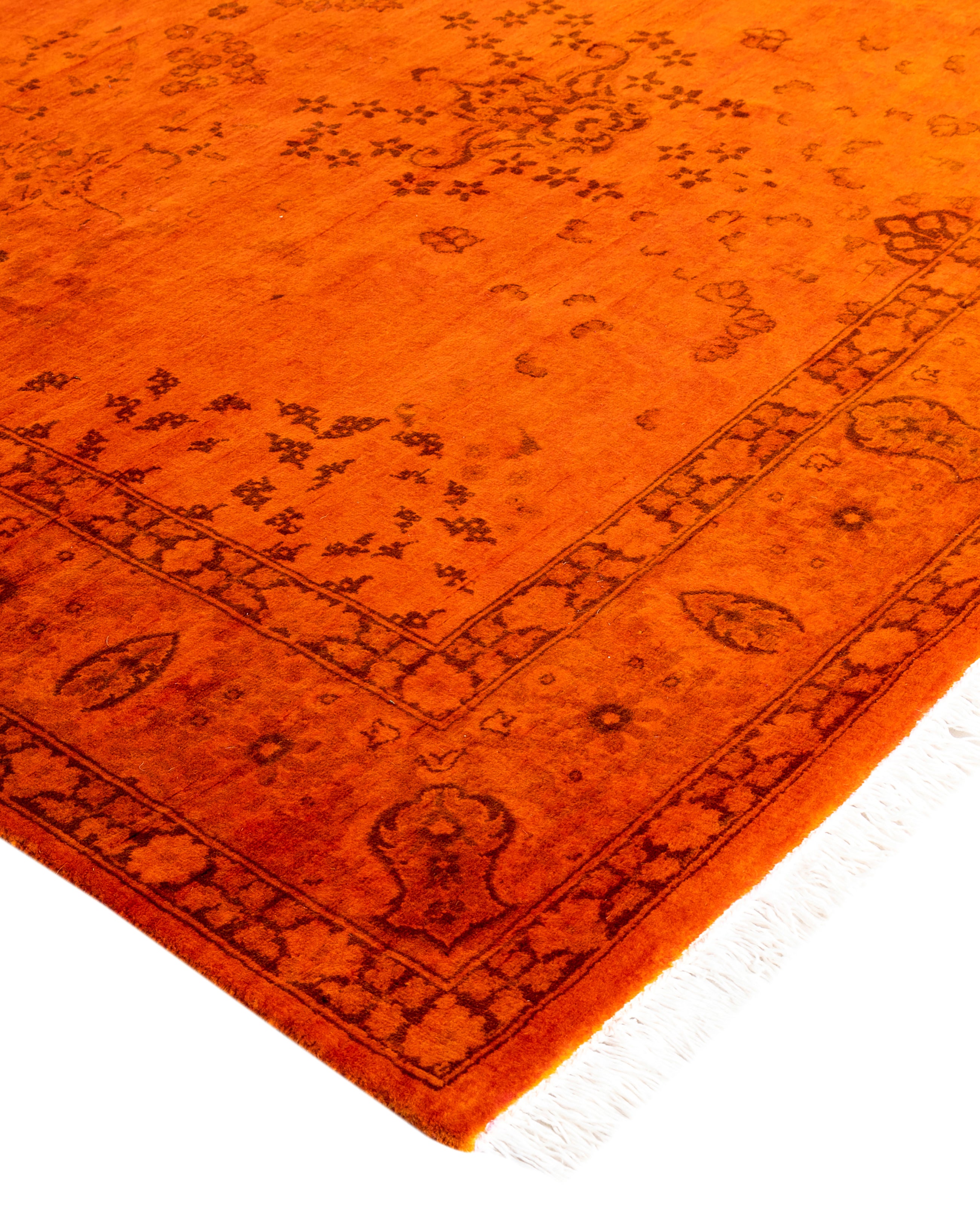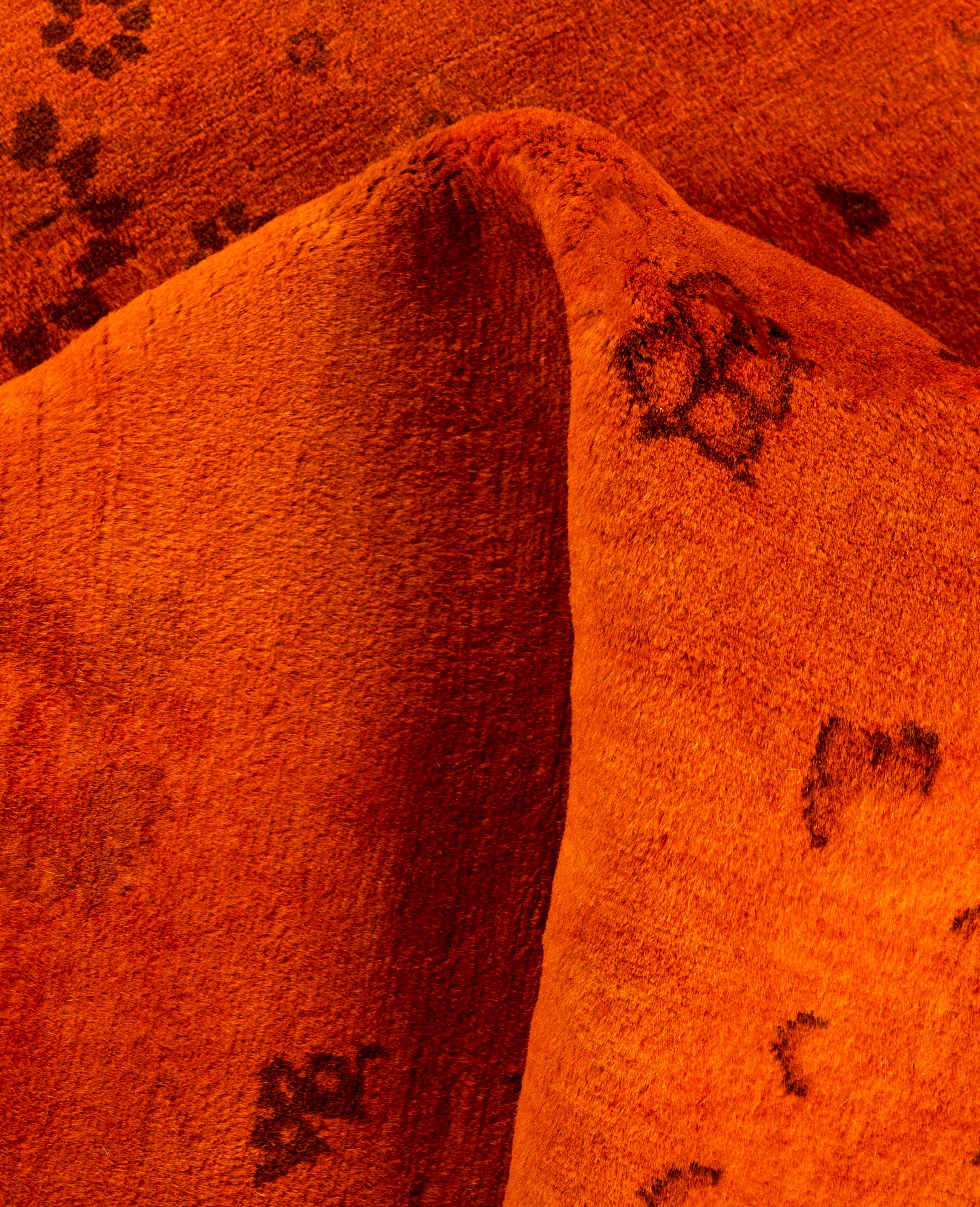 Contemporary Overdyed Wool Hand Knotted Orange Area Rug 4' 7" x 7' 2"