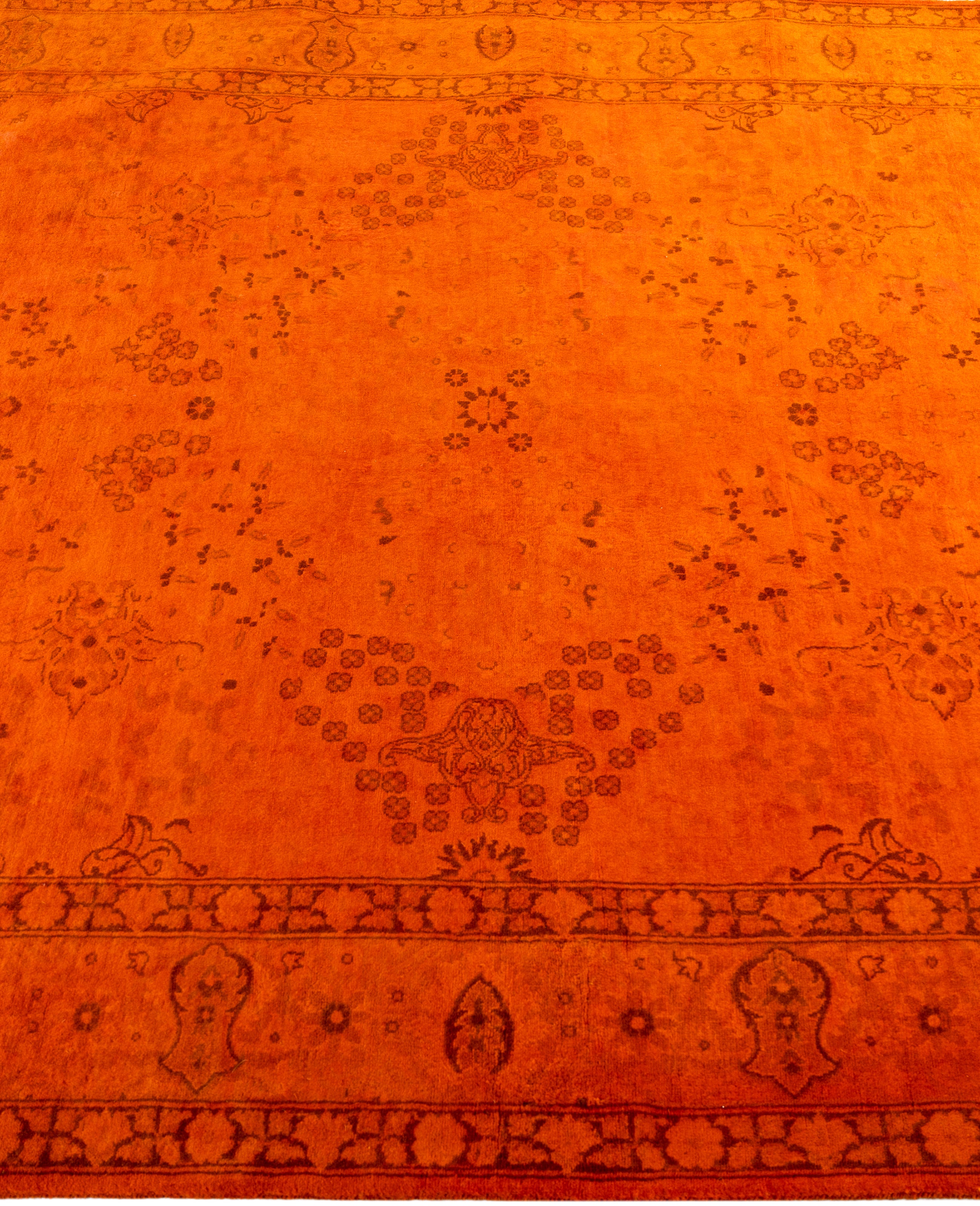 Over-dyed area rugs are created by taking vintage or traditional rugs and applying a vibrant, monochromatic dye over the existing patterns. This technique results in a bold, modern aesthetic while preserving the intricate designs beneath, blending the old with the new. The rugs are often faded and distressed before dyeing, which adds texture and depth to their appearance. The over-dye process breathes new life into worn or antique rugs, giving them a contemporary twist with rich, saturated colors like deep blues, purples, or bright reds. These rugs work well in both eclectic and modern spaces, offering a unique, artistic flair to any room. They provide a dynamic focal point, balancing between traditional craftsmanship and contemporary design trends. Over-dyed rugs are perfect for those looking to add a pop of color and character to their home decor.