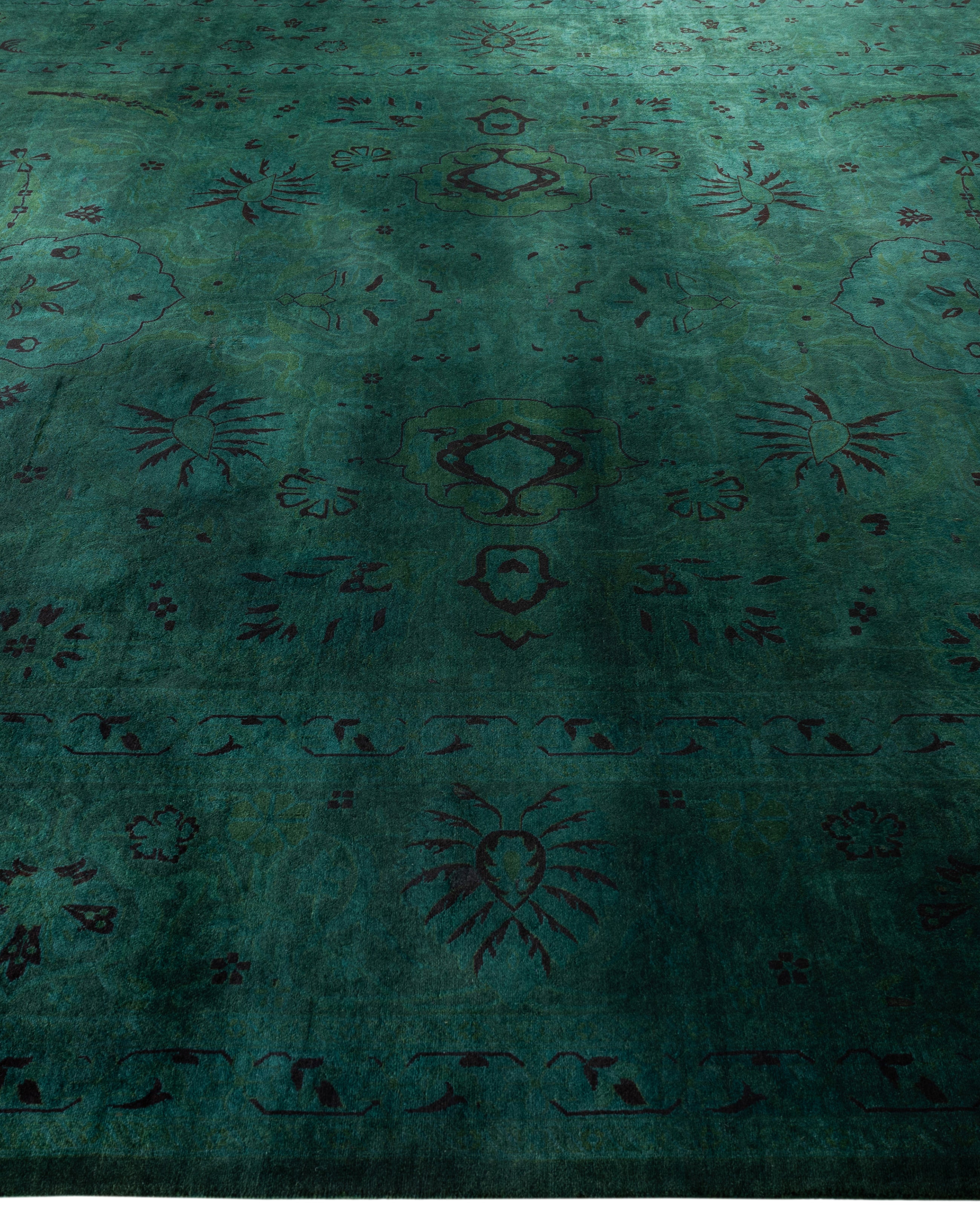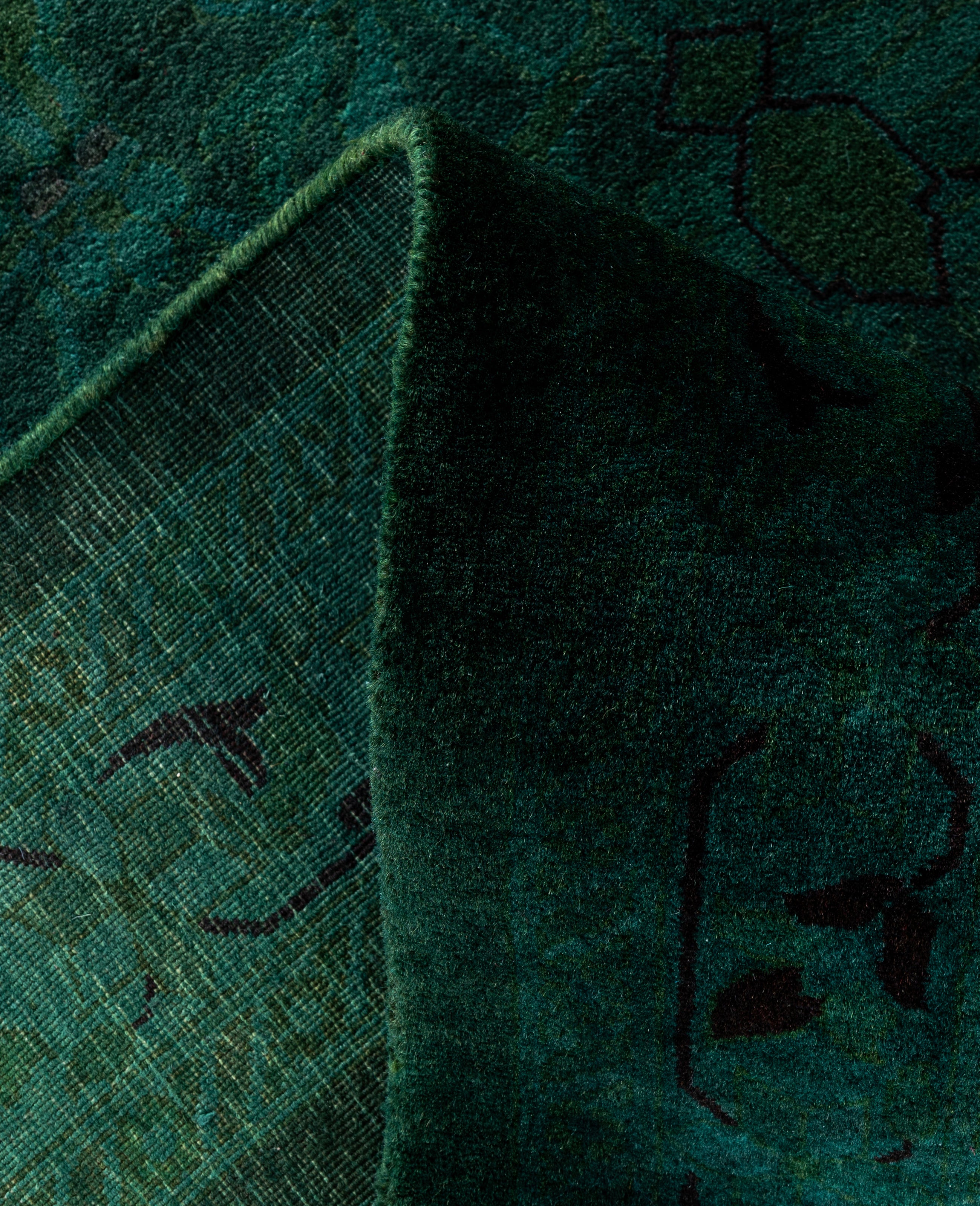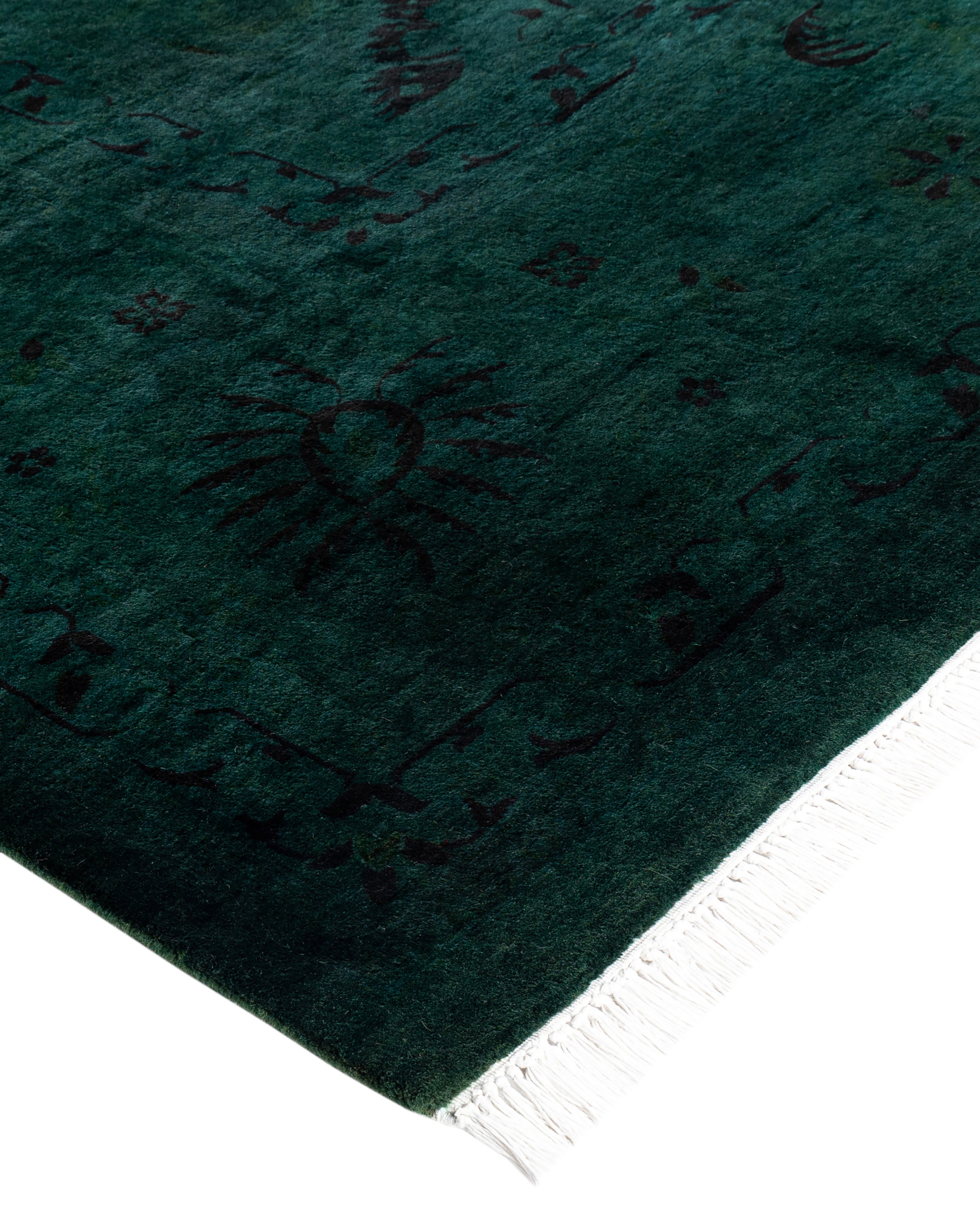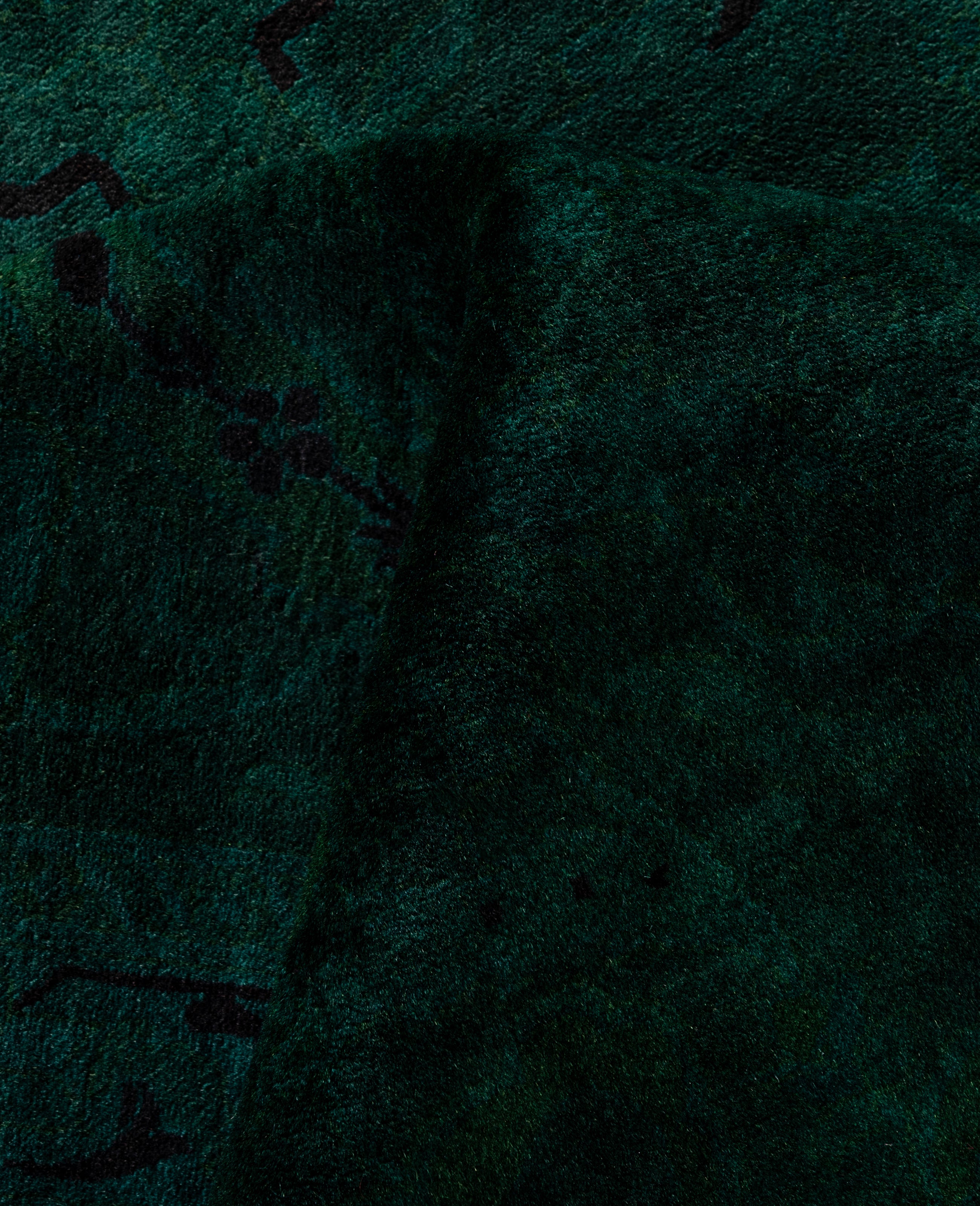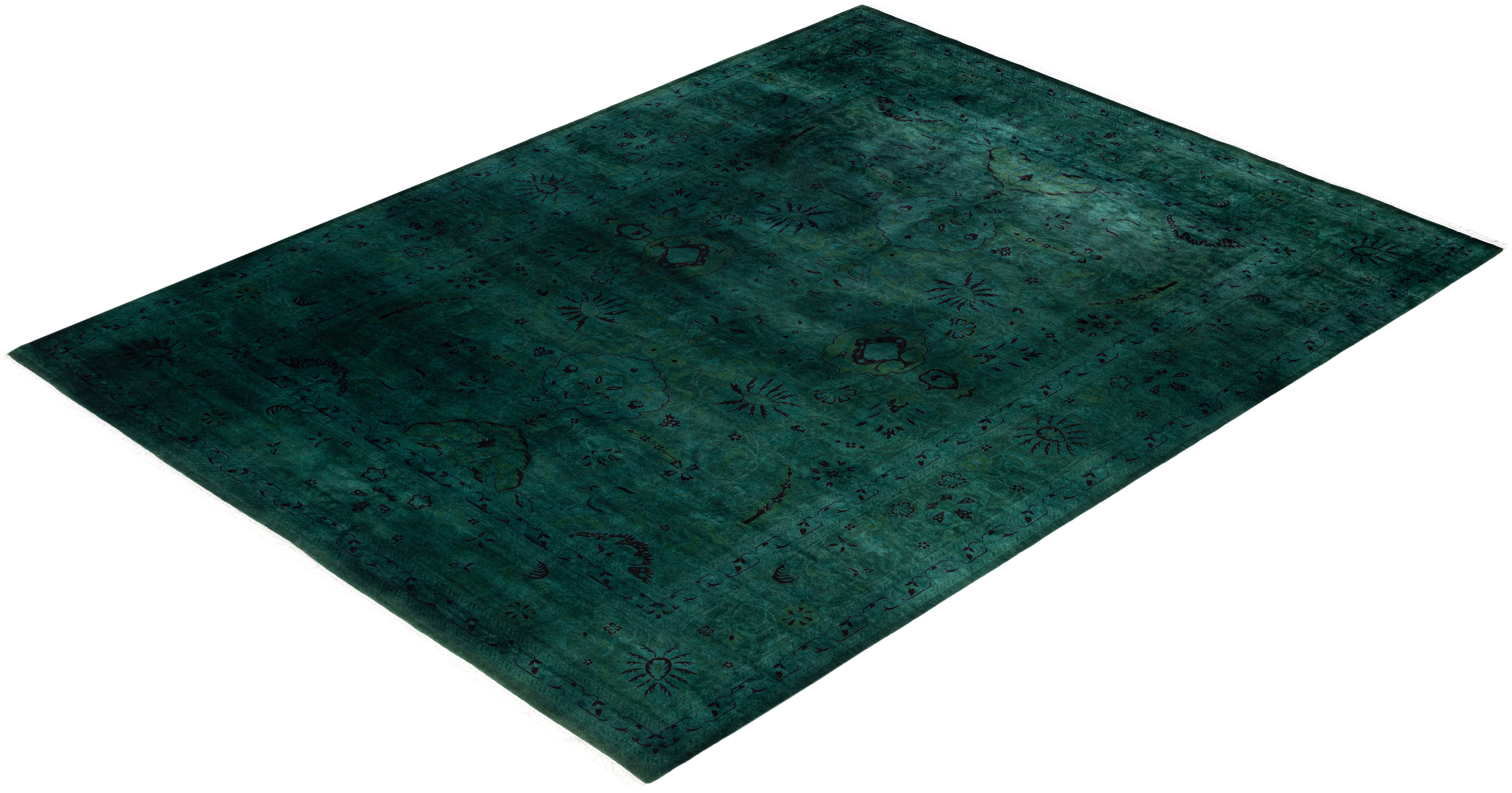 Contemporary Overdyed Wool Hand Knotted Green Area Rug 9' 2" x 12' 1"