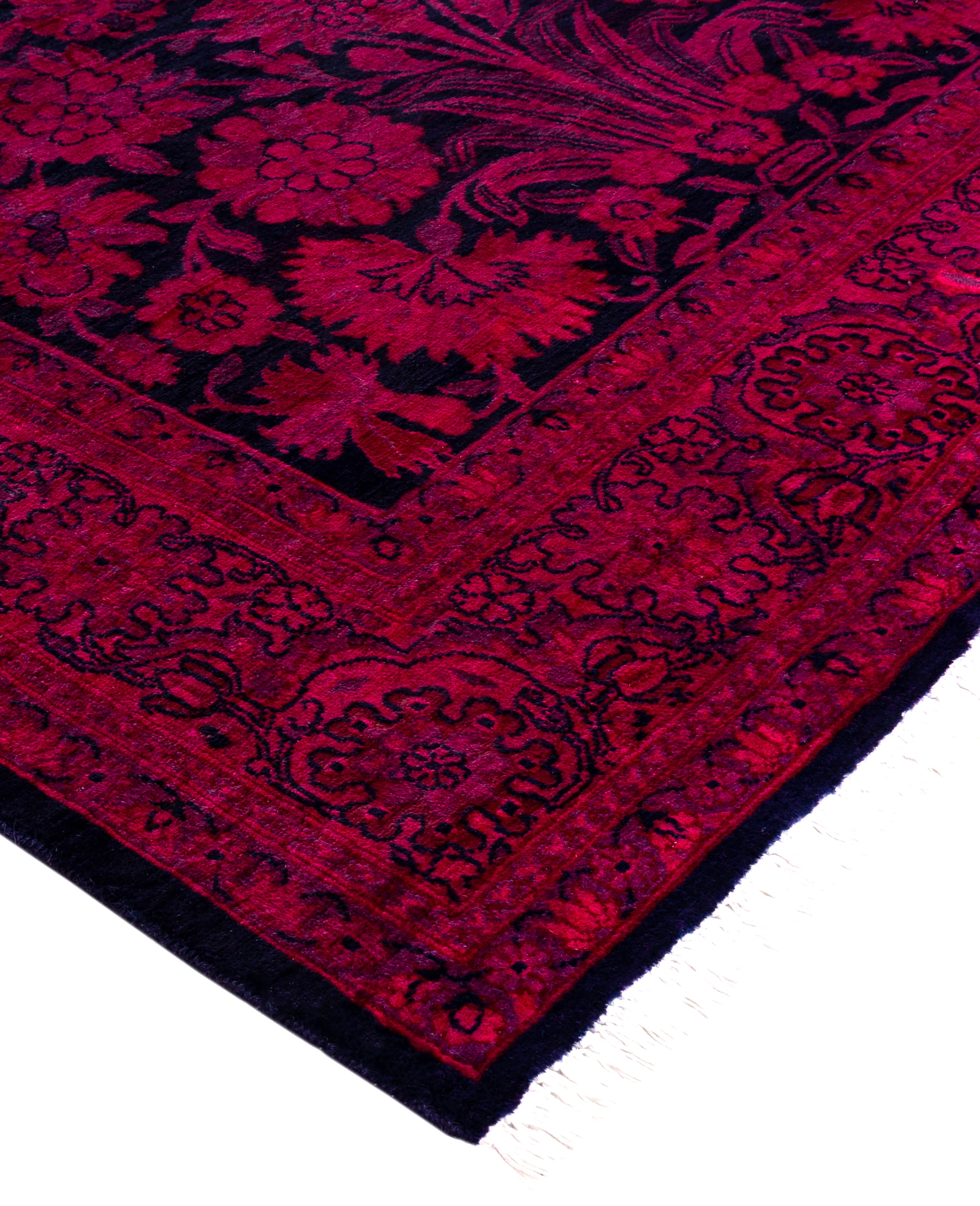 Over-dyed area rugs are created by taking vintage or traditional rugs and applying a vibrant, monochromatic dye over the existing patterns. This technique results in a bold, modern aesthetic while preserving the intricate designs beneath, blending the old with the new. The rugs are often faded and distressed before dyeing, which adds texture and depth to their appearance. The over-dye process breathes new life into worn or antique rugs, giving them a contemporary twist with rich, saturated colors like deep blues, purples, or bright reds. These rugs work well in both eclectic and modern spaces, offering a unique, artistic flair to any room. They provide a dynamic focal point, balancing between traditional craftsmanship and contemporary design trends. Over-dyed rugs are perfect for those looking to add a pop of color and character to their home decor.