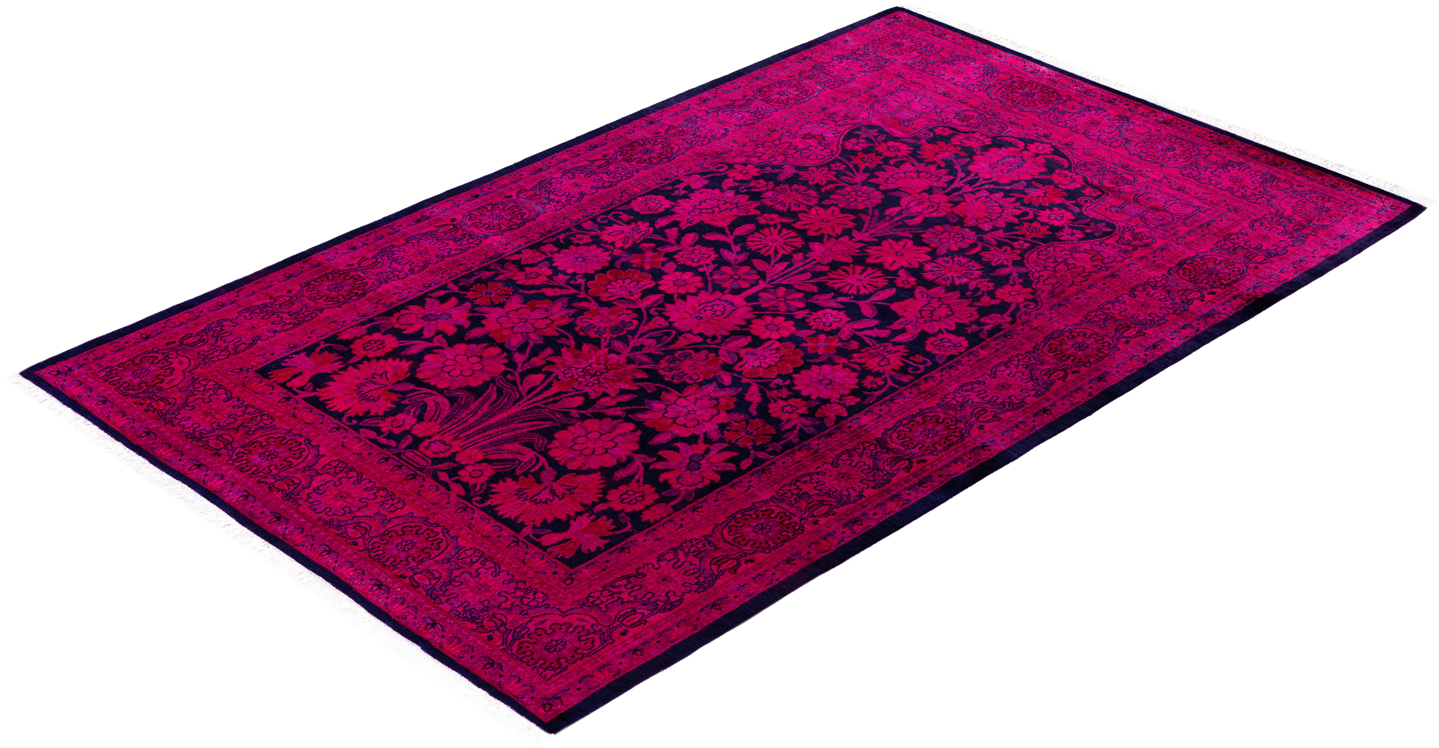 Contemporary Overdyed Wool Hand Knotted Pink Area Rug 4' 1" x 6' 4"