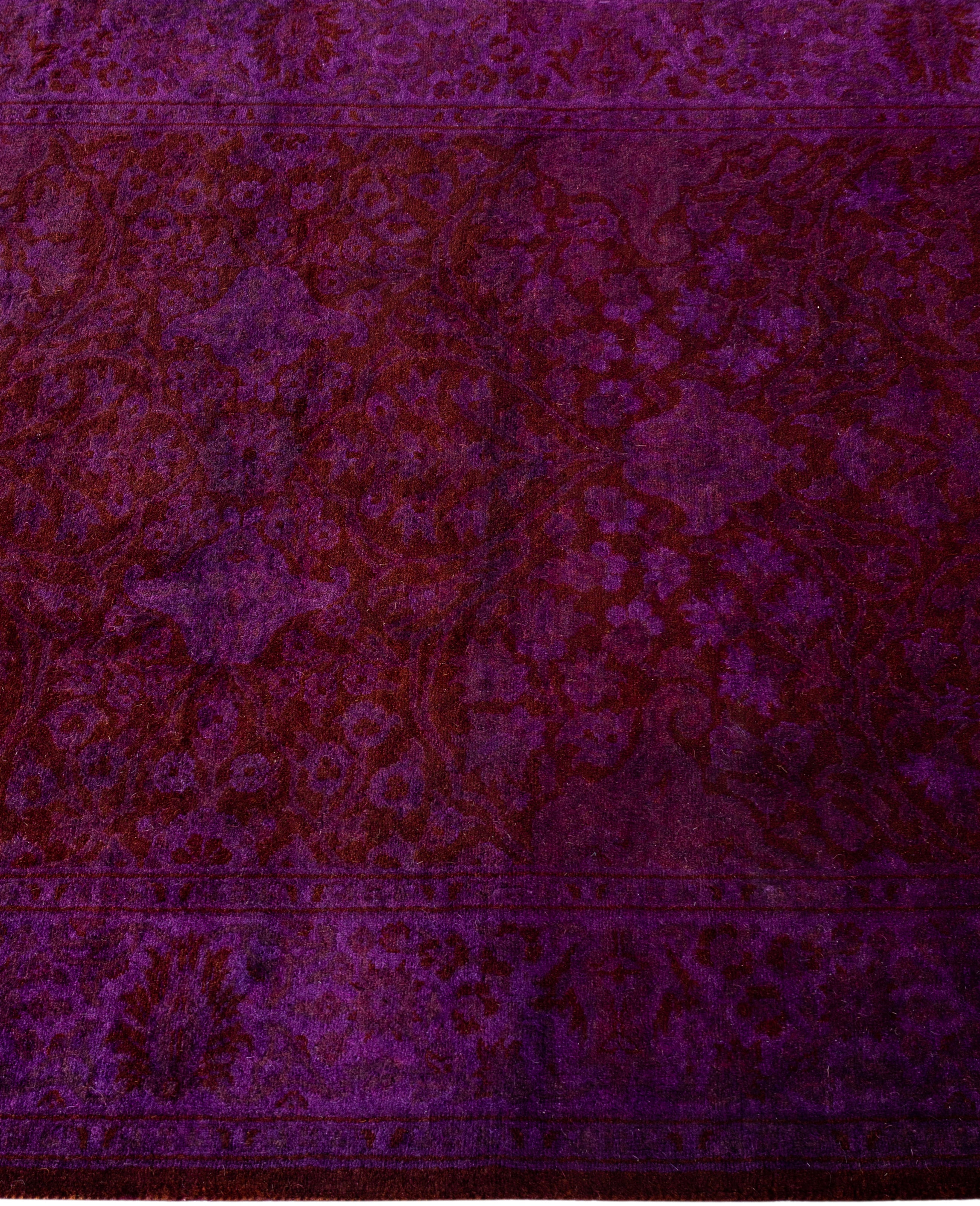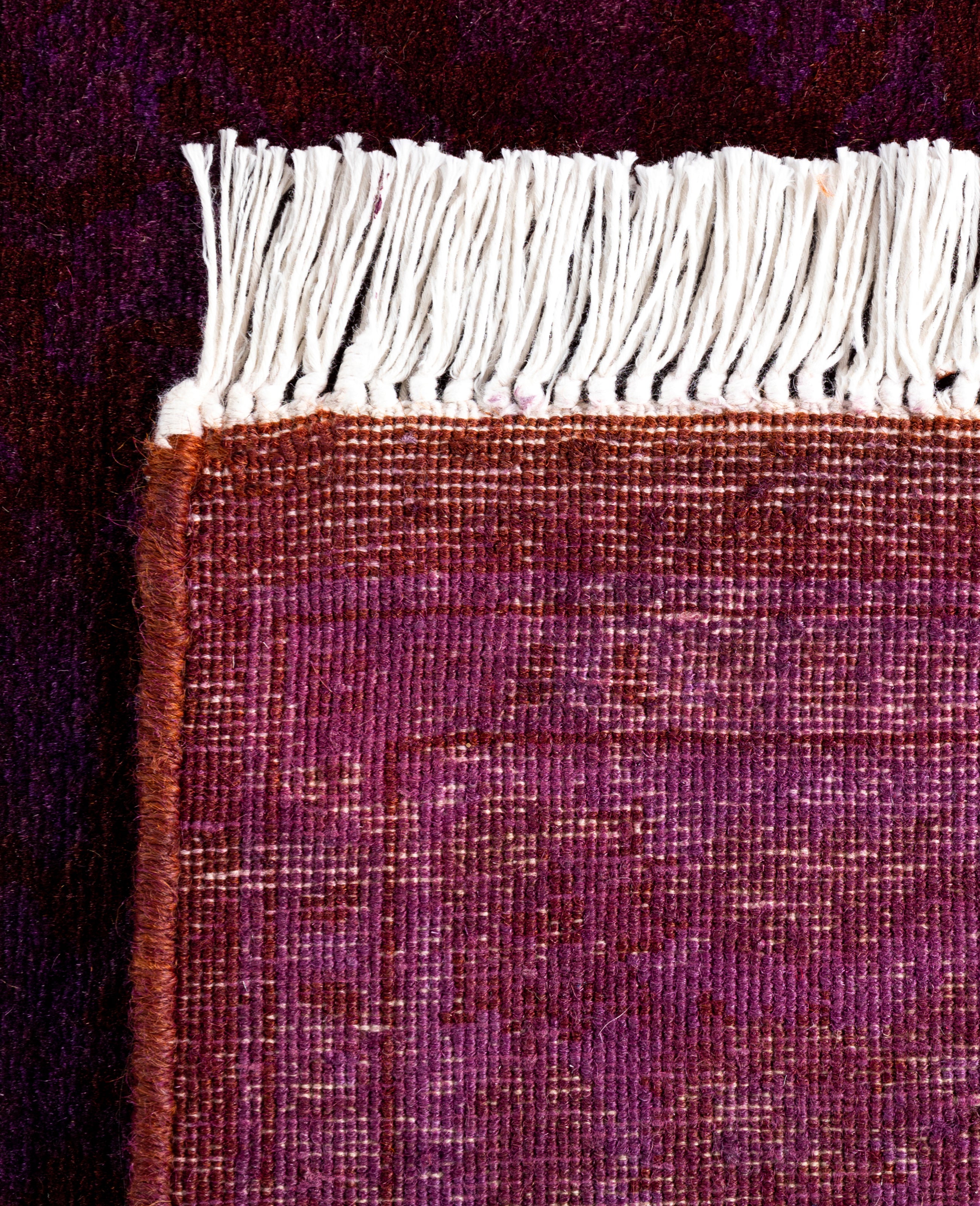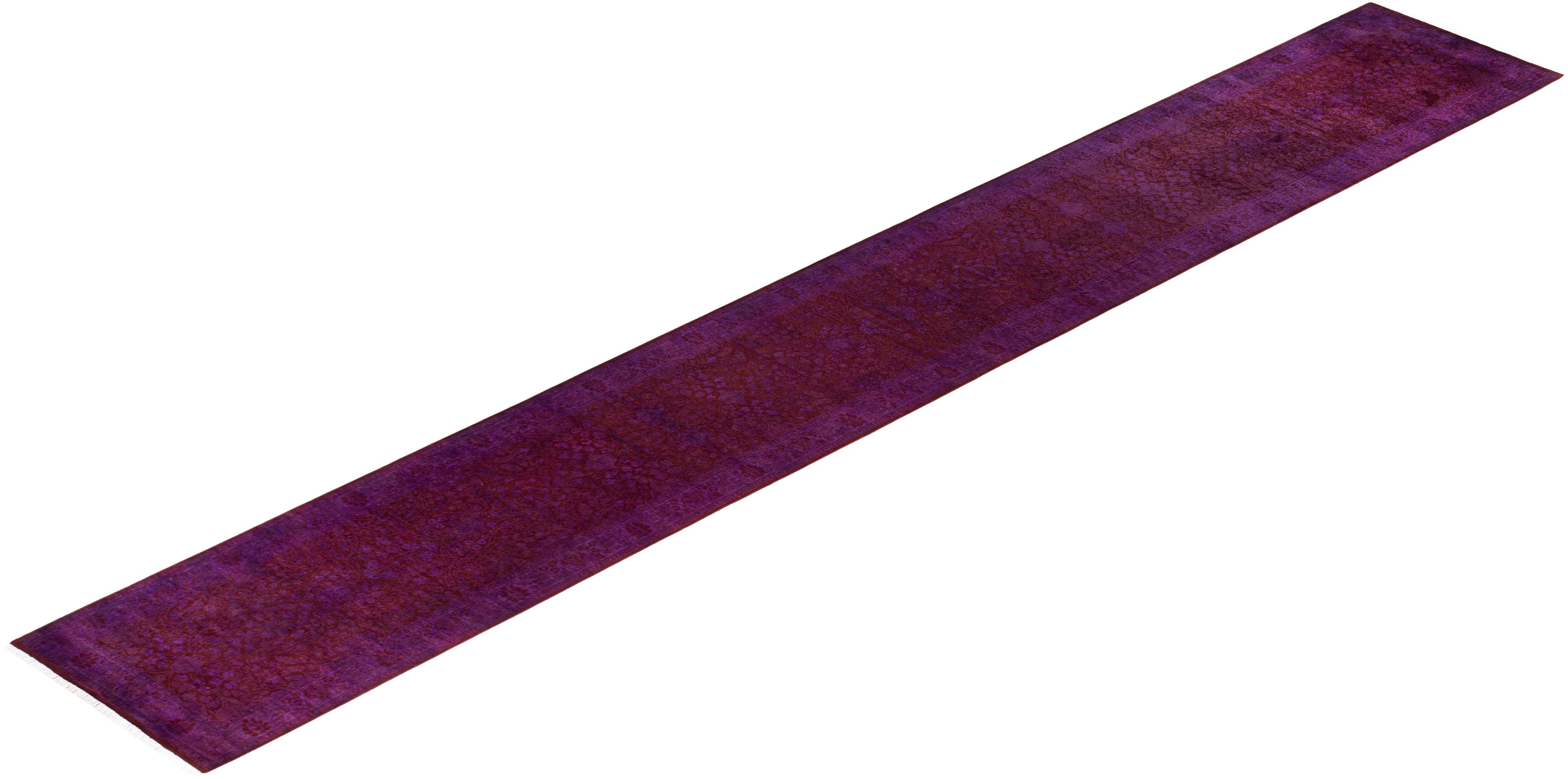 Contemporary Overdyed Wool Hand Knotted Purple Runner 2' 8" x 18' 5"
