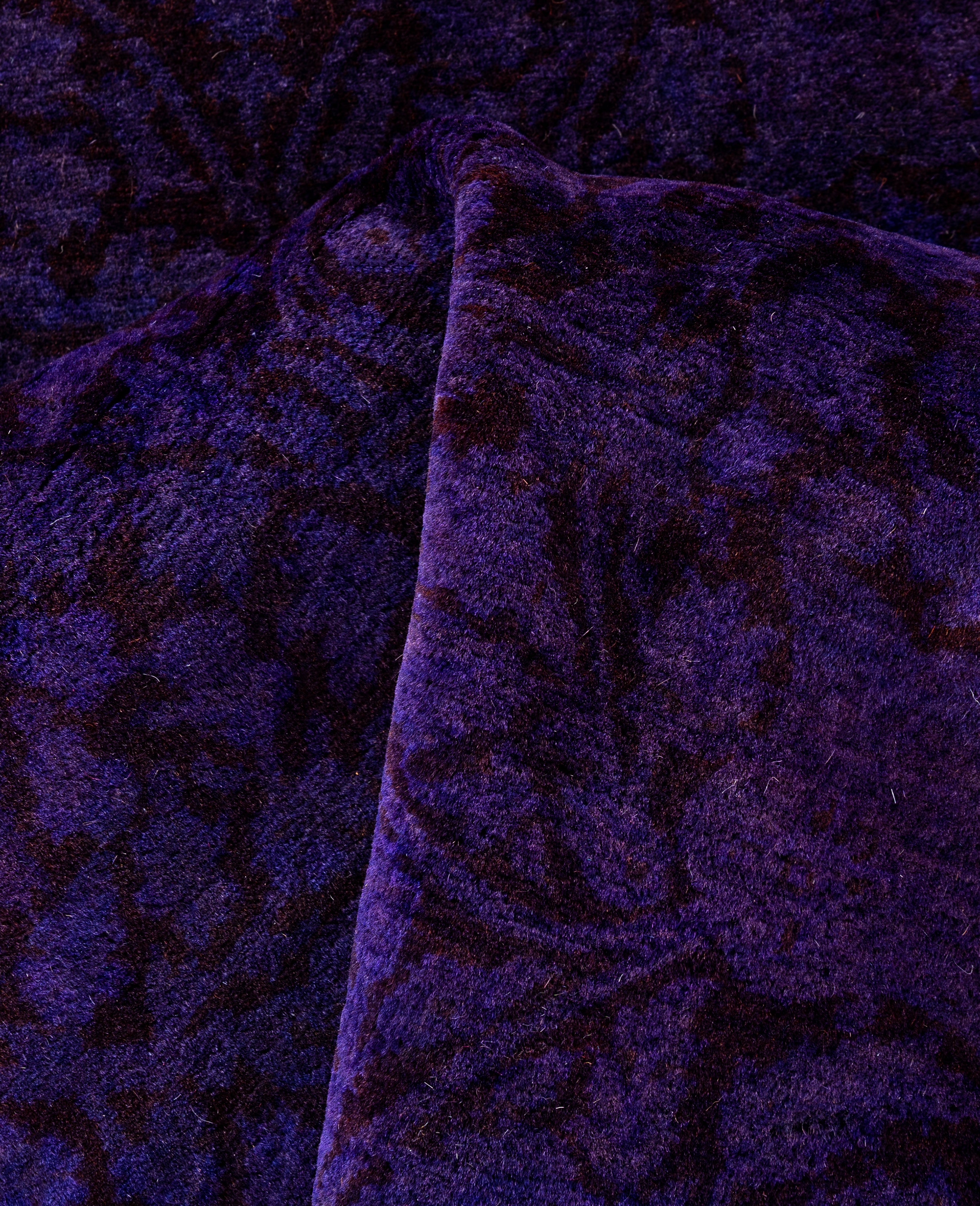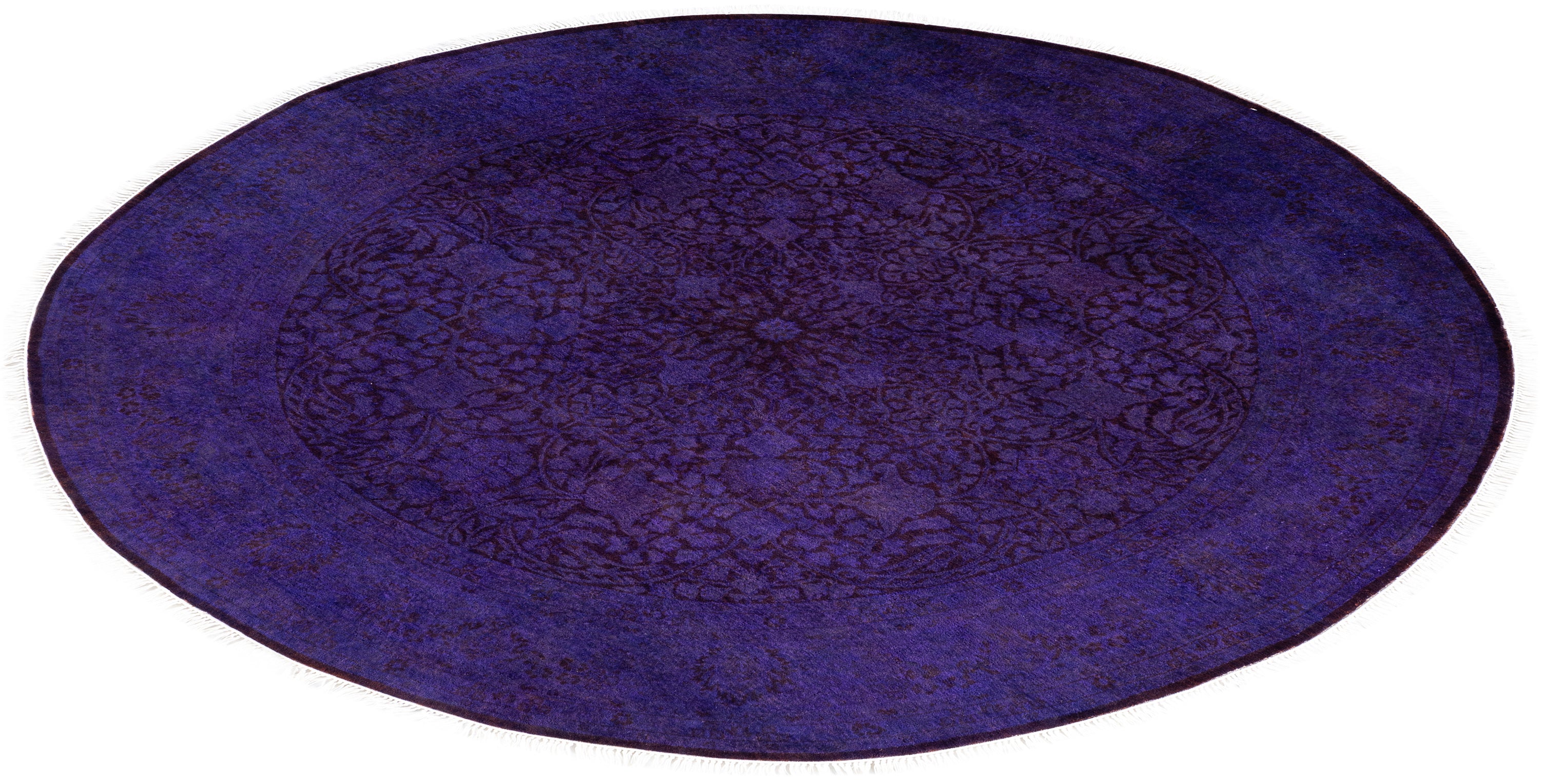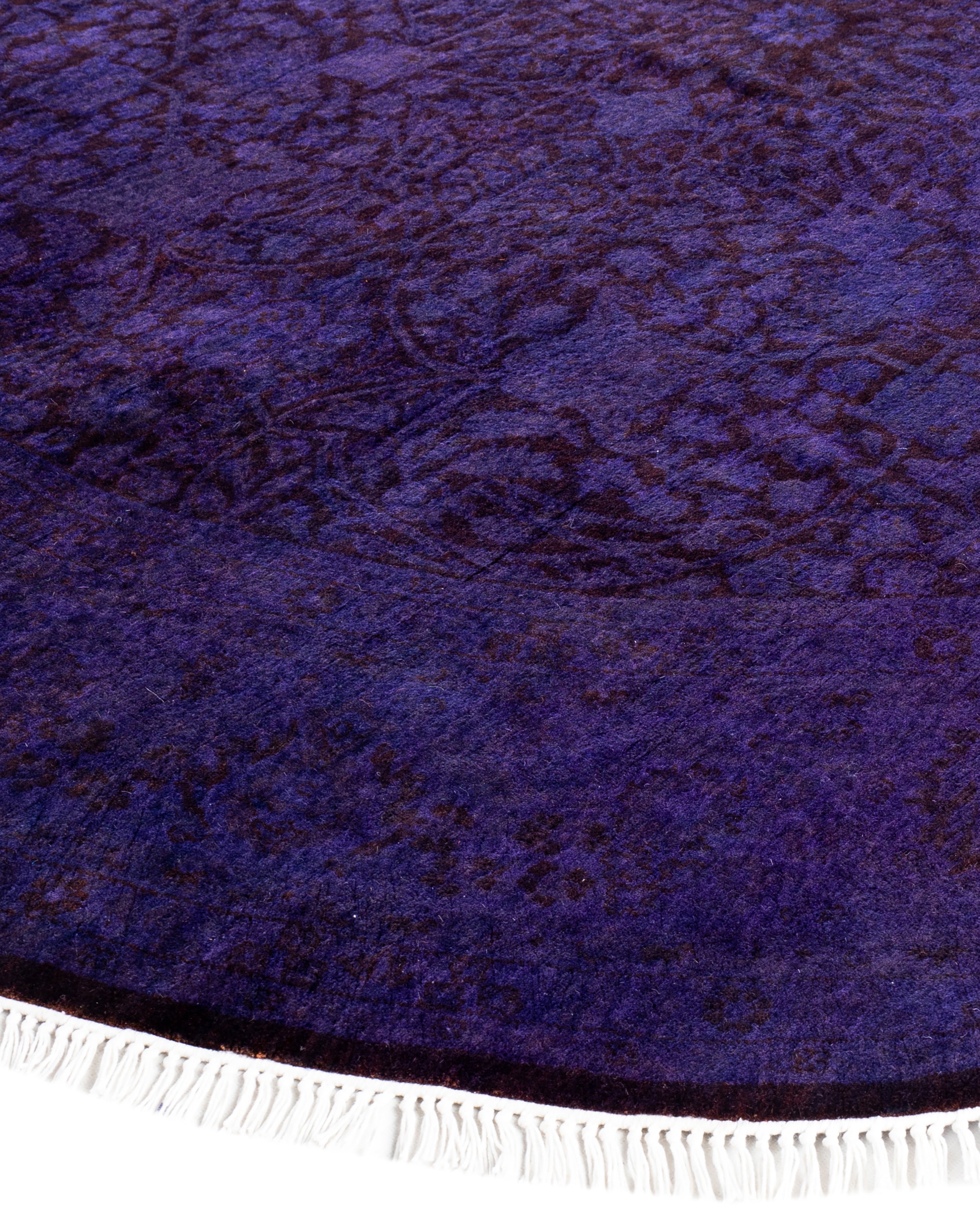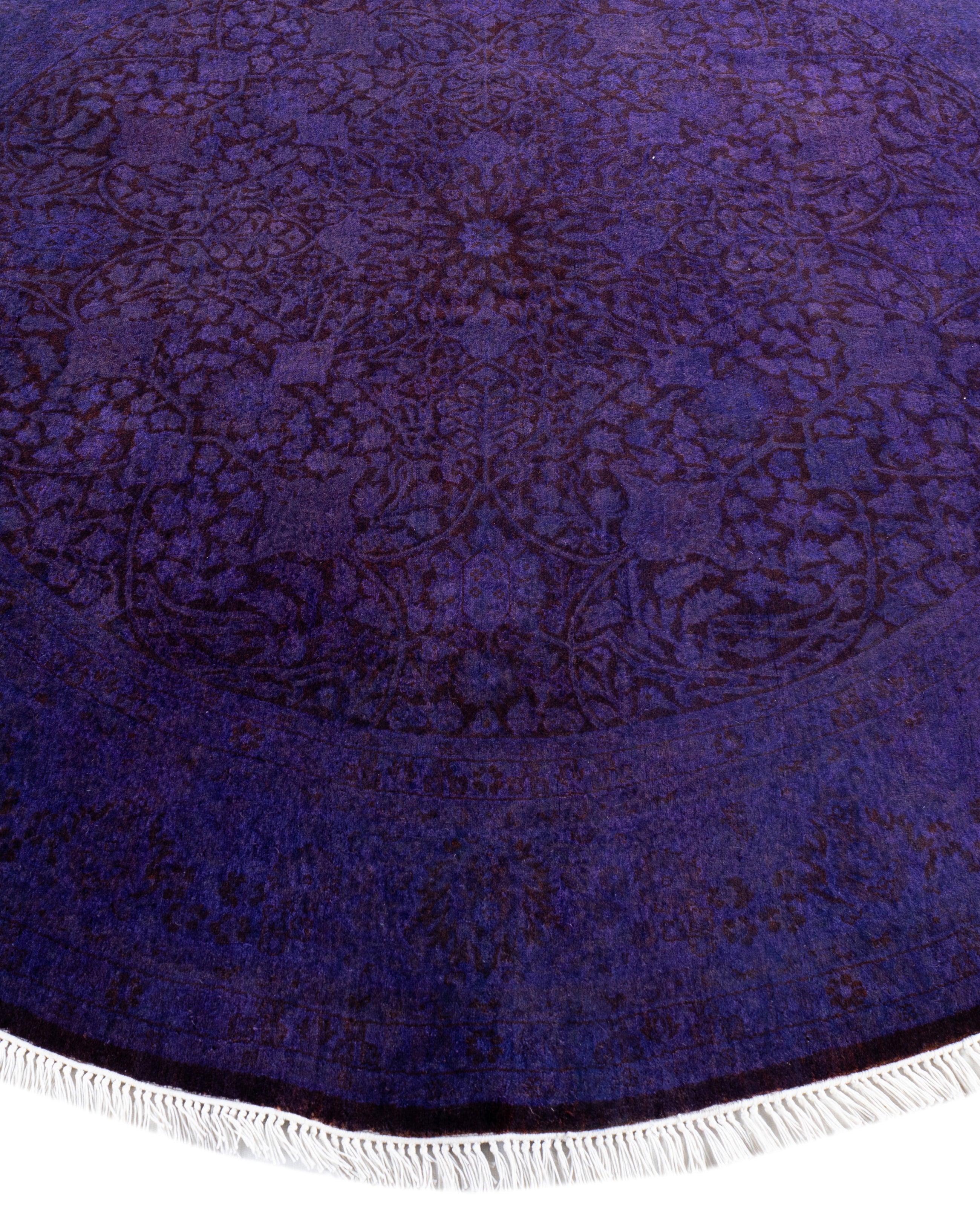 Contemporary Overdyed Wool Hand Knotted Purple Round Area Rug 6' 1" x 6' 1"