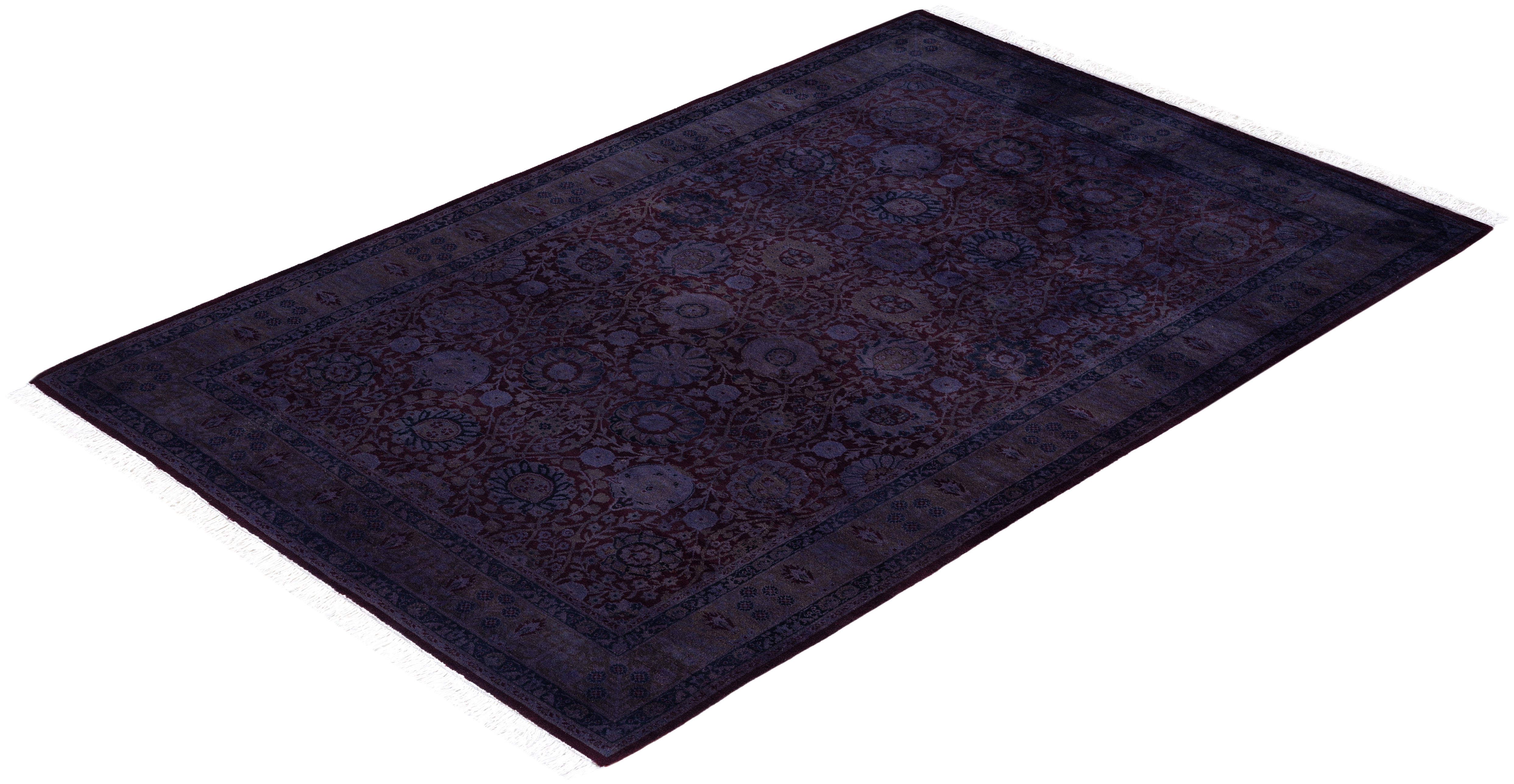Contemporary Overdyed Wool Hand Knotted Red Area Rug 4' 1" x 6' 3"