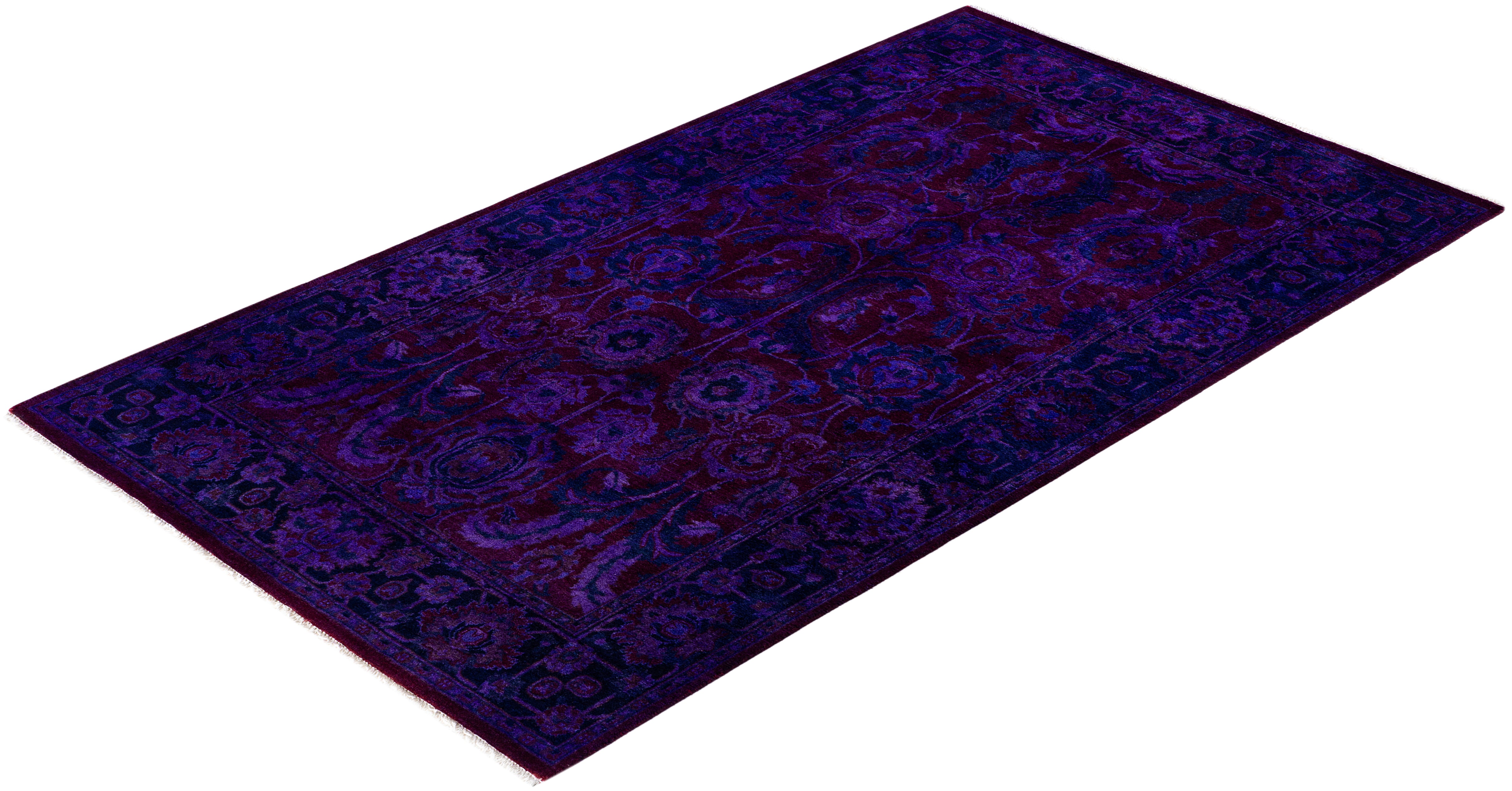 Contemporary Overdyed Wool Hand Knotted Purple Area Rug 3' 1" x 5' 2"