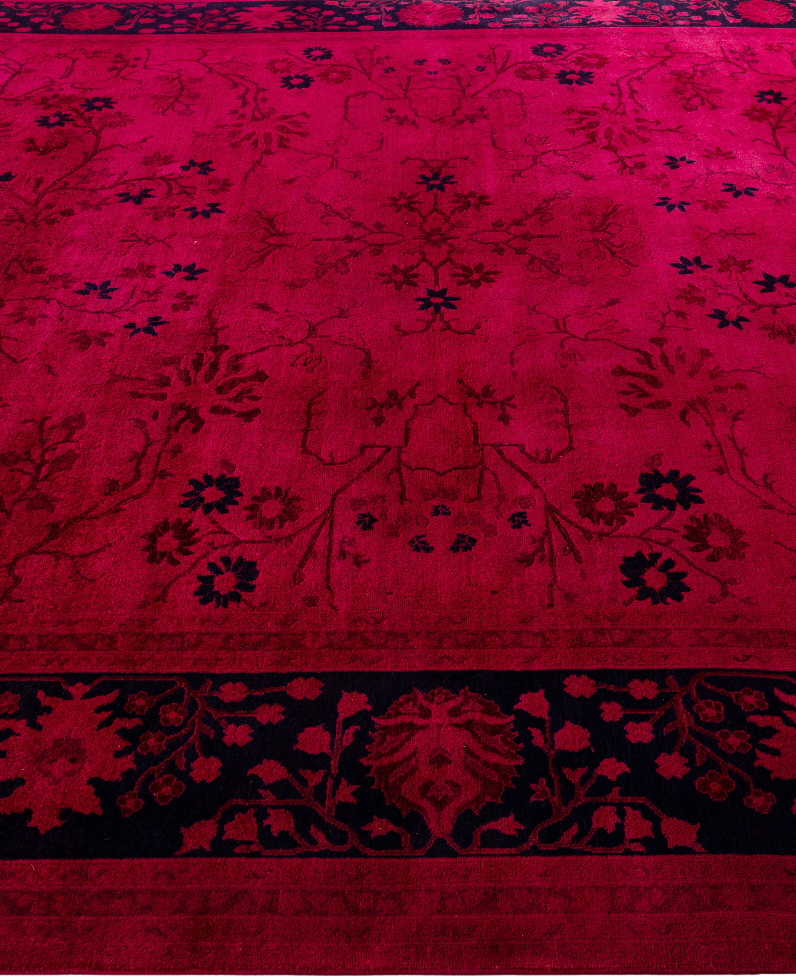Contemporary Overdyed Wool Hand Knotted Pink Area Rug 8' 2" x 9' 10"