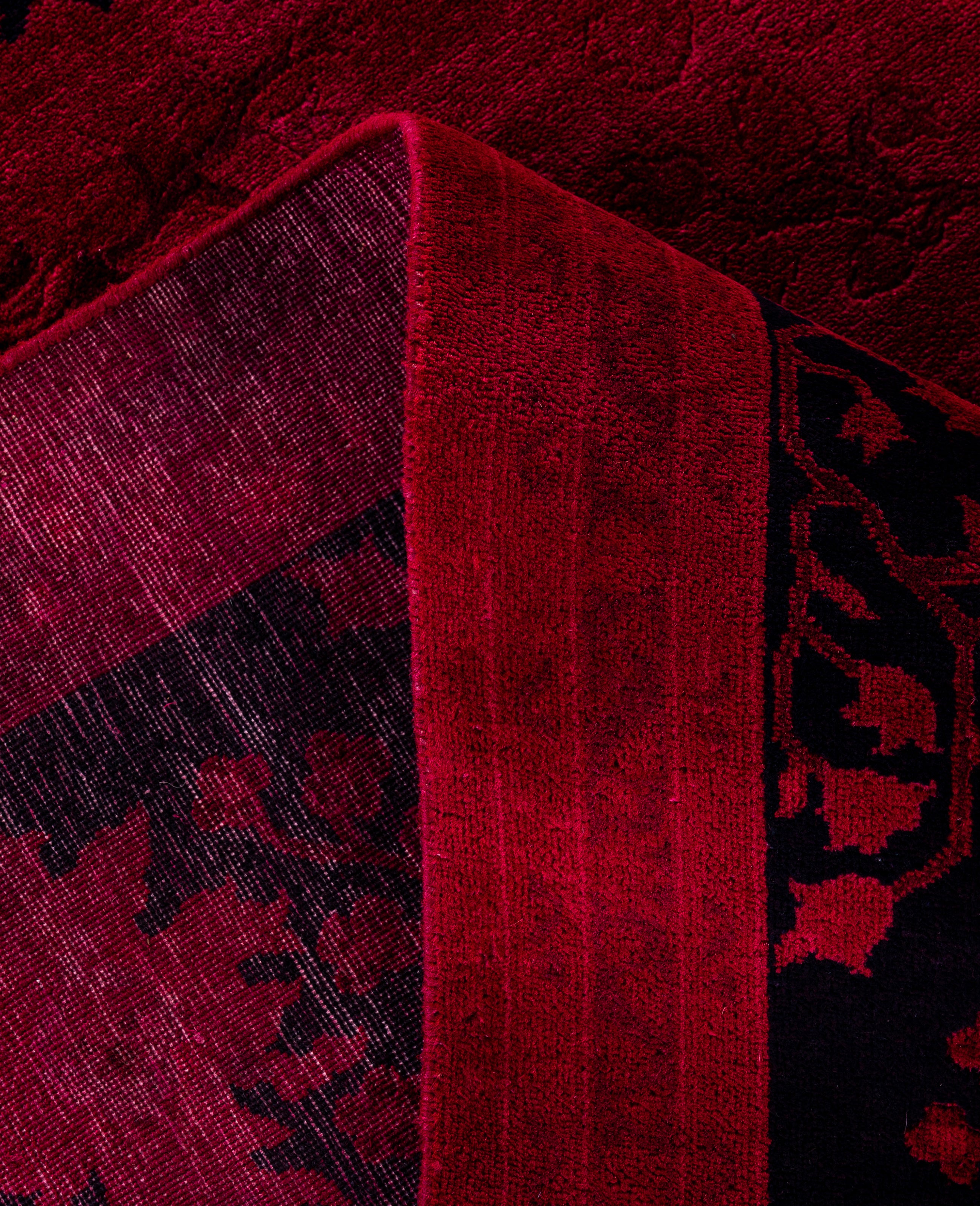 Over-dyed area rugs are created by taking vintage or traditional rugs and applying a vibrant, monochromatic dye over the existing patterns. This technique results in a bold, modern aesthetic while preserving the intricate designs beneath, blending the old with the new. The rugs are often faded and distressed before dyeing, which adds texture and depth to their appearance. The over-dye process breathes new life into worn or antique rugs, giving them a contemporary twist with rich, saturated colors like deep blues, purples, or bright reds. These rugs work well in both eclectic and modern spaces, offering a unique, artistic flair to any room. They provide a dynamic focal point, balancing between traditional craftsmanship and contemporary design trends. Over-dyed rugs are perfect for those looking to add a pop of color and character to their home decor.
