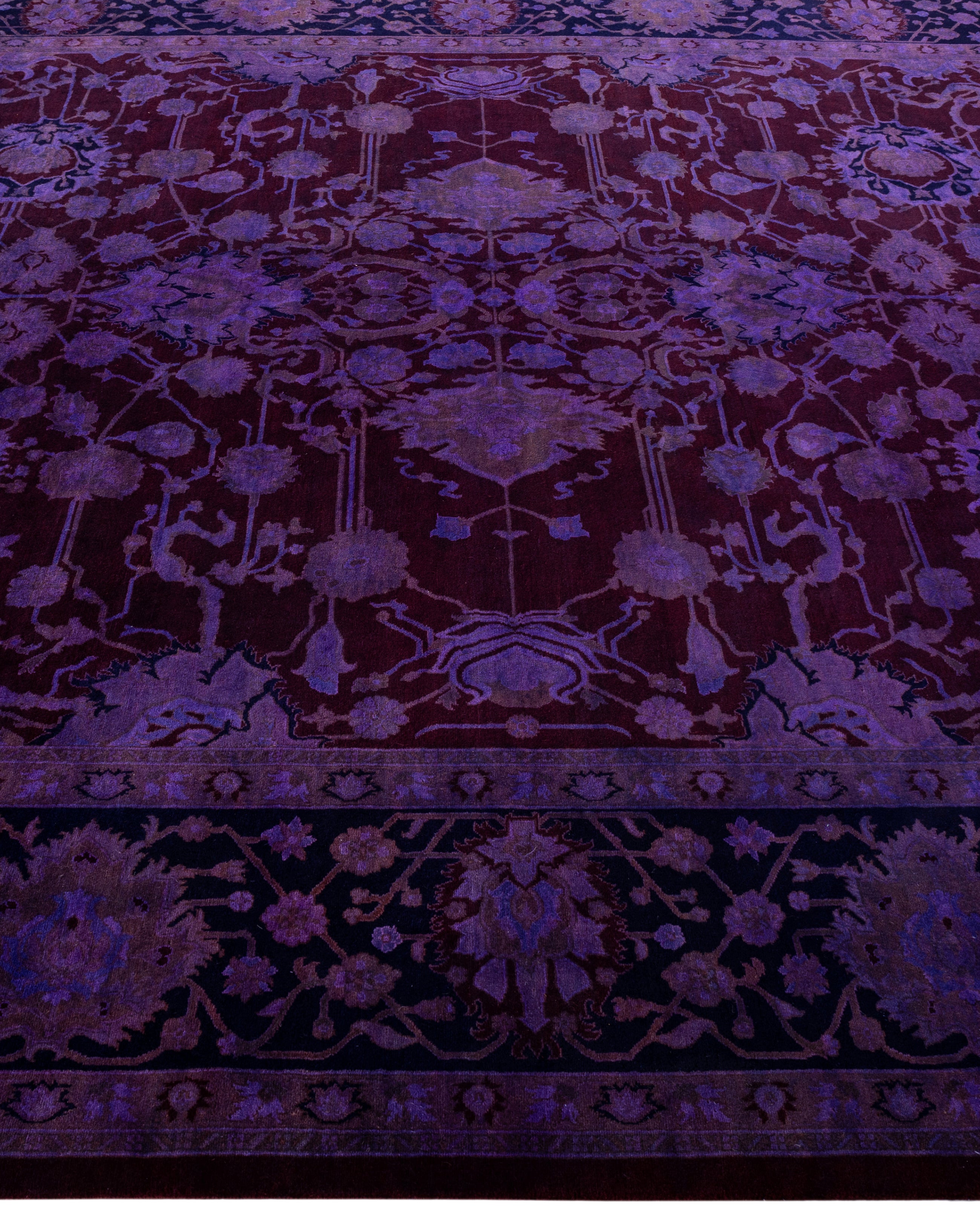 Over-dyed area rugs are created by taking vintage or traditional rugs and applying a vibrant, monochromatic dye over the existing patterns. This technique results in a bold, modern aesthetic while preserving the intricate designs beneath, blending the old with the new. The rugs are often faded and distressed before dyeing, which adds texture and depth to their appearance. The over-dye process breathes new life into worn or antique rugs, giving them a contemporary twist with rich, saturated colors like deep blues, purples, or bright reds. These rugs work well in both eclectic and modern spaces, offering a unique, artistic flair to any room. They provide a dynamic focal point, balancing between traditional craftsmanship and contemporary design trends. Over-dyed rugs are perfect for those looking to add a pop of color and character to their home decor.
