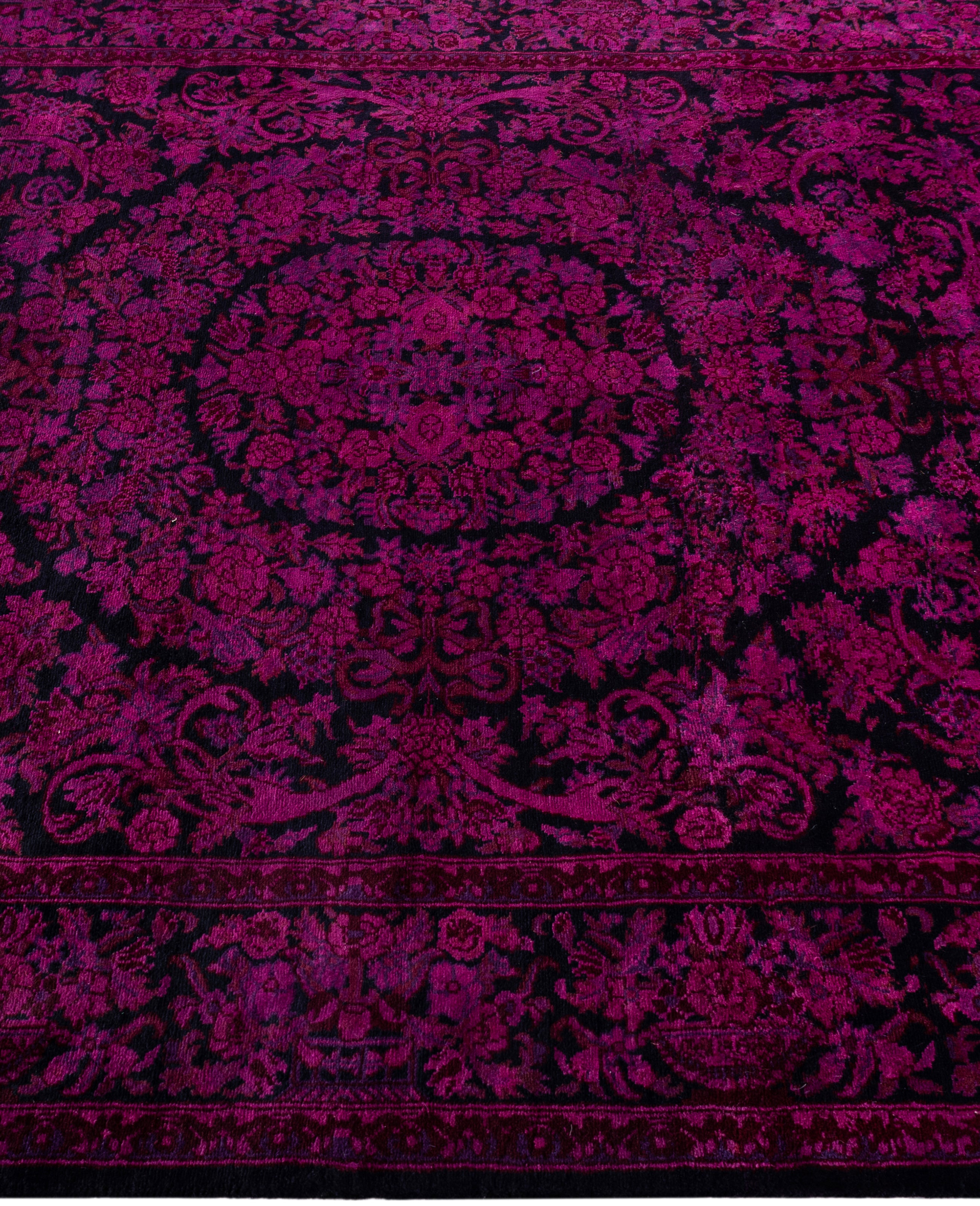 Over-dyed area rugs are created by taking vintage or traditional rugs and applying a vibrant, monochromatic dye over the existing patterns. This technique results in a bold, modern aesthetic while preserving the intricate designs beneath, blending the old with the new. The rugs are often faded and distressed before dyeing, which adds texture and depth to their appearance. The over-dye process breathes new life into worn or antique rugs, giving them a contemporary twist with rich, saturated colors like deep blues, purples, or bright reds. These rugs work well in both eclectic and modern spaces, offering a unique, artistic flair to any room. They provide a dynamic focal point, balancing between traditional craftsmanship and contemporary design trends. Over-dyed rugs are perfect for those looking to add a pop of color and character to their home decor.