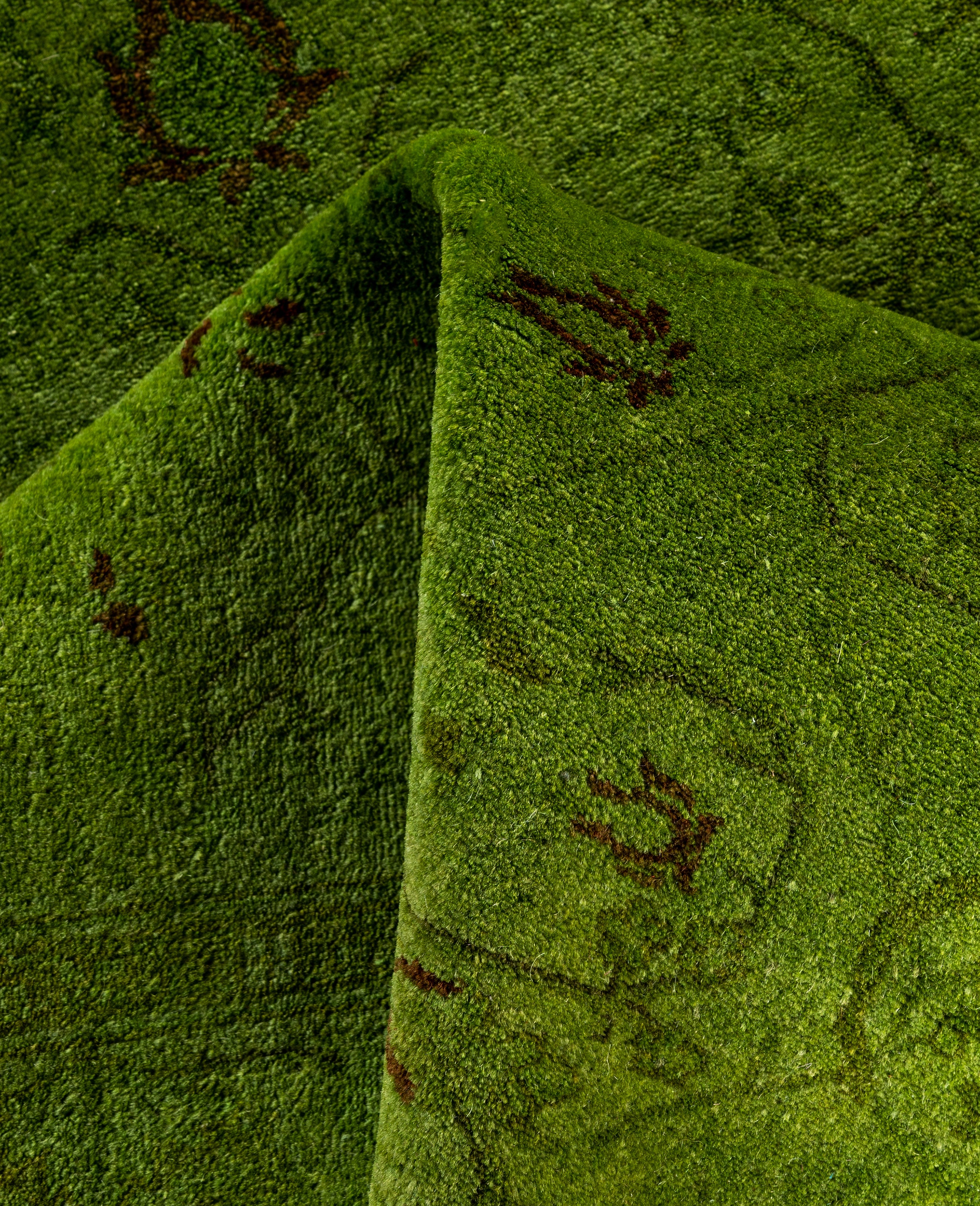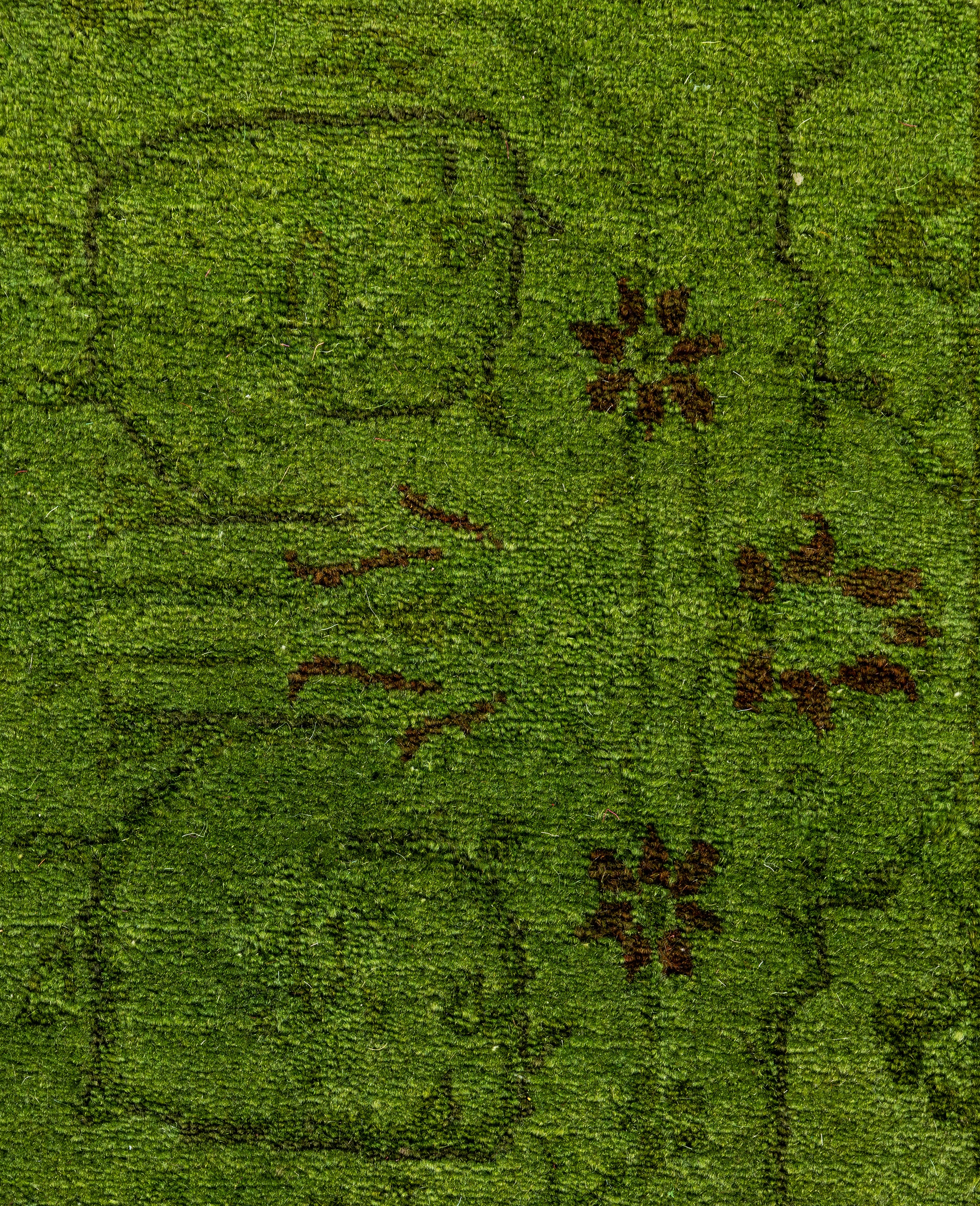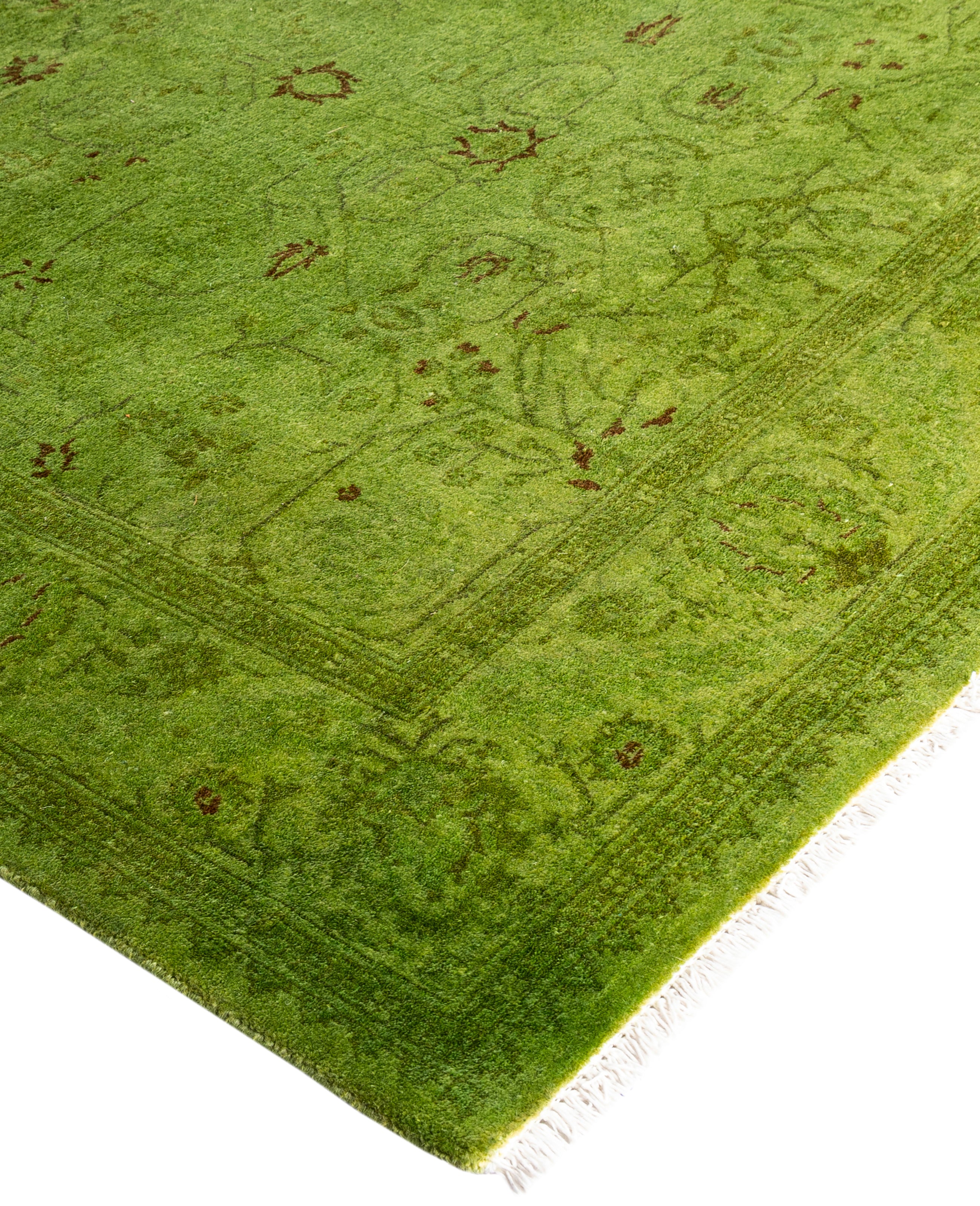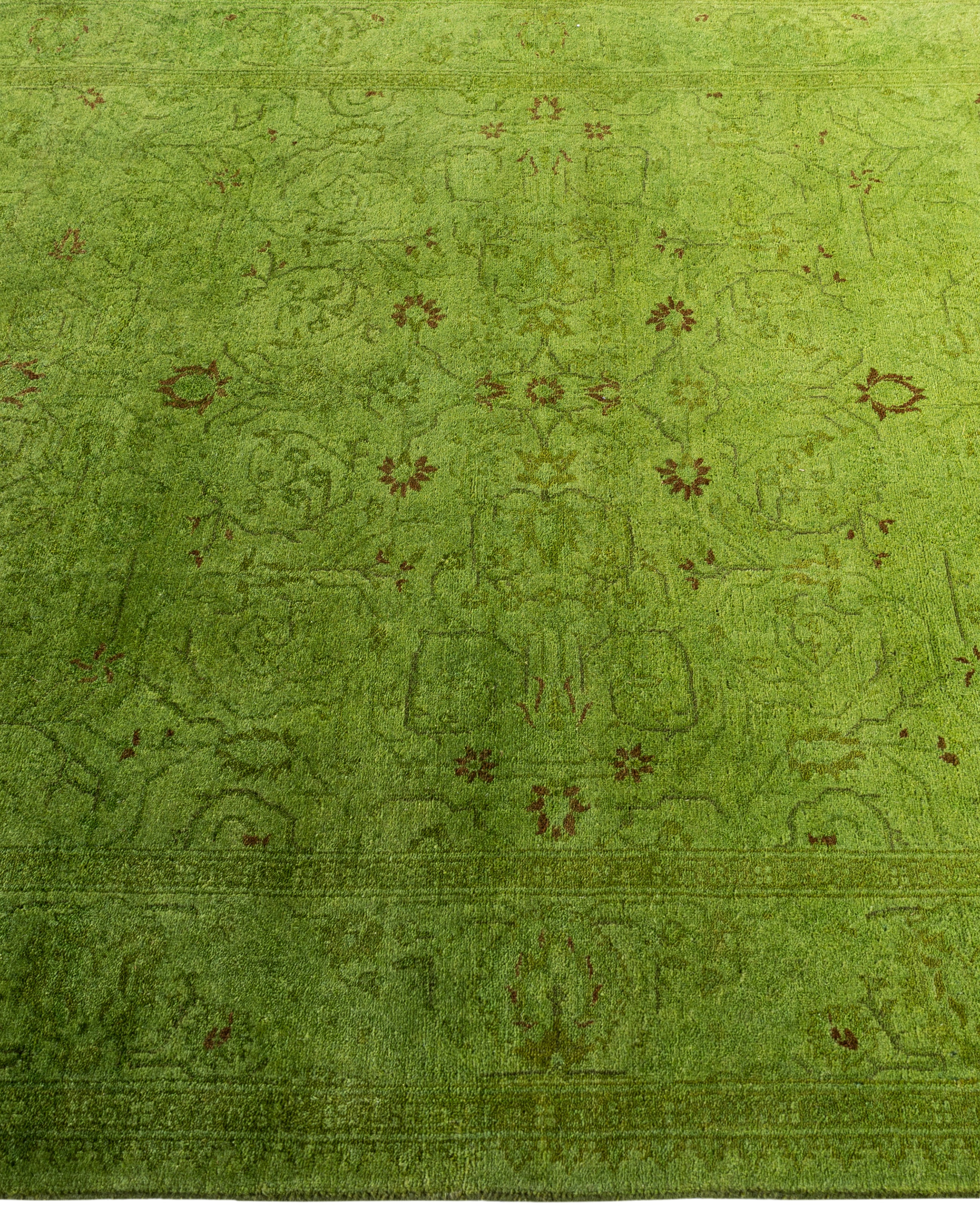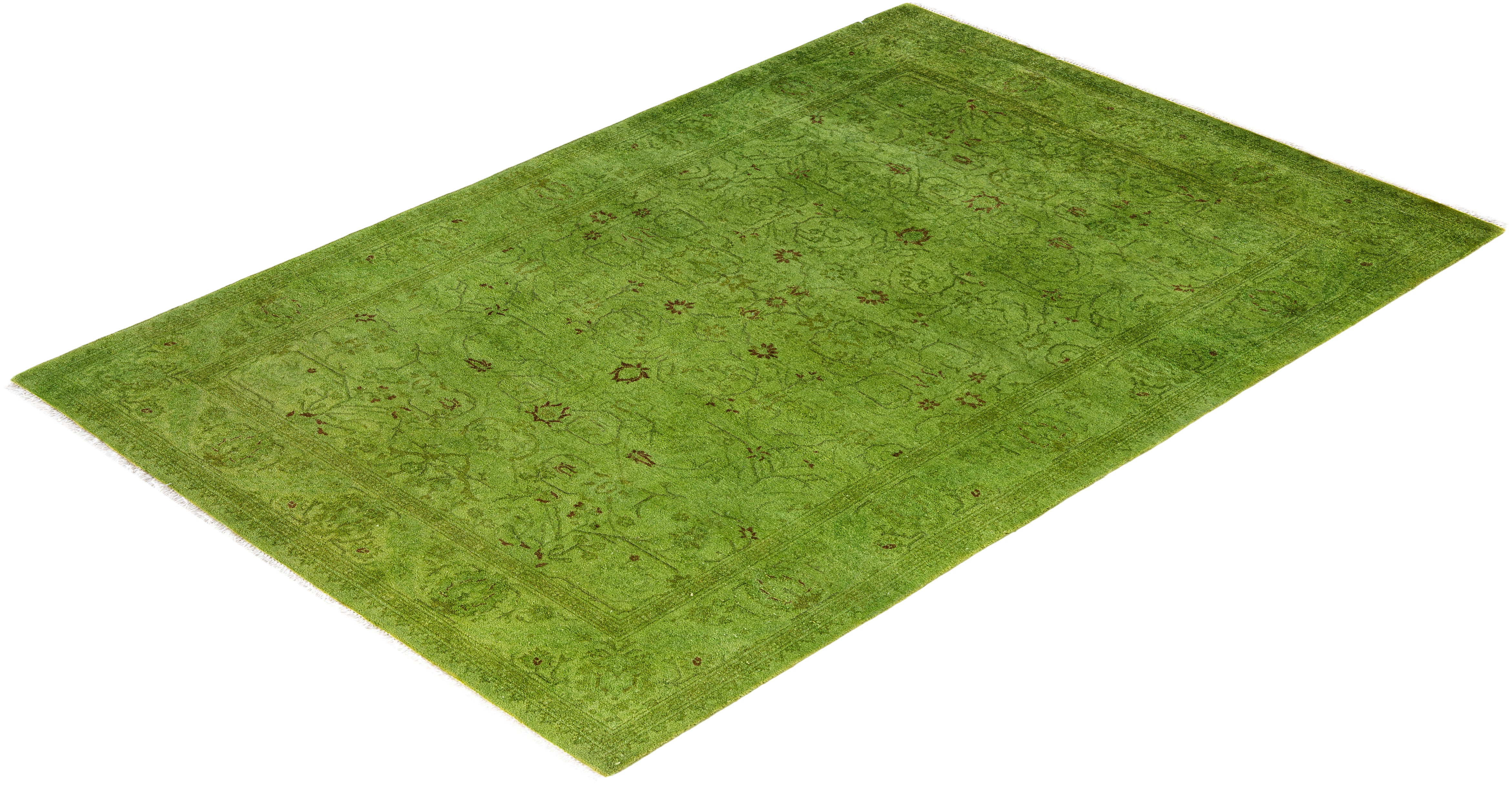 Contemporary Overdyed Wool Hand Knotted Green Area Rug 4' 2" x 6' 2"