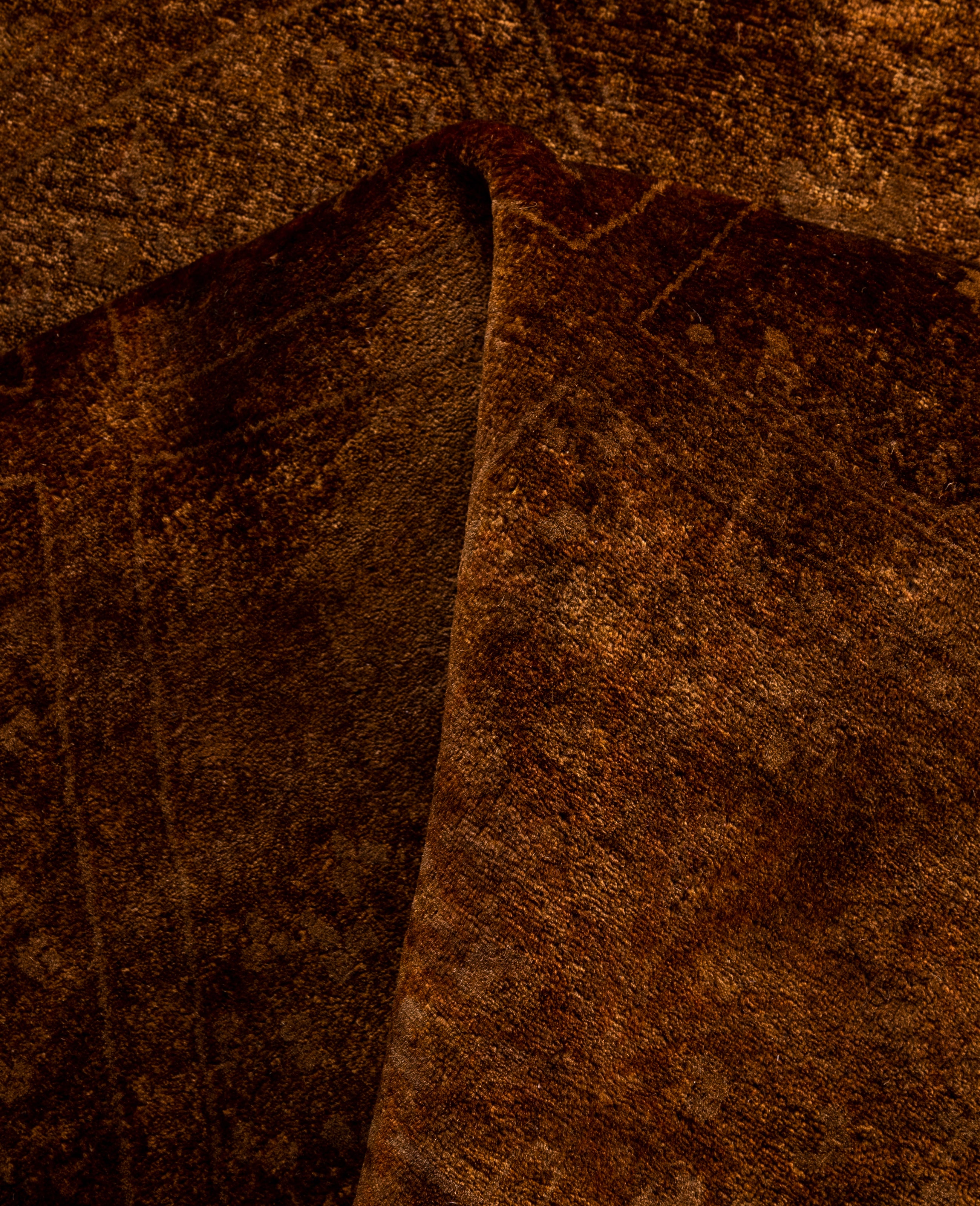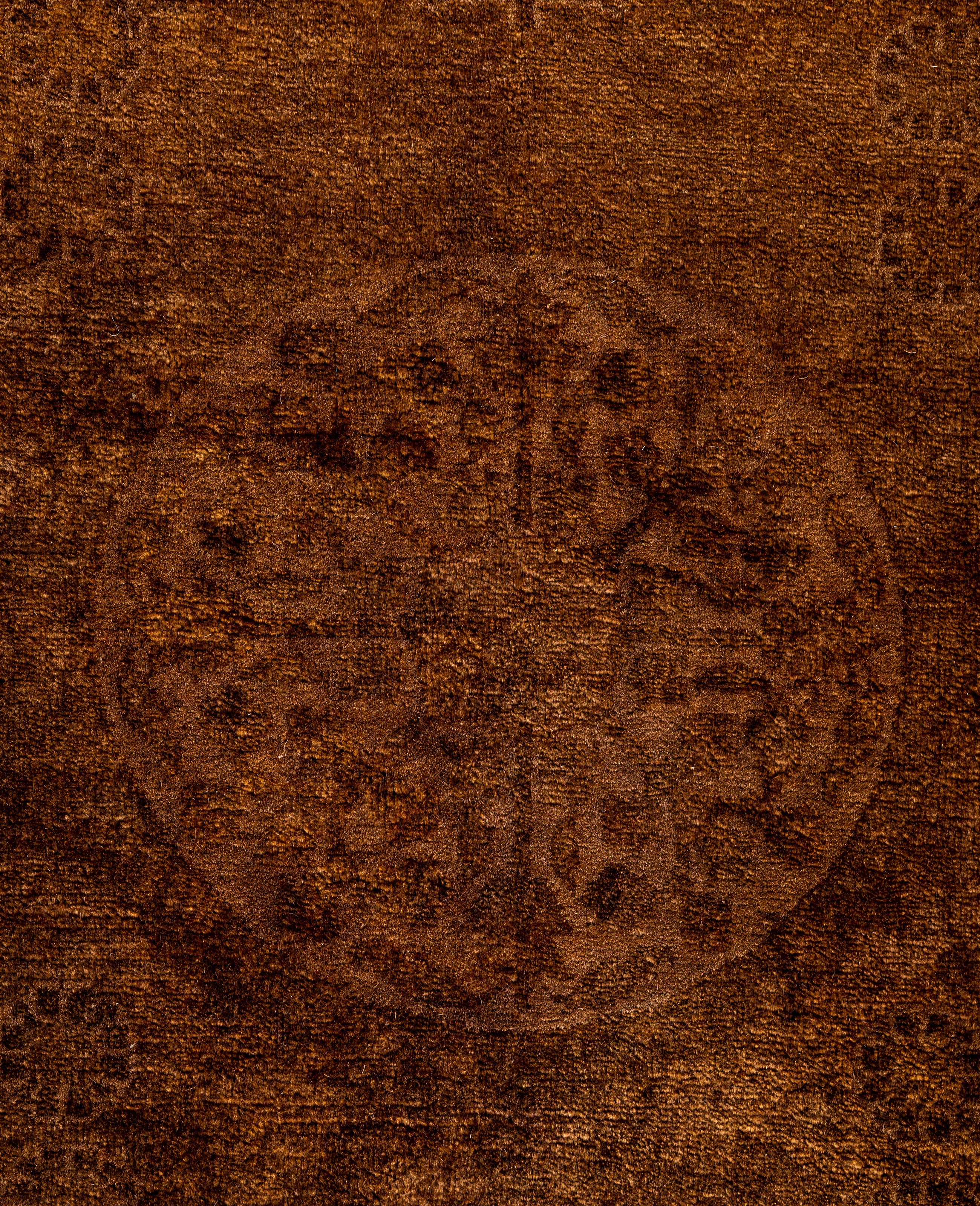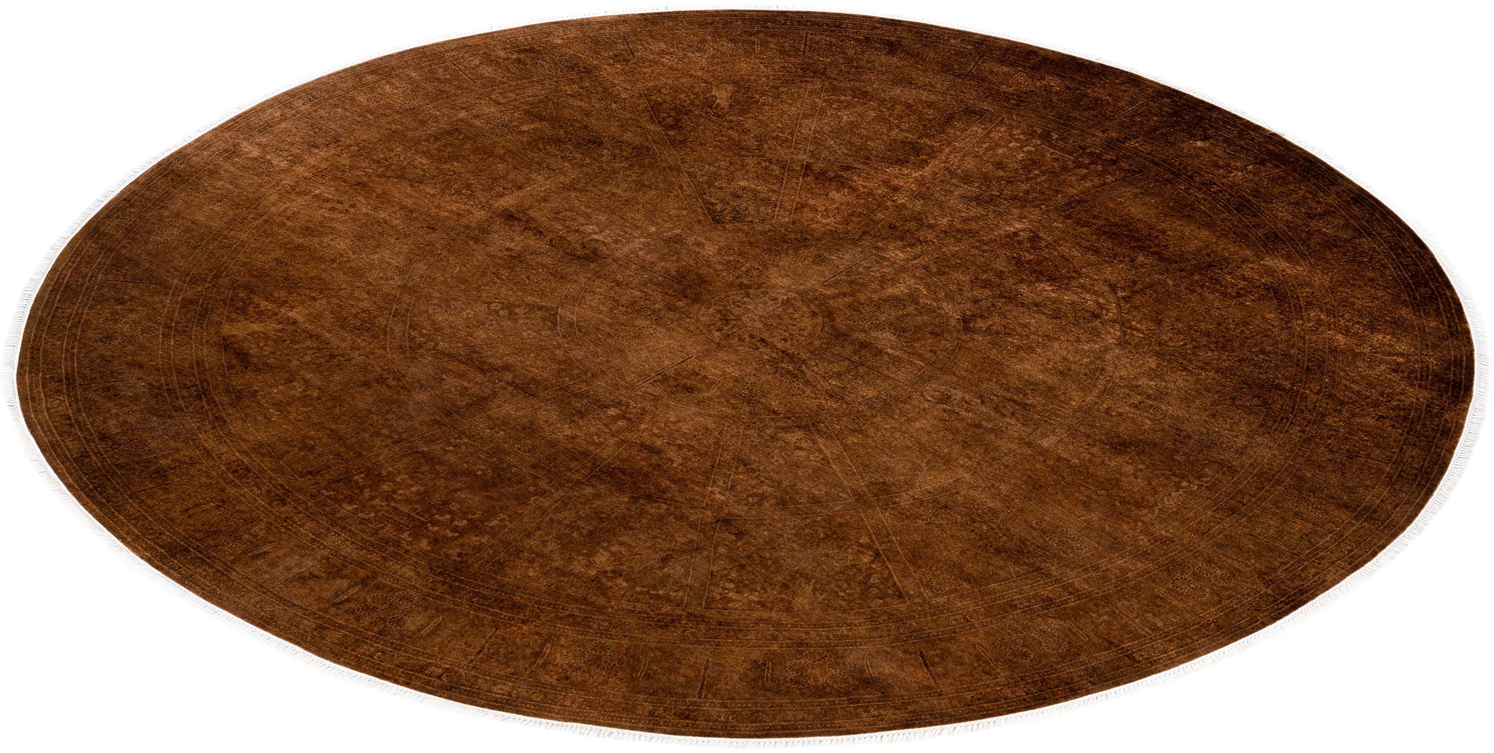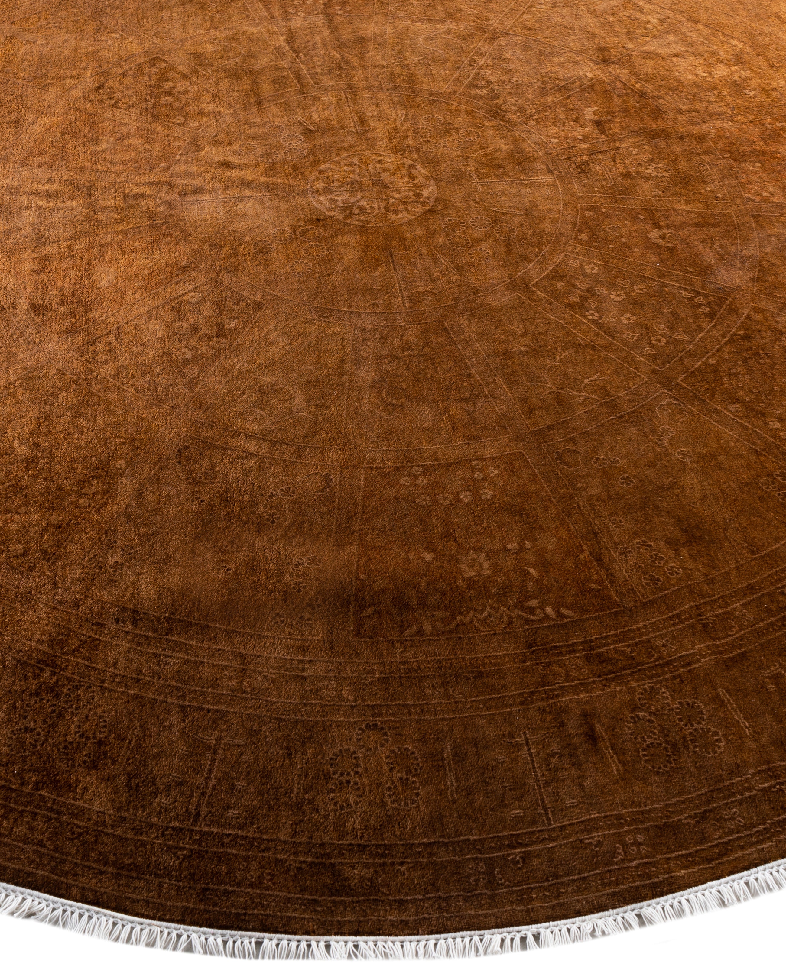 Contemporary Overdyed Wool Hand Knotted Brown Round Area Rug 8' 1" x 8' 1"