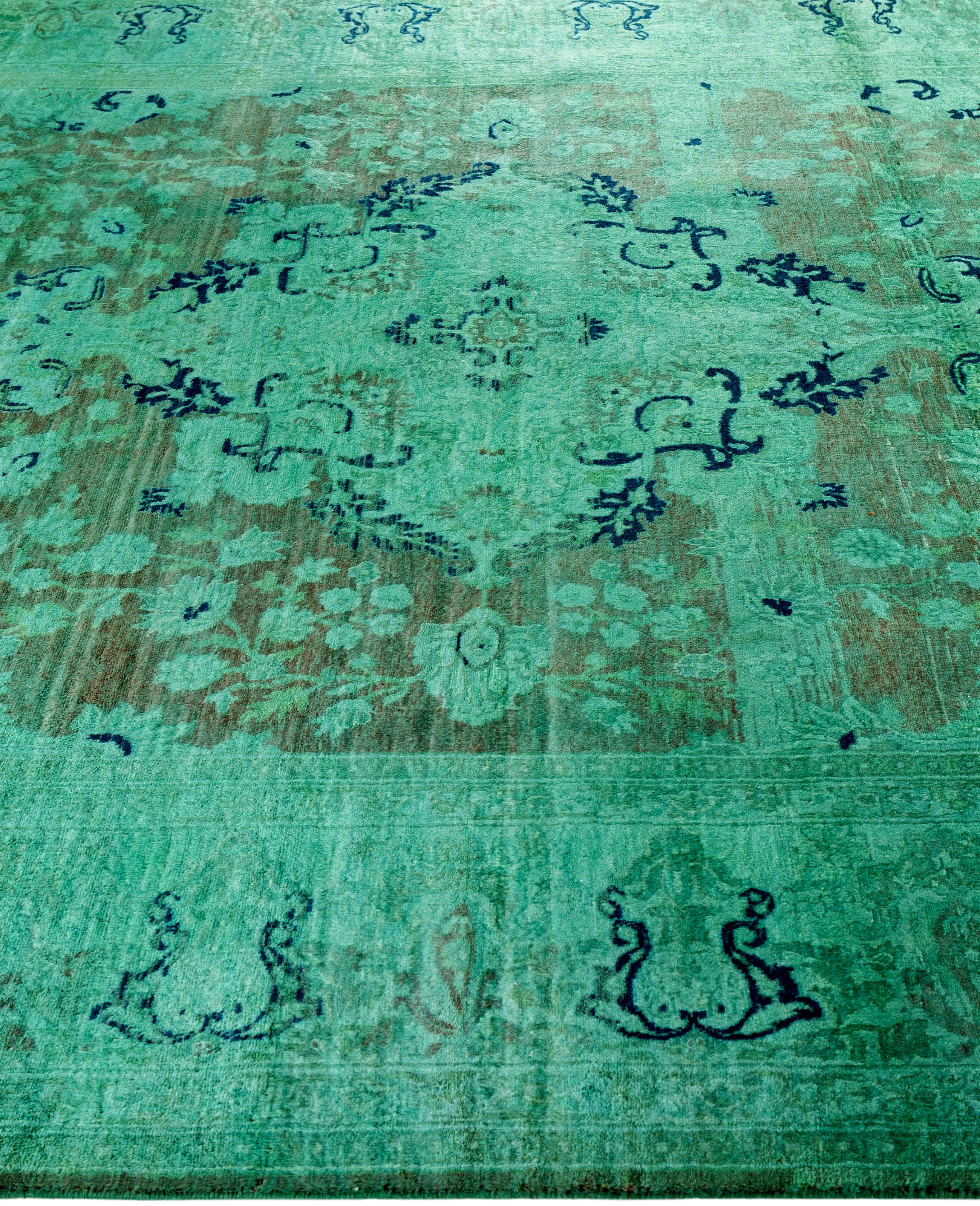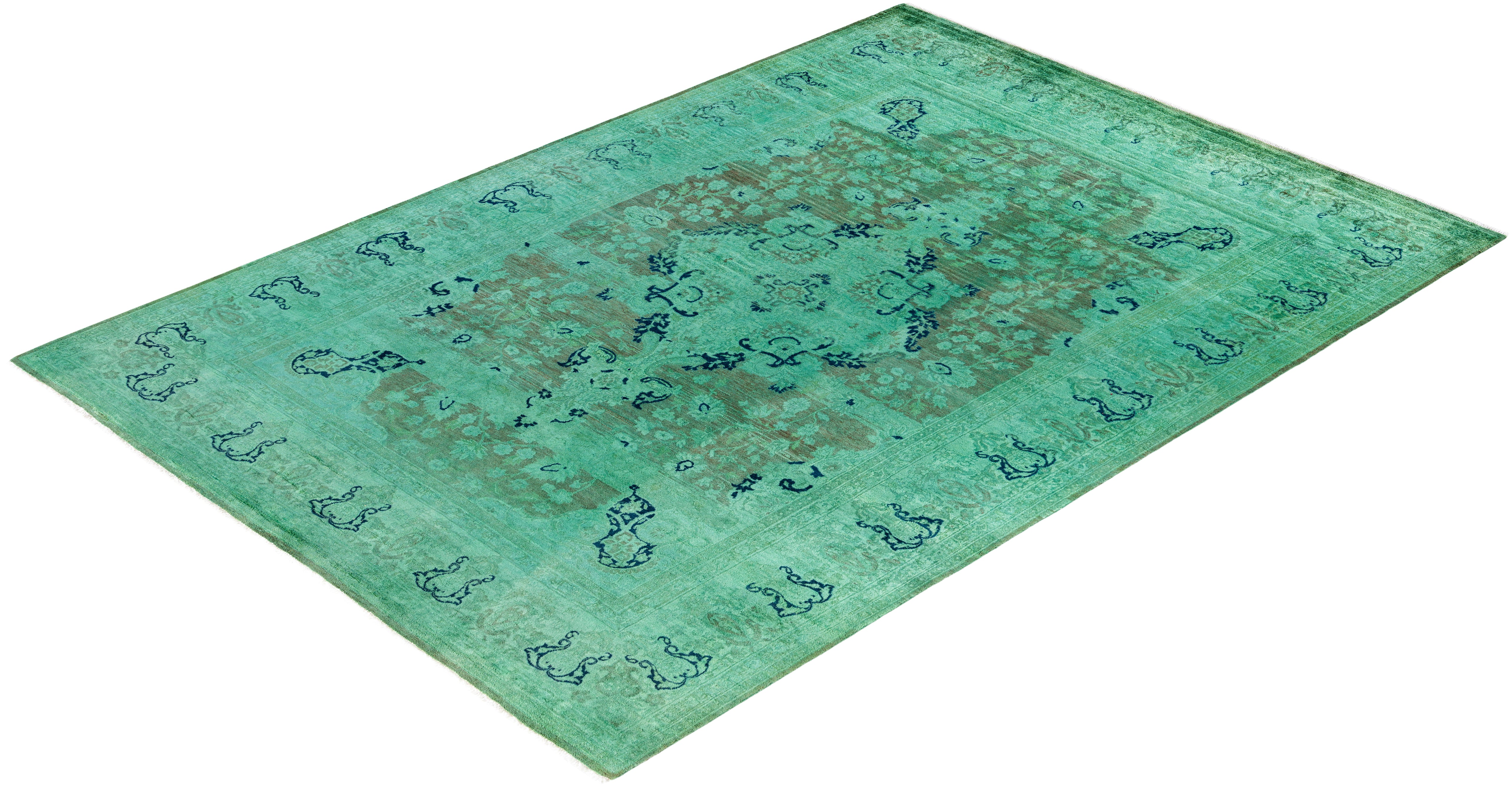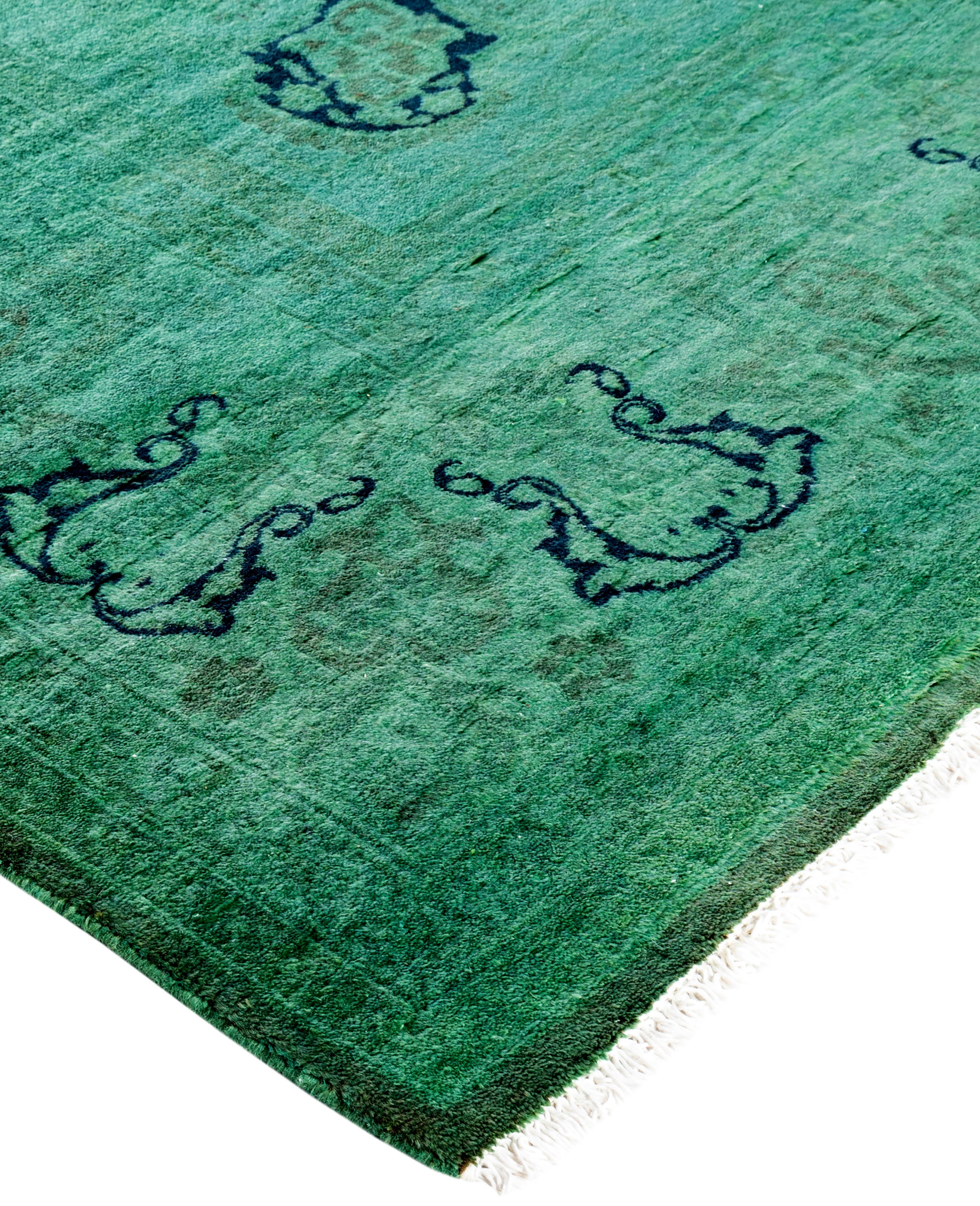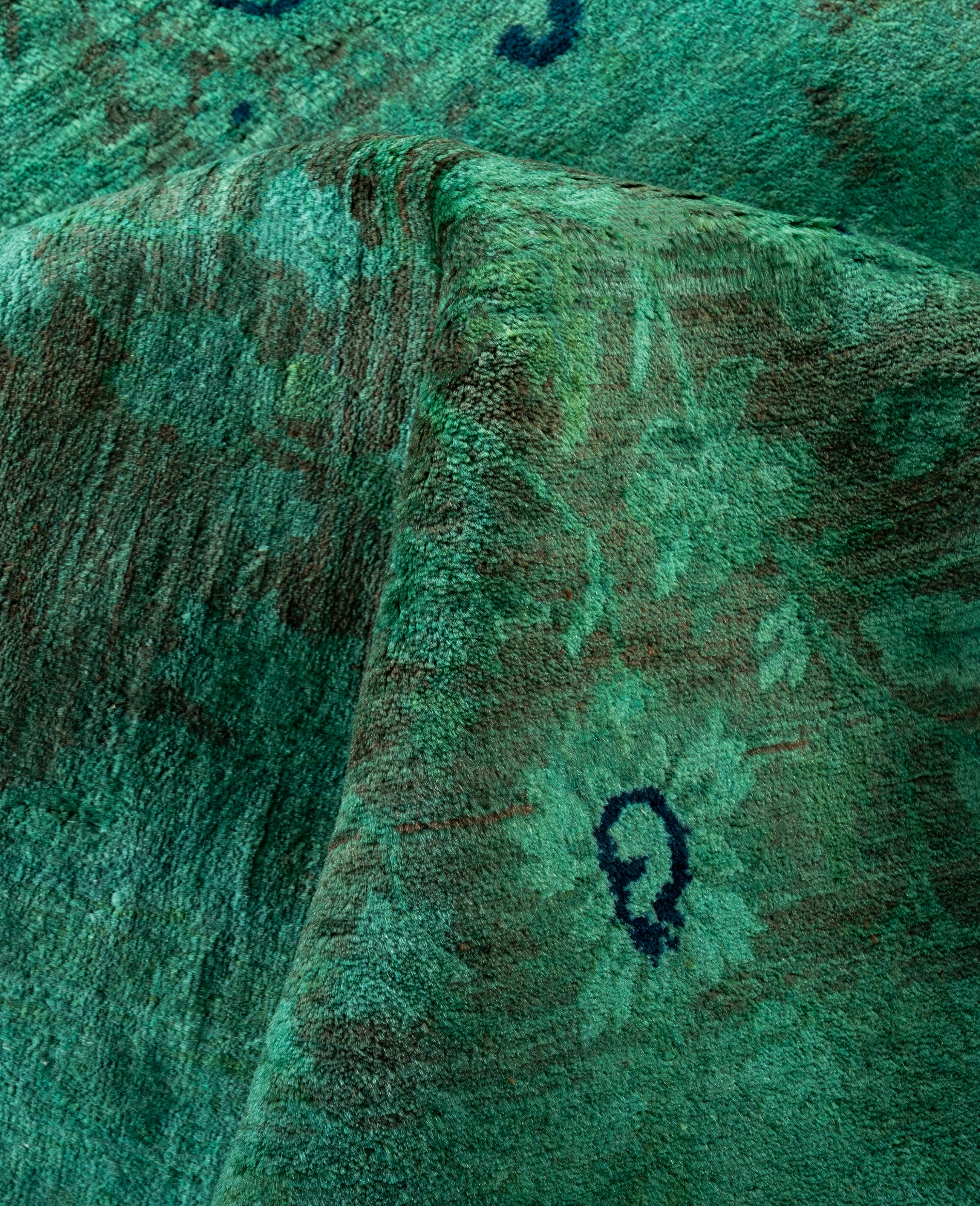 Contemporary Overdyed Wool Hand Knotted Green Area Rug 6' 2" x 8' 10"