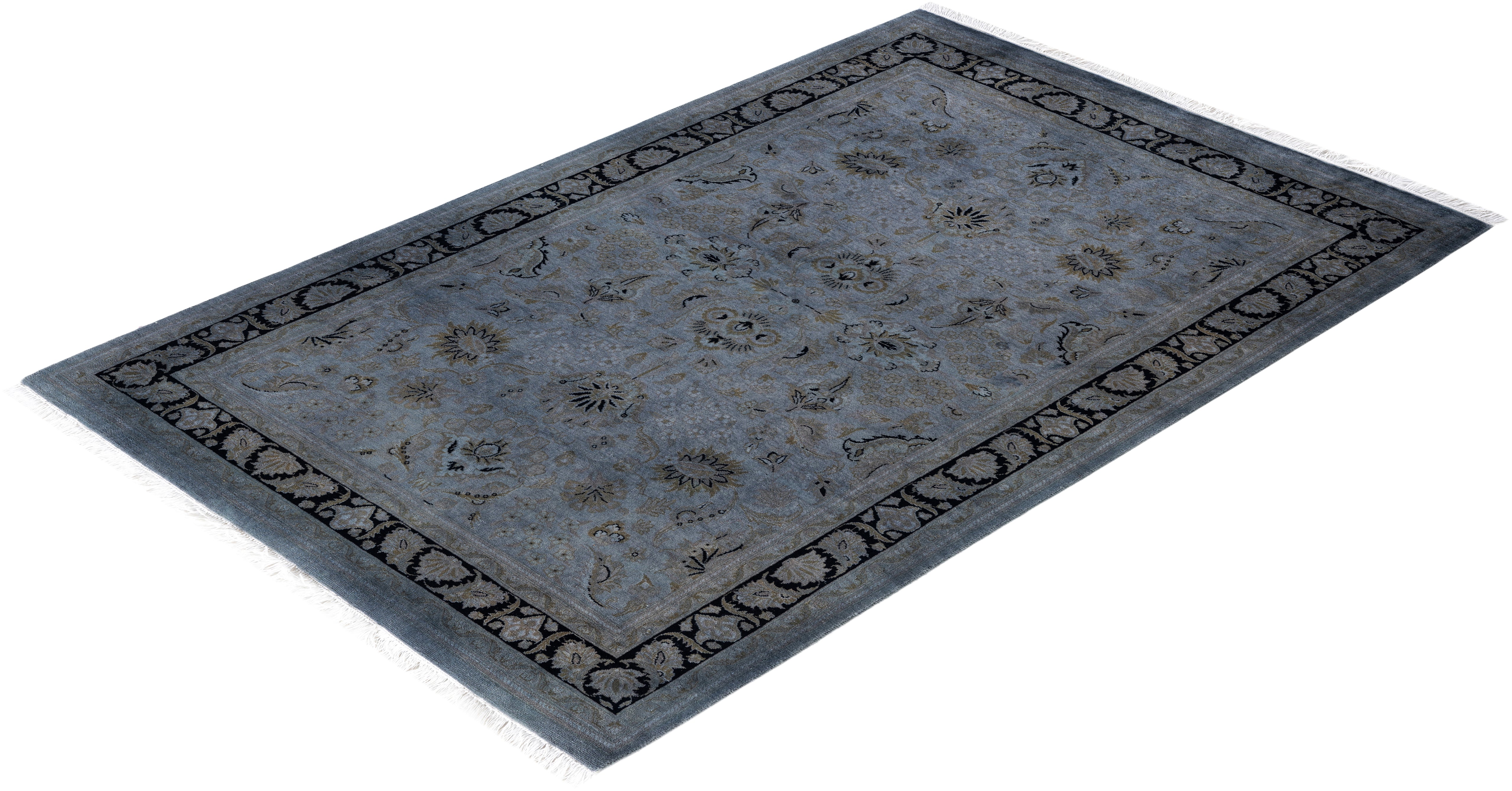Contemporary Overdyed Wool Hand Knotted Gray Area Rug 4' 1" x 6' 2"