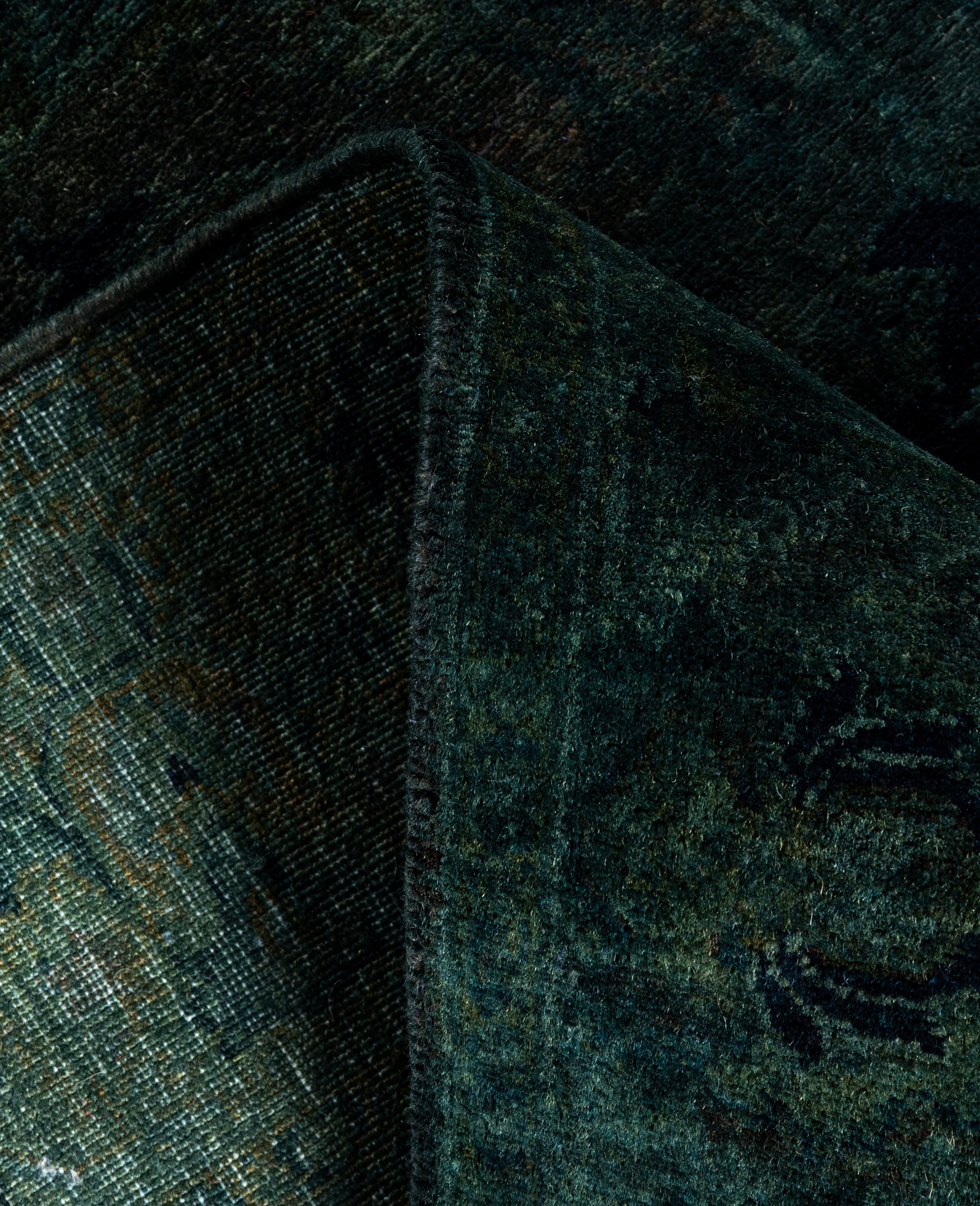 Over-dyed area rugs are created by taking vintage or traditional rugs and applying a vibrant, monochromatic dye over the existing patterns. This technique results in a bold, modern aesthetic while preserving the intricate designs beneath, blending the old with the new. The rugs are often faded and distressed before dyeing, which adds texture and depth to their appearance. The over-dye process breathes new life into worn or antique rugs, giving them a contemporary twist with rich, saturated colors like deep blues, purples, or bright reds. These rugs work well in both eclectic and modern spaces, offering a unique, artistic flair to any room. They provide a dynamic focal point, balancing between traditional craftsmanship and contemporary design trends. Over-dyed rugs are perfect for those looking to add a pop of color and character to their home decor.