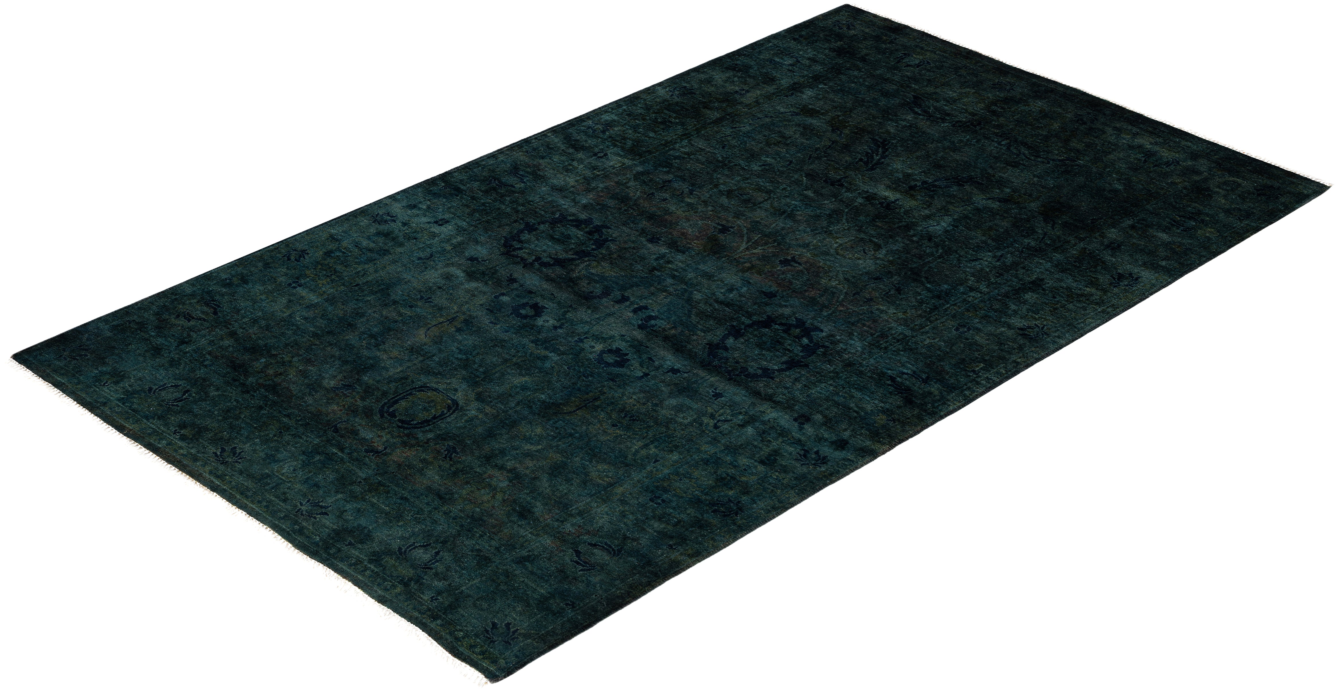 Contemporary Overdyed Wool Hand Knotted Green Area Rug 3' 1" x 5' 5"