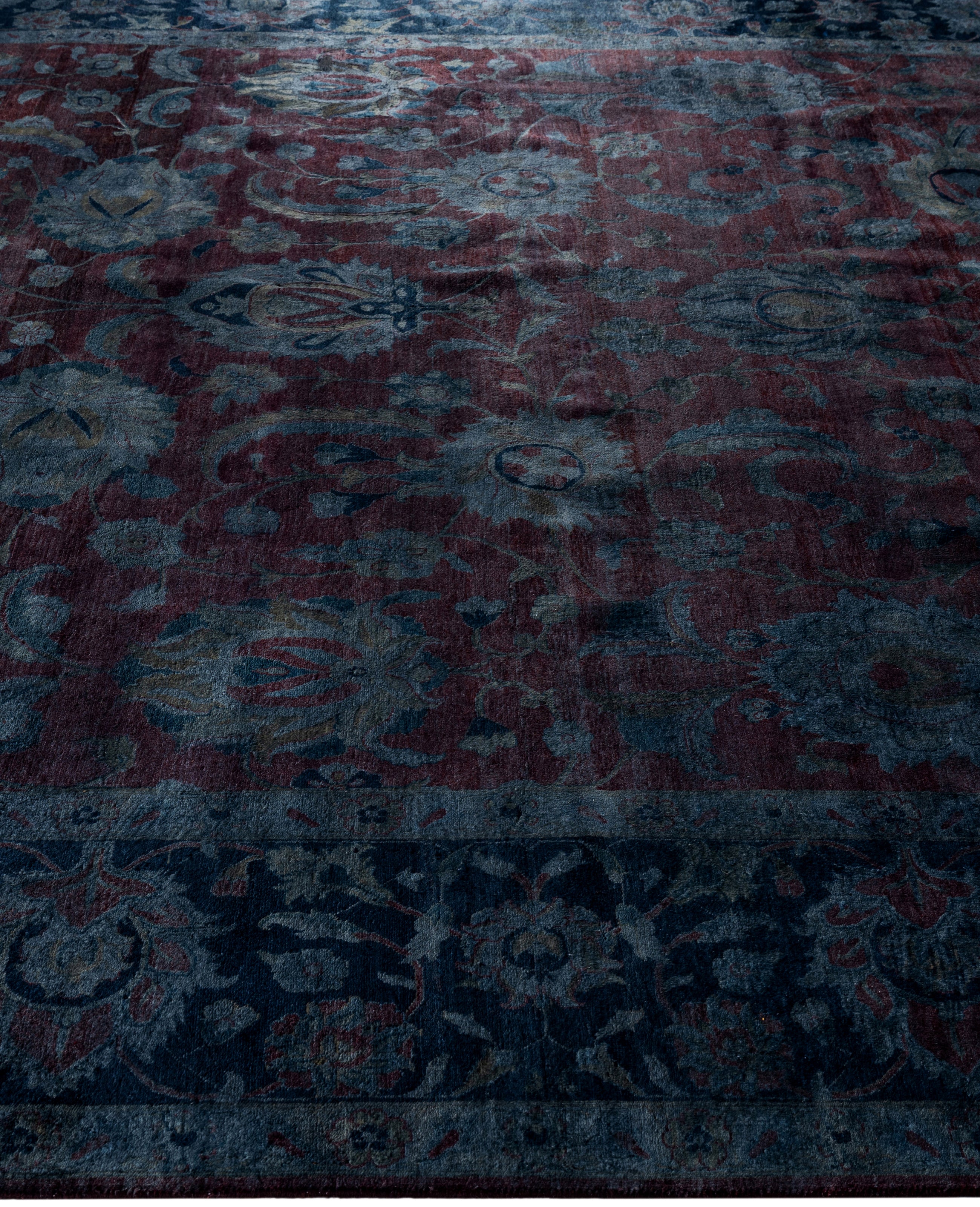 Over-dyed area rugs are created by taking vintage or traditional rugs and applying a vibrant, monochromatic dye over the existing patterns. This technique results in a bold, modern aesthetic while preserving the intricate designs beneath, blending the old with the new. The rugs are often faded and distressed before dyeing, which adds texture and depth to their appearance. The over-dye process breathes new life into worn or antique rugs, giving them a contemporary twist with rich, saturated colors like deep blues, purples, or bright reds. These rugs work well in both eclectic and modern spaces, offering a unique, artistic flair to any room. They provide a dynamic focal point, balancing between traditional craftsmanship and contemporary design trends. Over-dyed rugs are perfect for those looking to add a pop of color and character to their home decor.