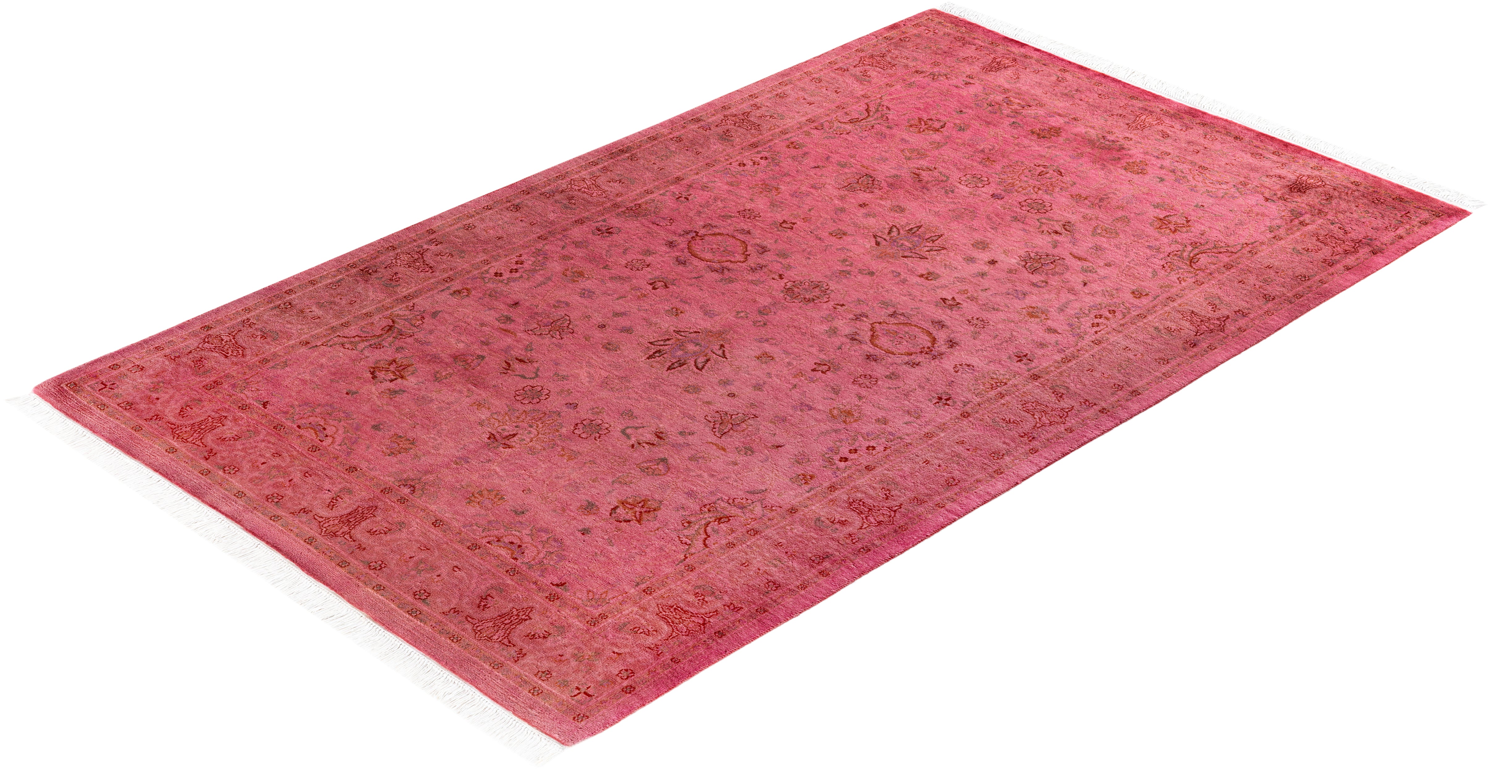 Contemporary Overdyed Wool Hand Knotted Pink Area Rug 3' 2" x 5' 3"