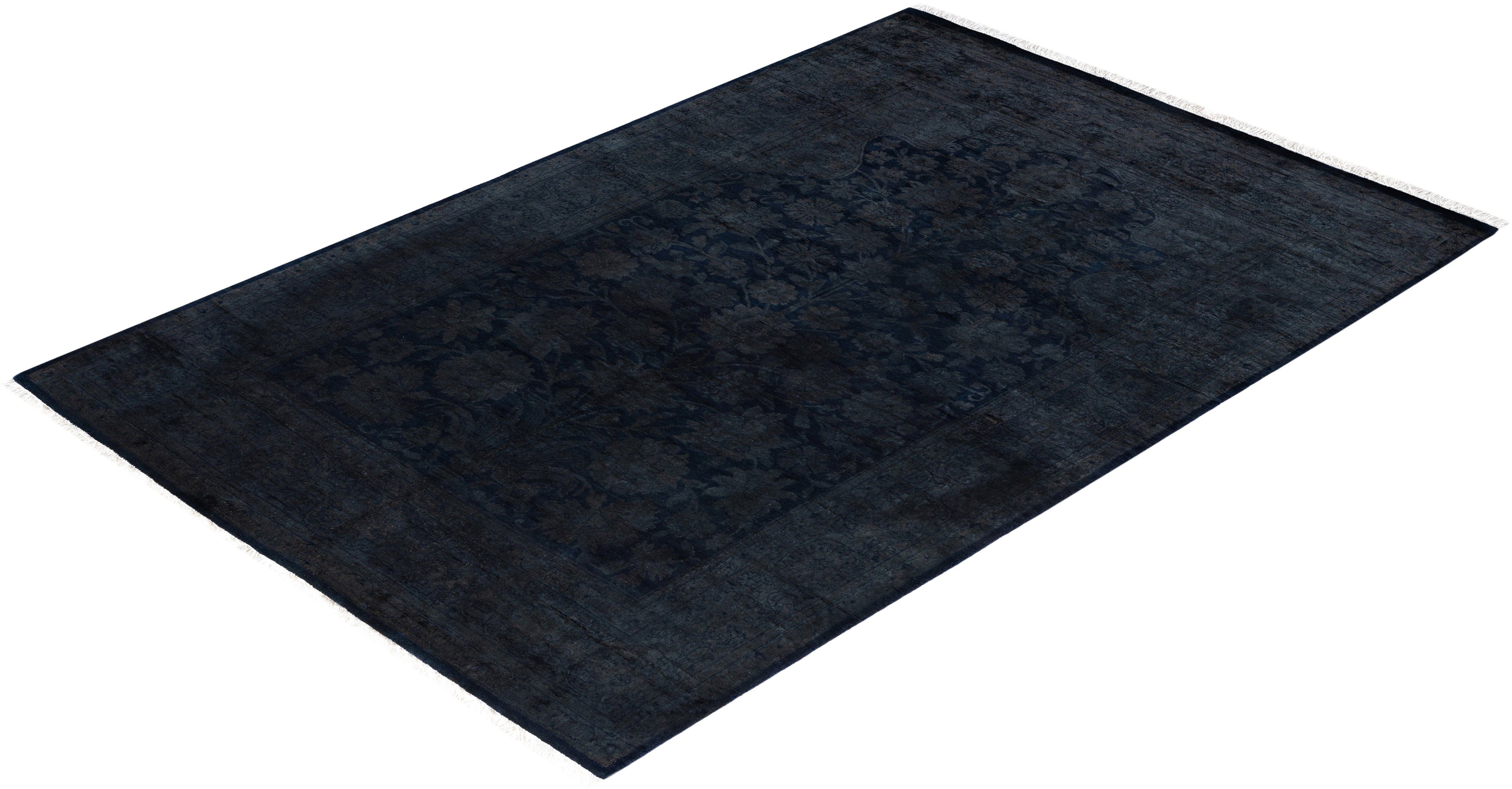 Contemporary Overdyed Wool Hand Knotted Black Area Rug 4' 3" x 6' 1"