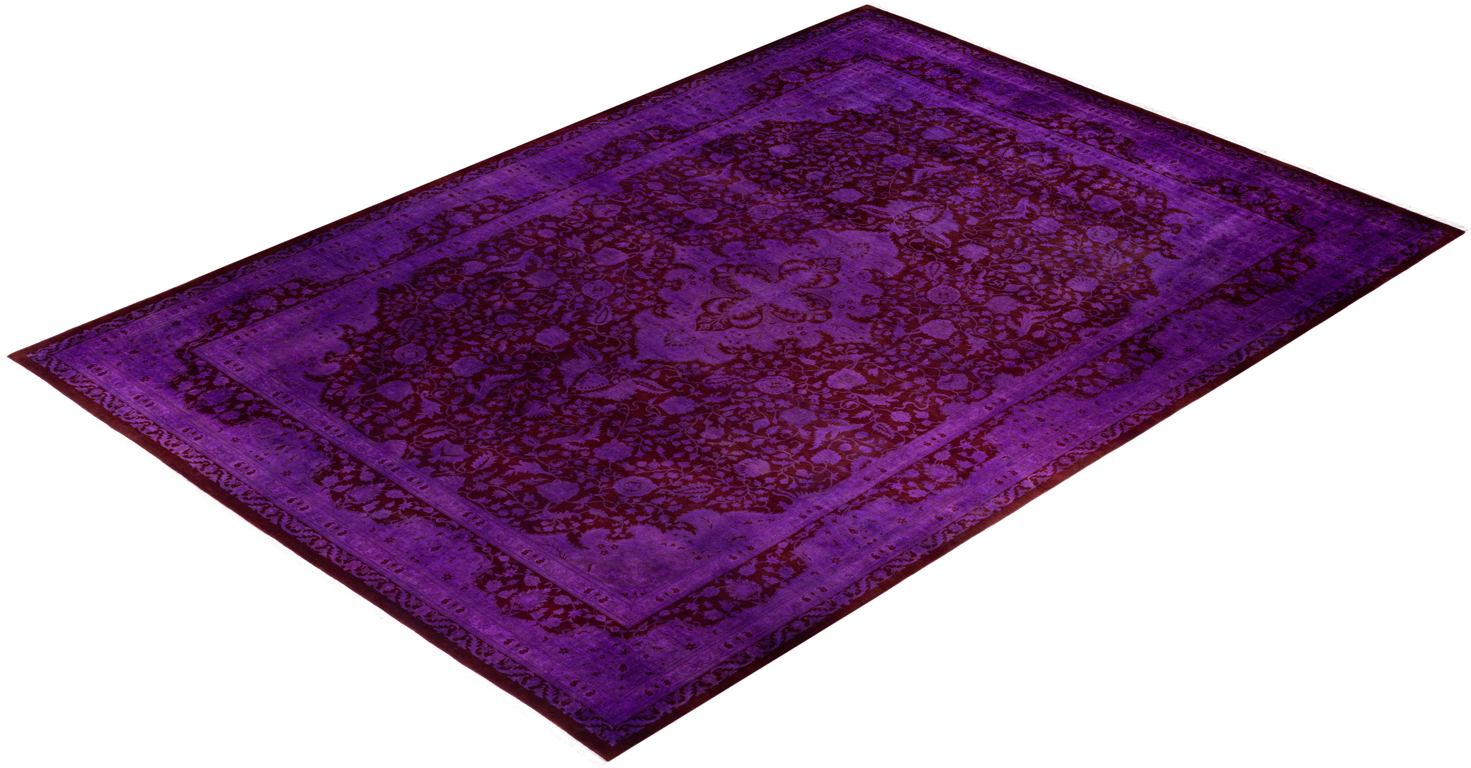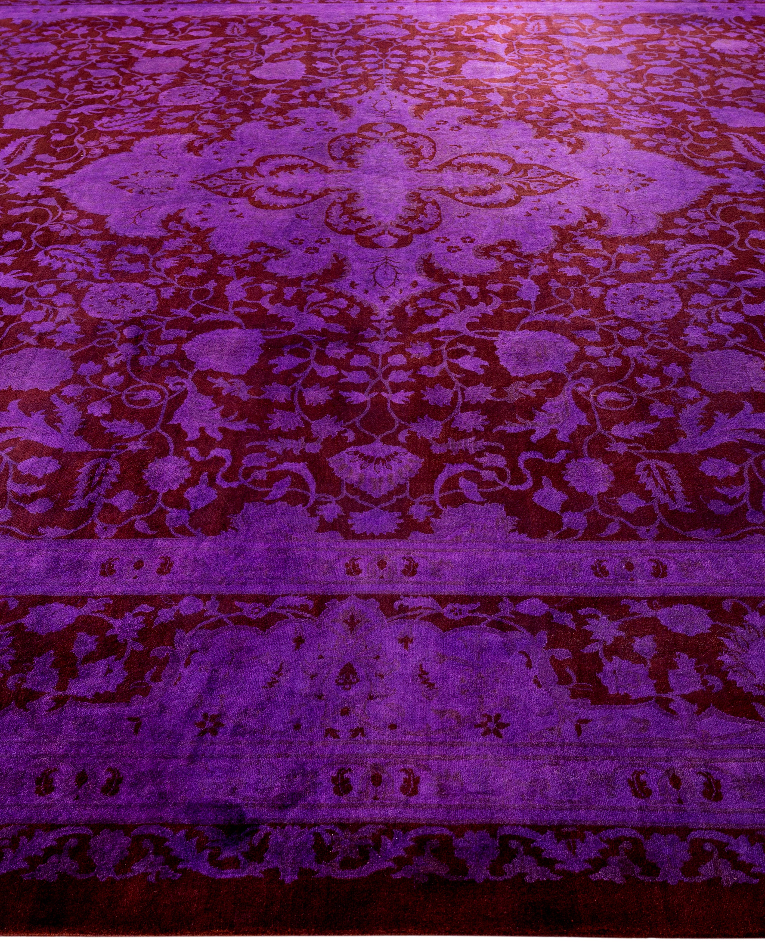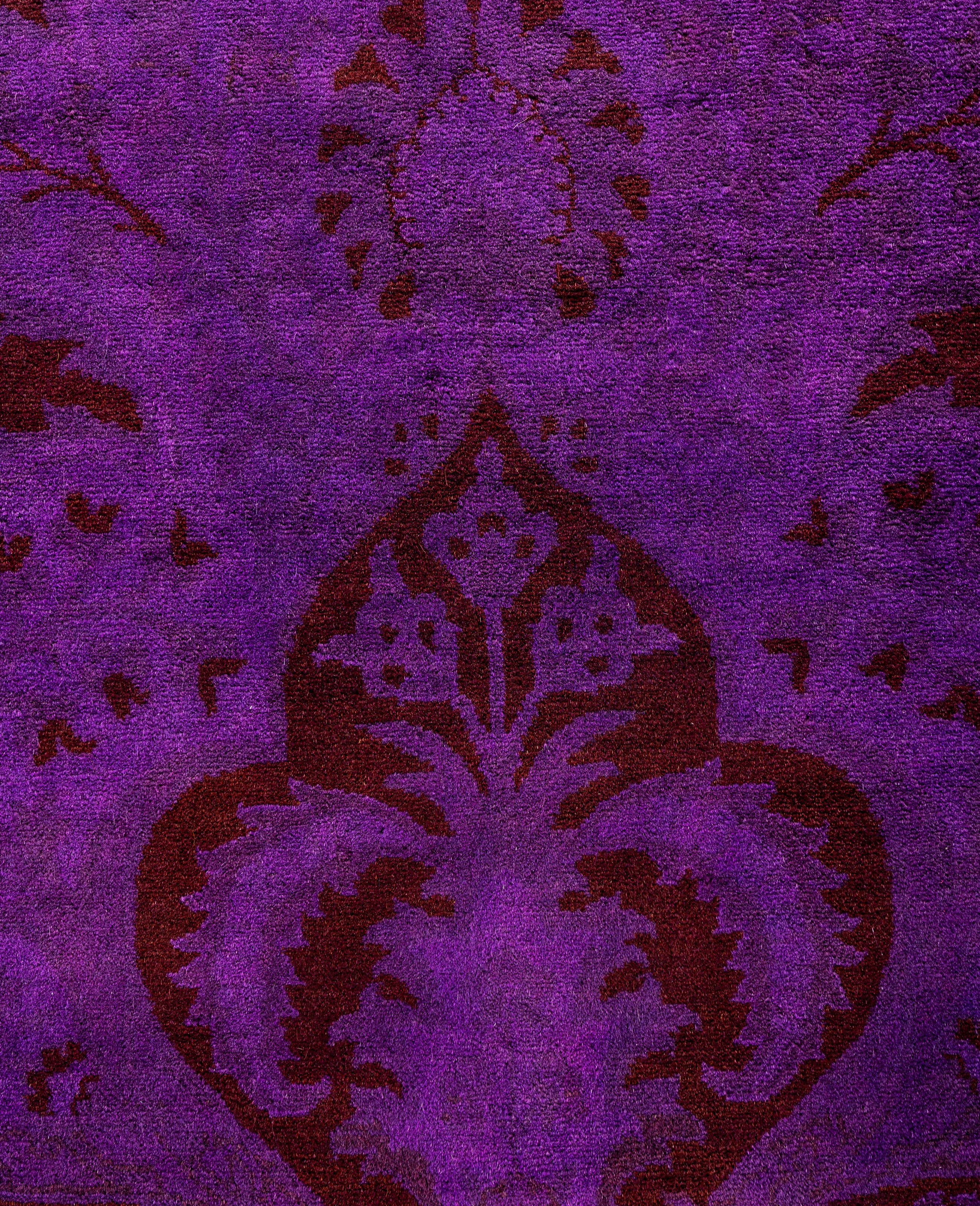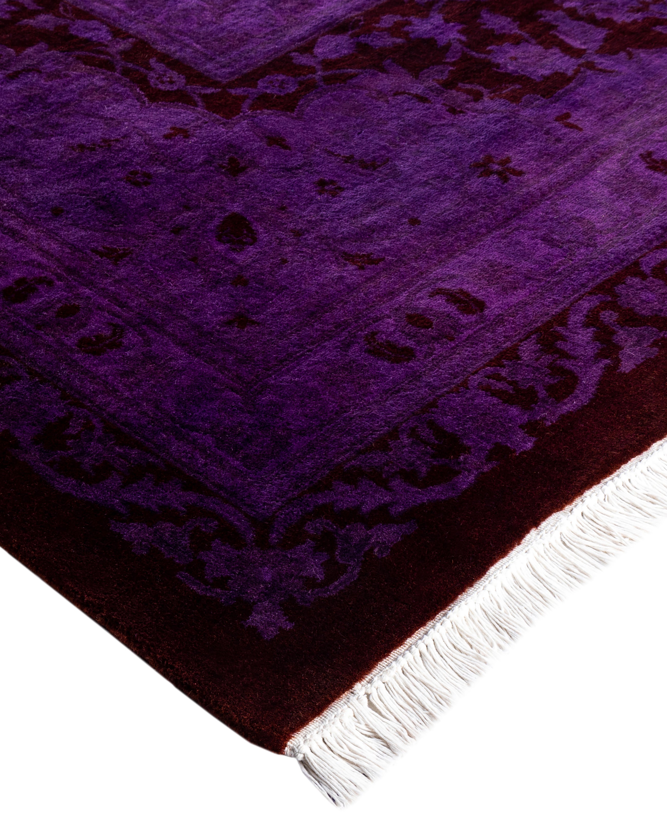 Contemporary Overdyed Wool Hand Knotted Purple Area Rug 10' 2" x 14' 4"