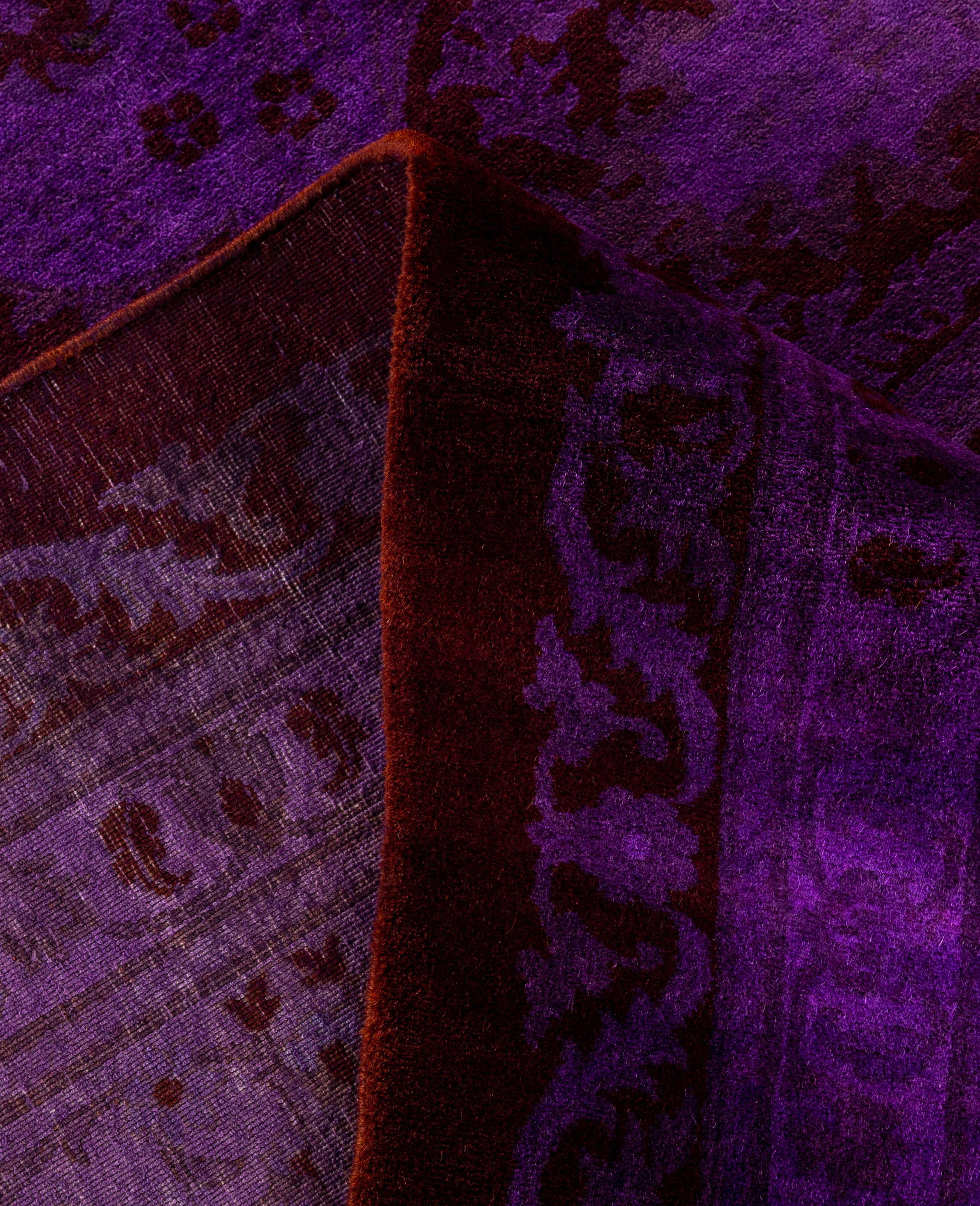 Over-dyed area rugs are created by taking vintage or traditional rugs and applying a vibrant, monochromatic dye over the existing patterns. This technique results in a bold, modern aesthetic while preserving the intricate designs beneath, blending the old with the new. The rugs are often faded and distressed before dyeing, which adds texture and depth to their appearance. The over-dye process breathes new life into worn or antique rugs, giving them a contemporary twist with rich, saturated colors like deep blues, purples, or bright reds. These rugs work well in both eclectic and modern spaces, offering a unique, artistic flair to any room. They provide a dynamic focal point, balancing between traditional craftsmanship and contemporary design trends. Over-dyed rugs are perfect for those looking to add a pop of color and character to their home decor.