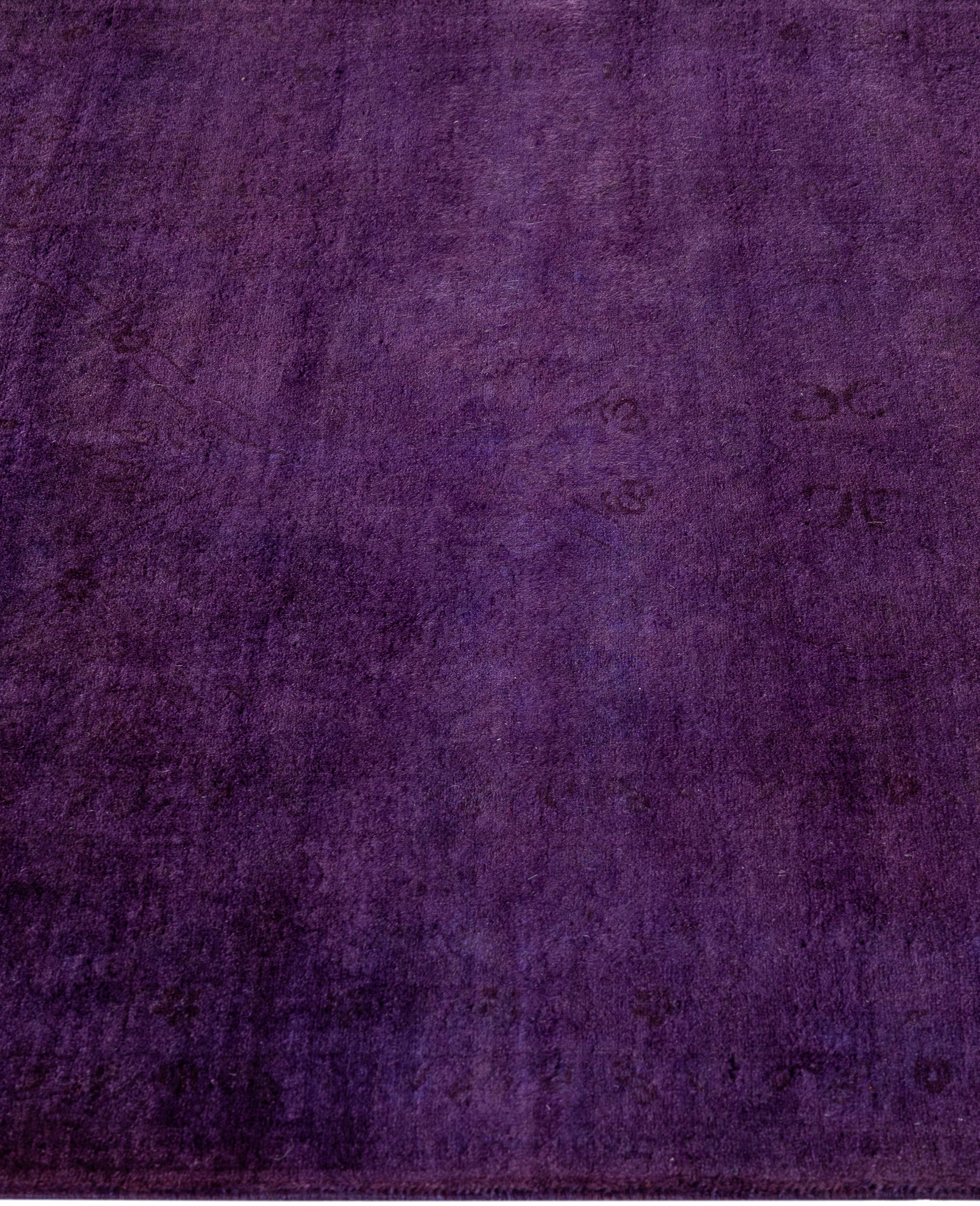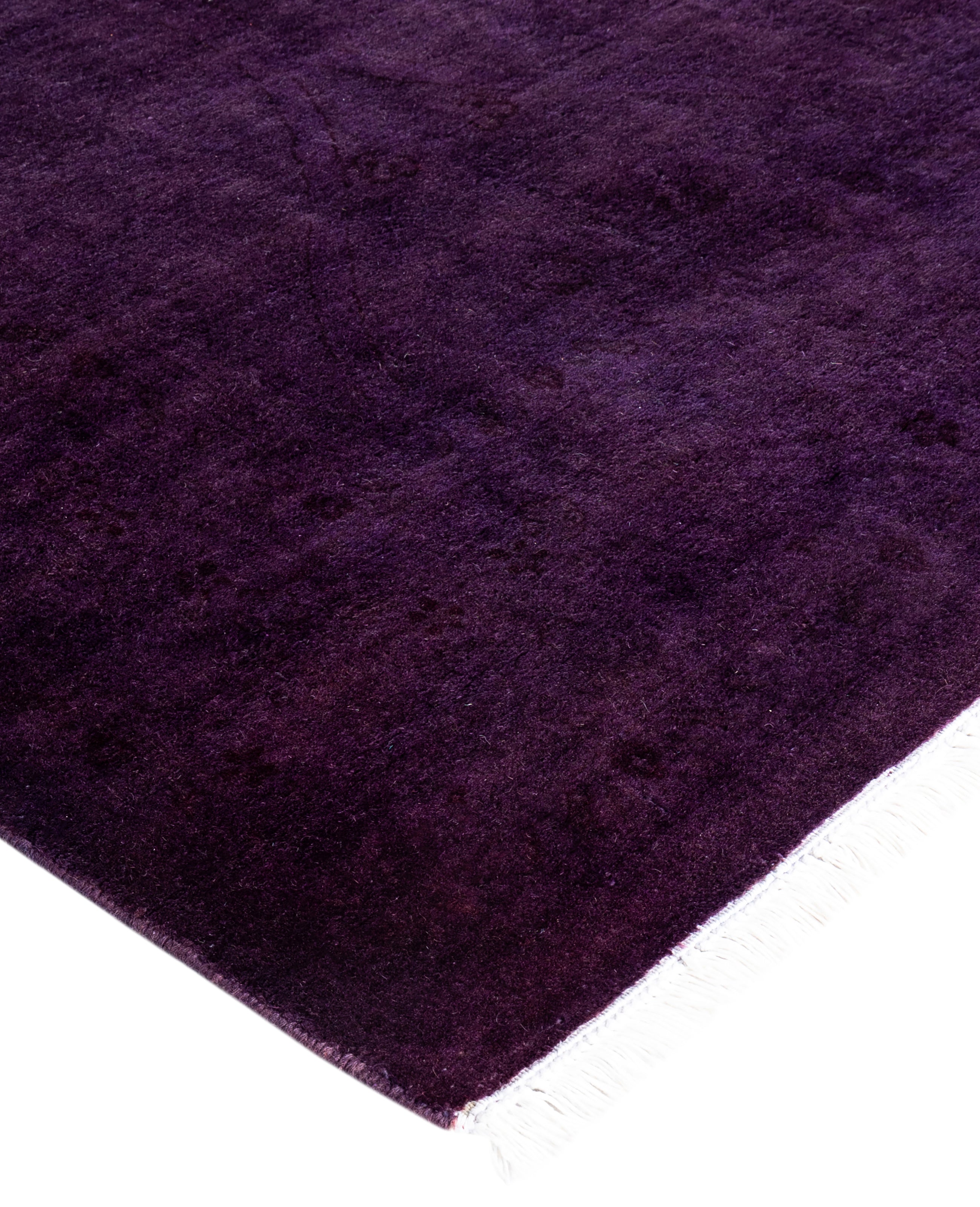 Contemporary Overdyed Wool Hand Knotted Purple Runner 3' 0" x 10' 10"
