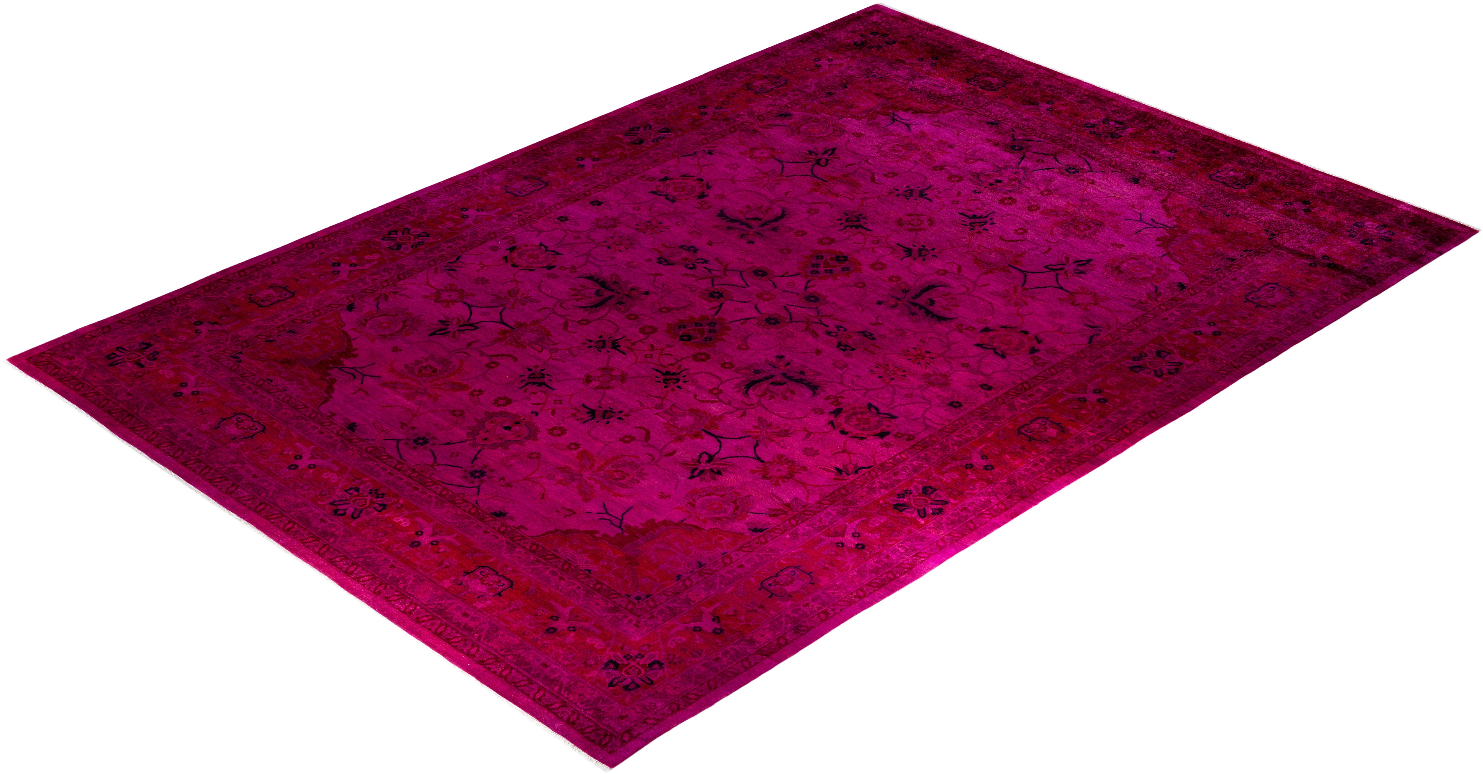 Over-dyed area rugs are created by taking vintage or traditional rugs and applying a vibrant, monochromatic dye over the existing patterns. This technique results in a bold, modern aesthetic while preserving the intricate designs beneath, blending the old with the new. The rugs are often faded and distressed before dyeing, which adds texture and depth to their appearance. The over-dye process breathes new life into worn or antique rugs, giving them a contemporary twist with rich, saturated colors like deep blues, purples, or bright reds. These rugs work well in both eclectic and modern spaces, offering a unique, artistic flair to any room. They provide a dynamic focal point, balancing between traditional craftsmanship and contemporary design trends. Over-dyed rugs are perfect for those looking to add a pop of color and character to their home decor.