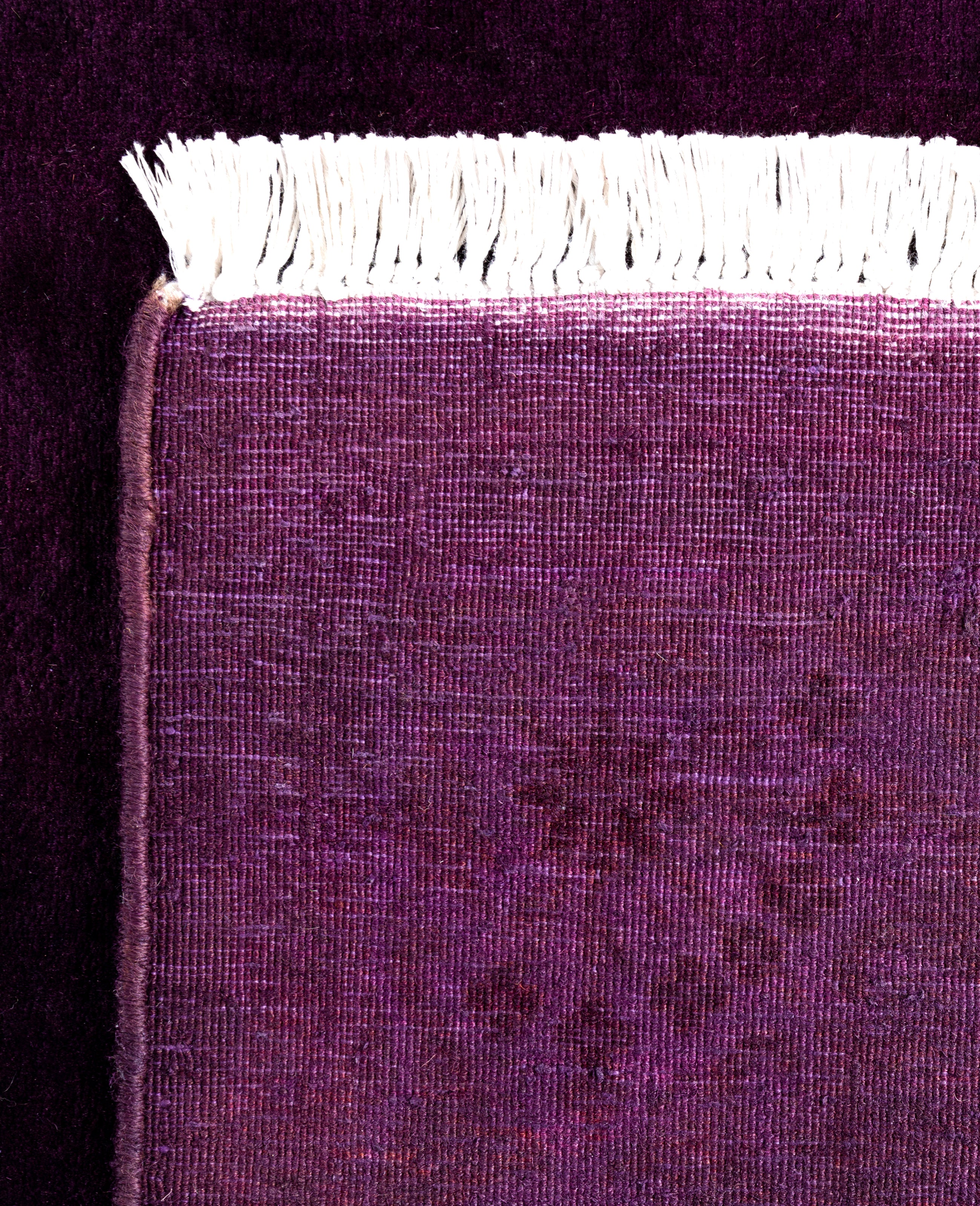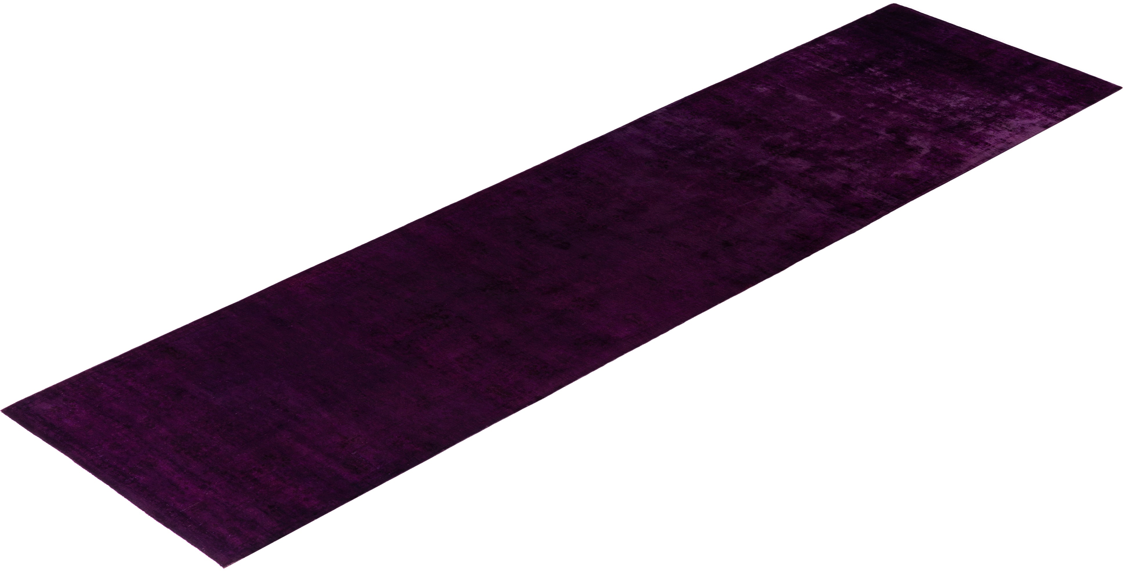 Contemporary Overdyed Wool Hand Knotted Purple Runner 3' 2" x 12' 5"