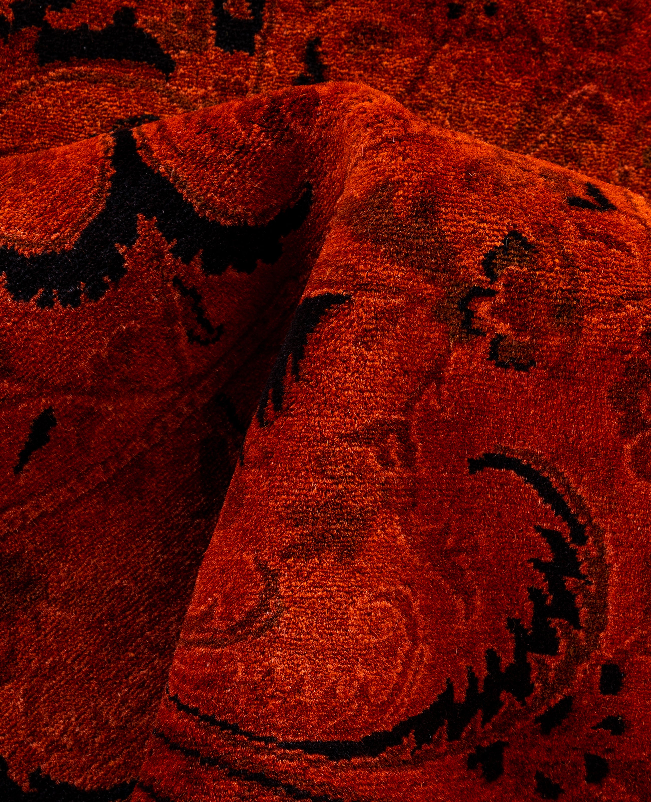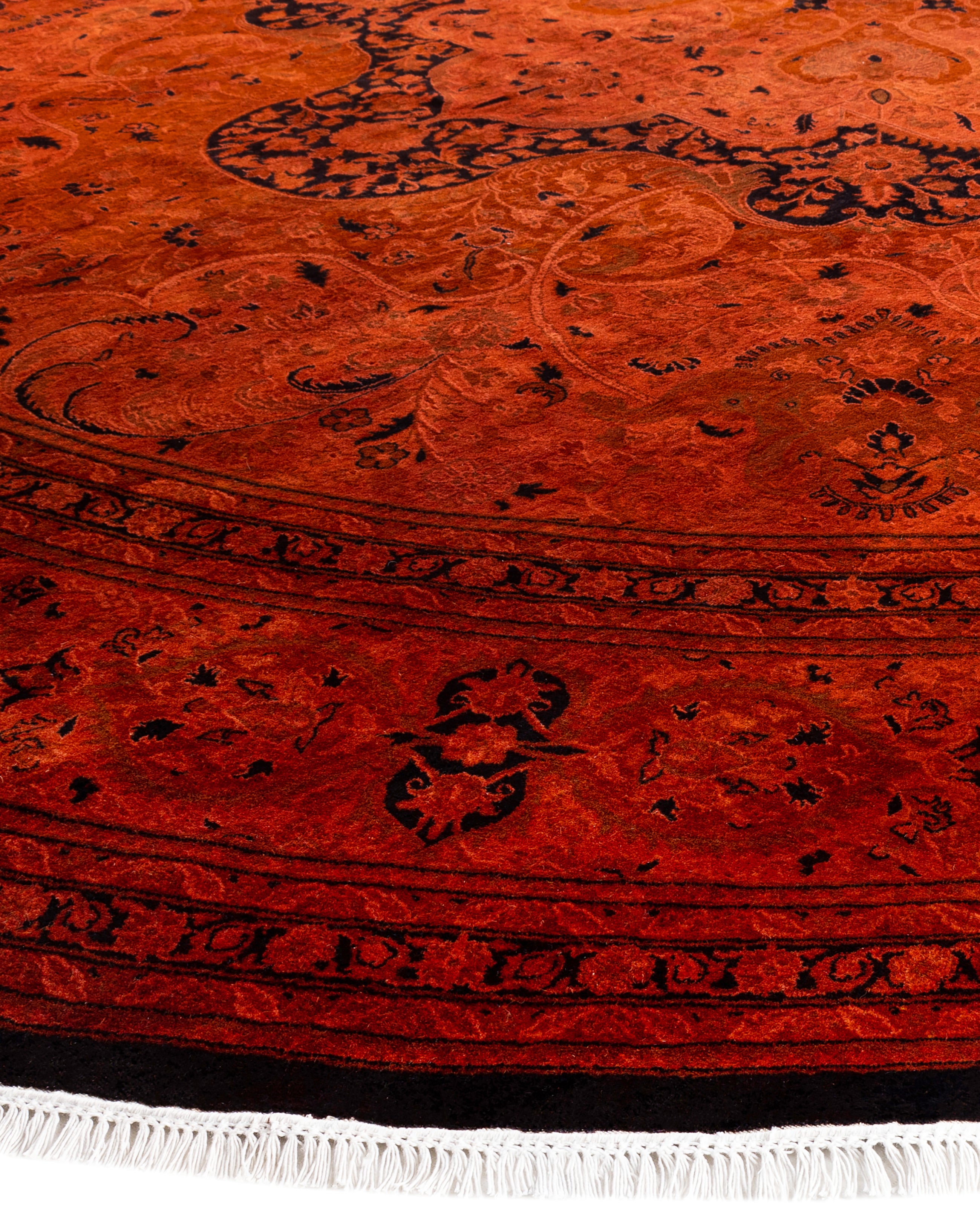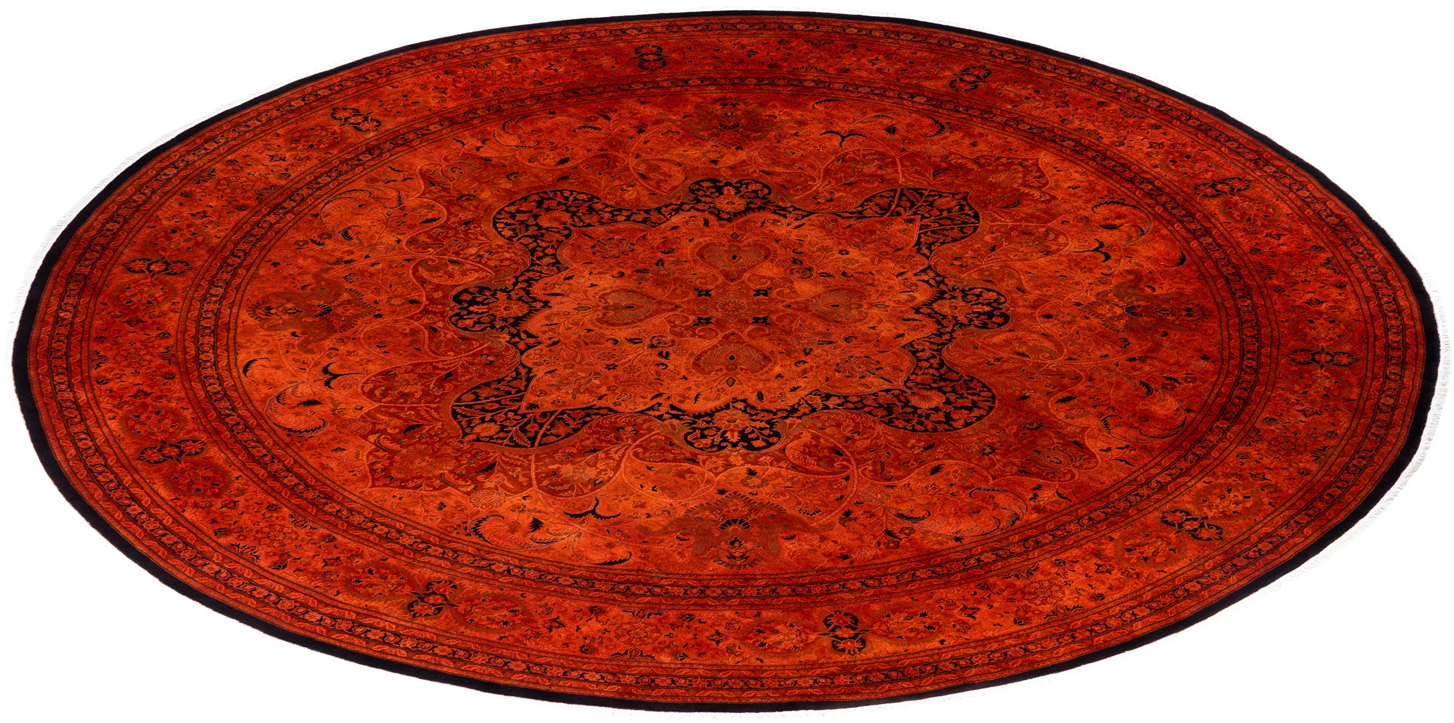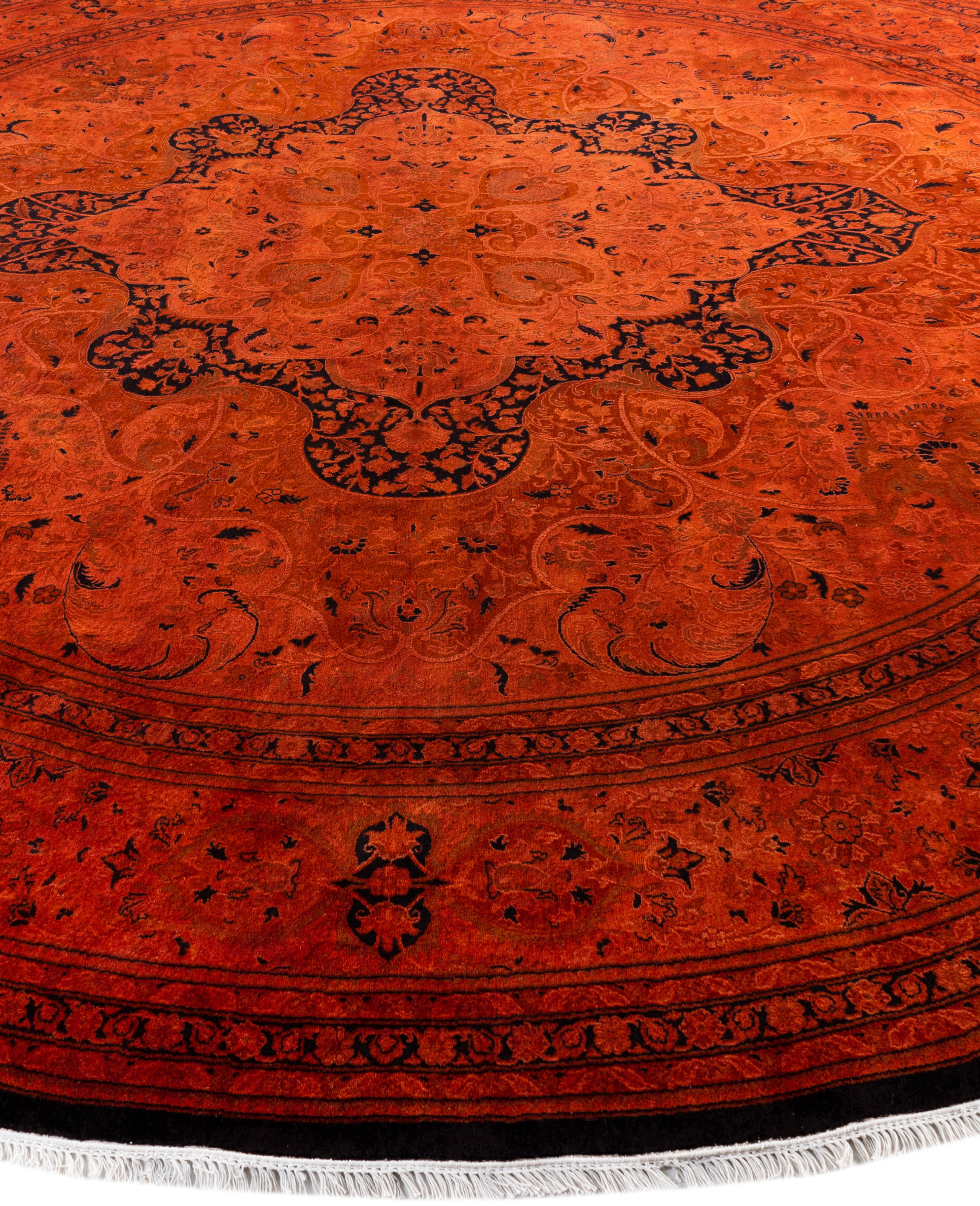 Contemporary Overdyed Wool Hand Knotted Orange Round Area Rug 12' 1" x 12' 1"