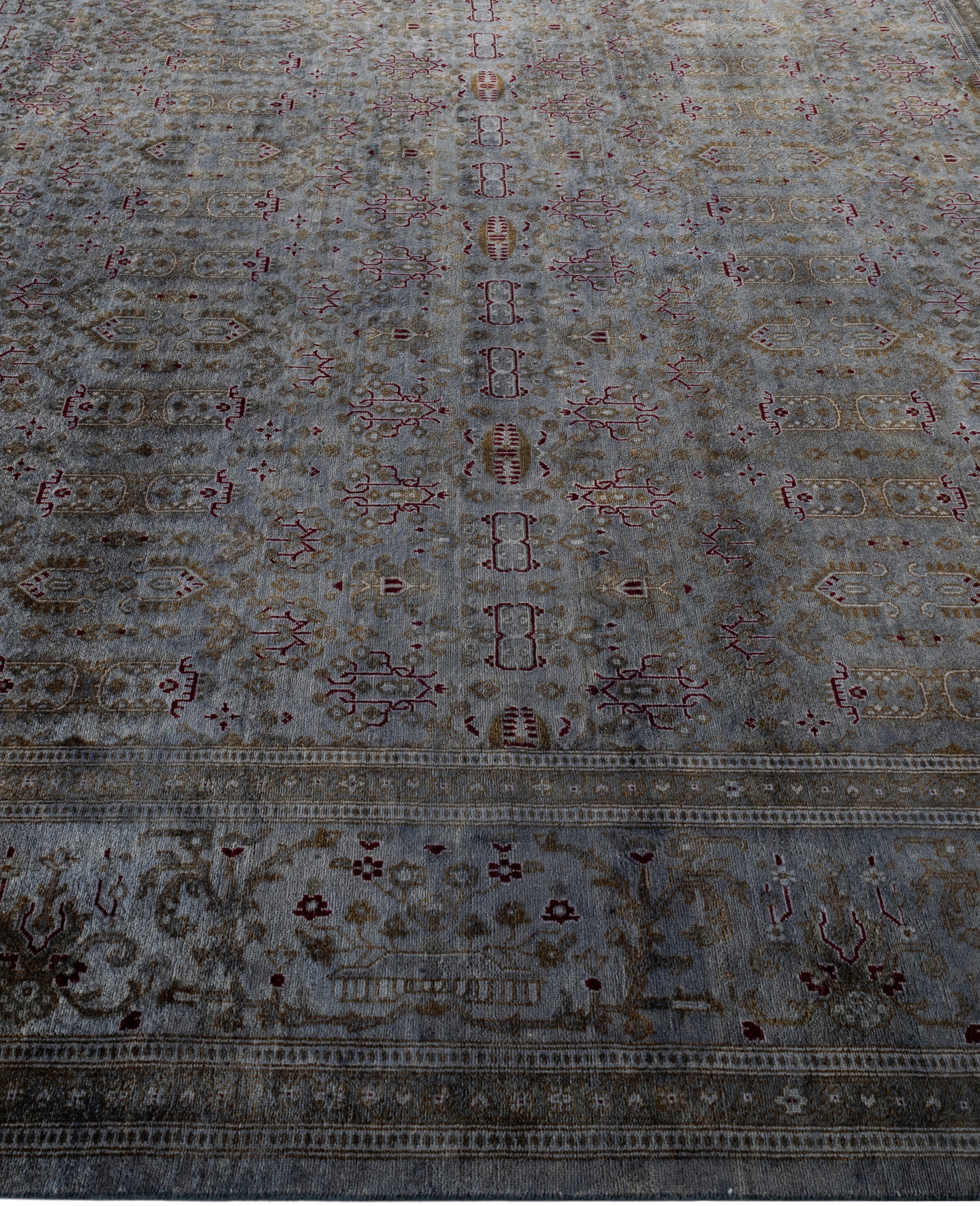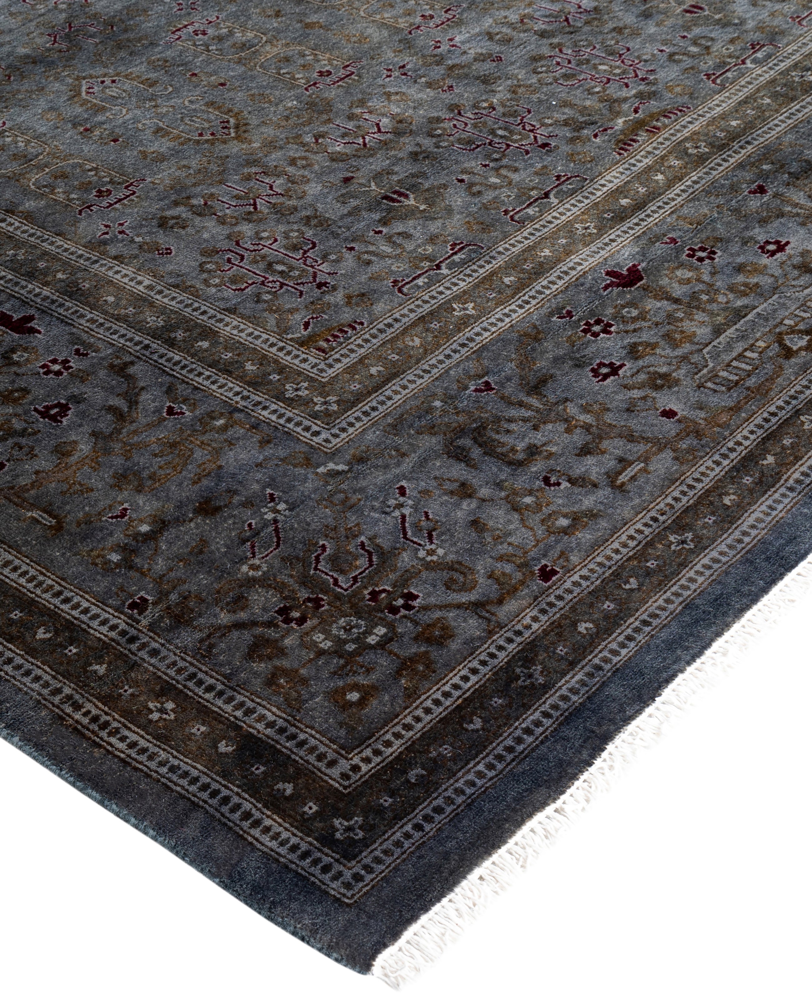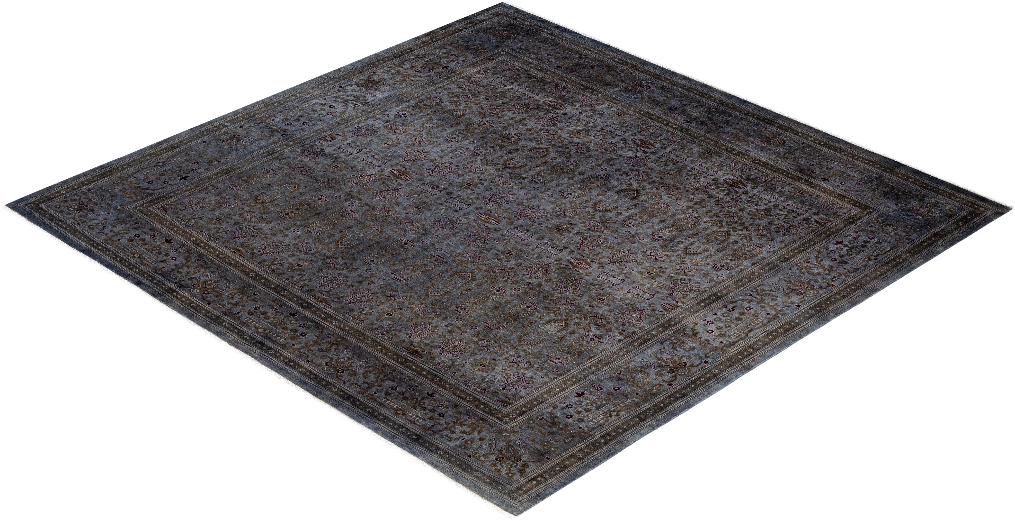 Contemporary Overdyed Wool Hand Knotted Gray Round Area Rug 8' 1" x 8' 1"