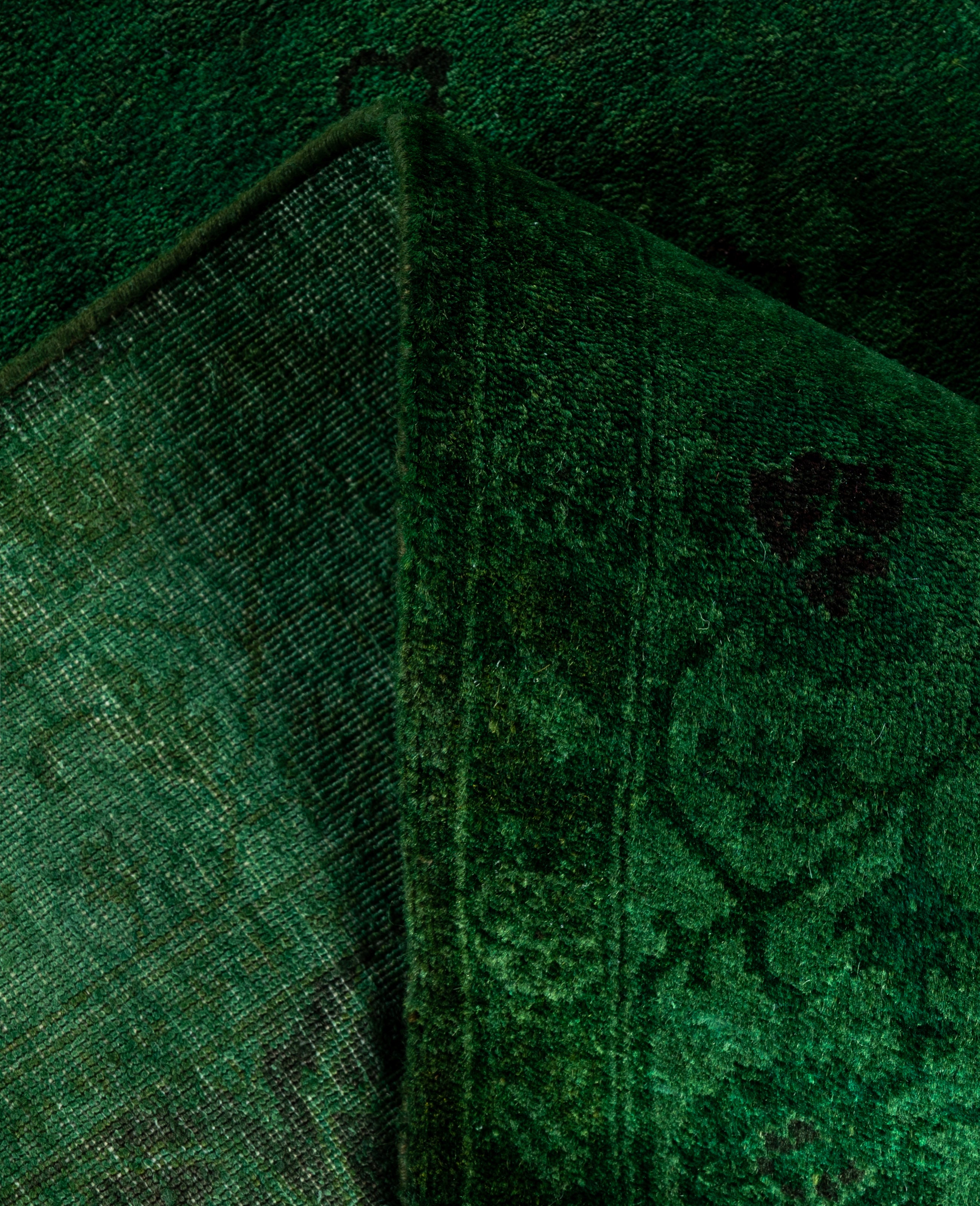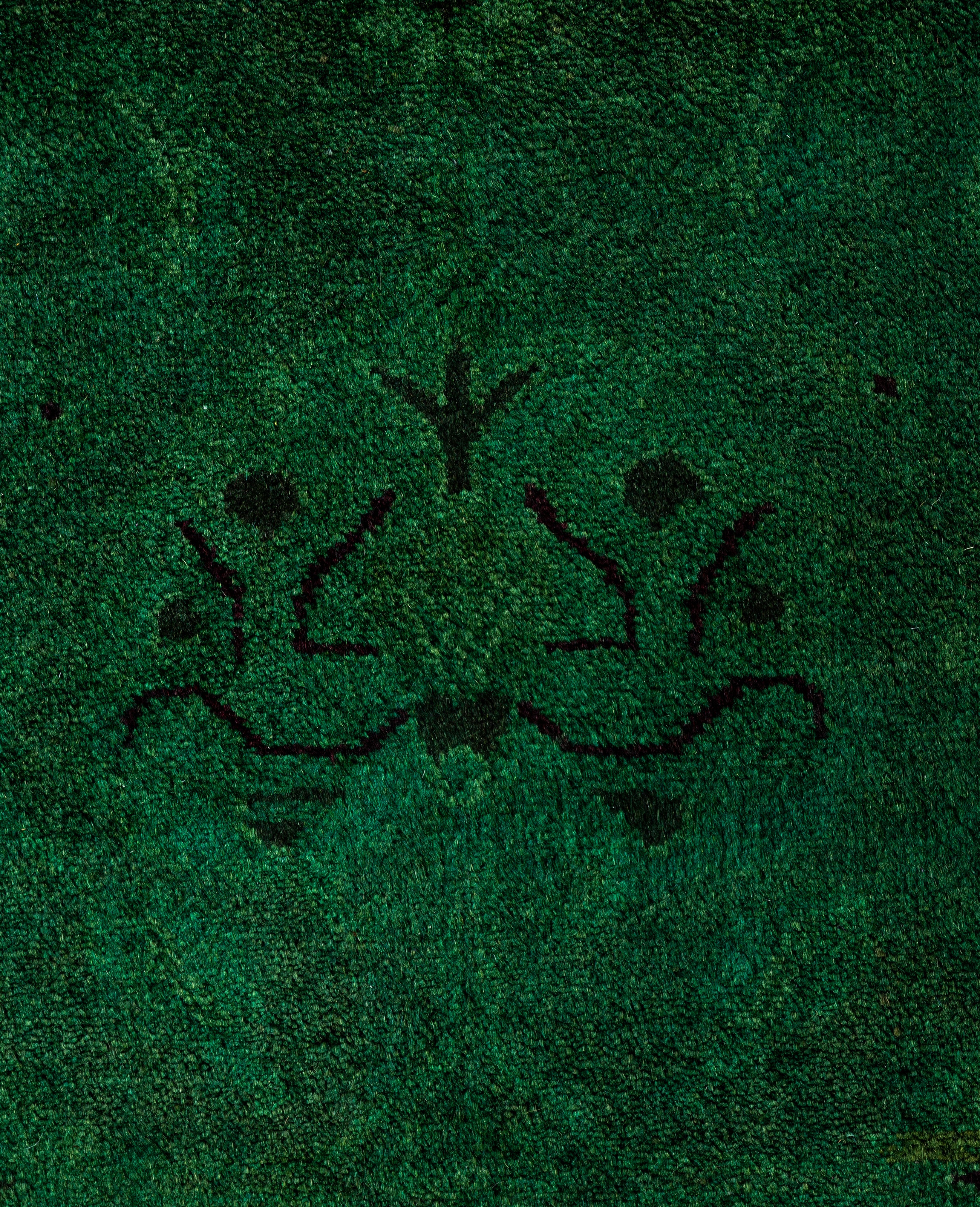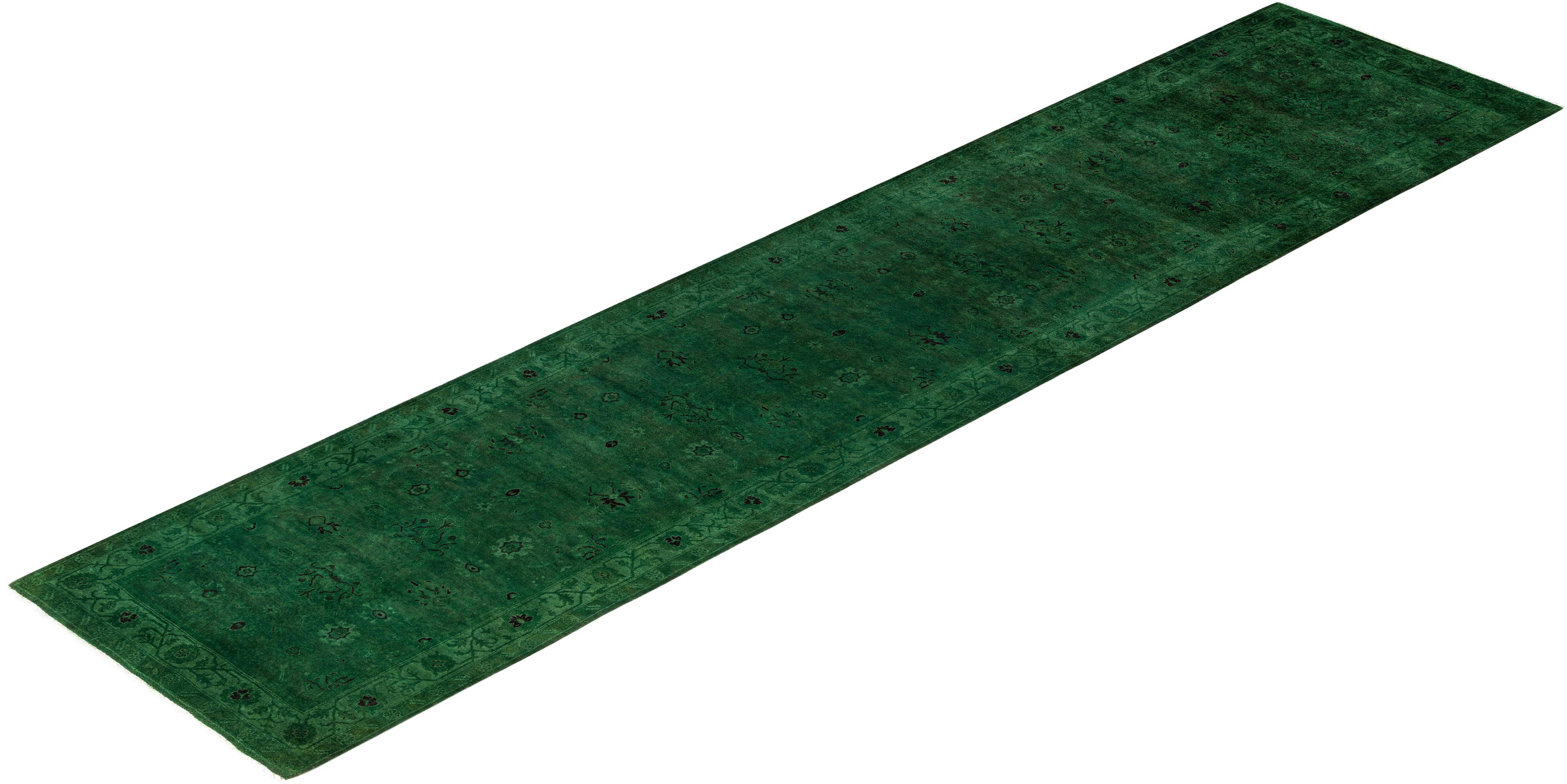 Contemporary Overdyed Wool Hand Knotted Green Runner 3' 1" x 13' 6"