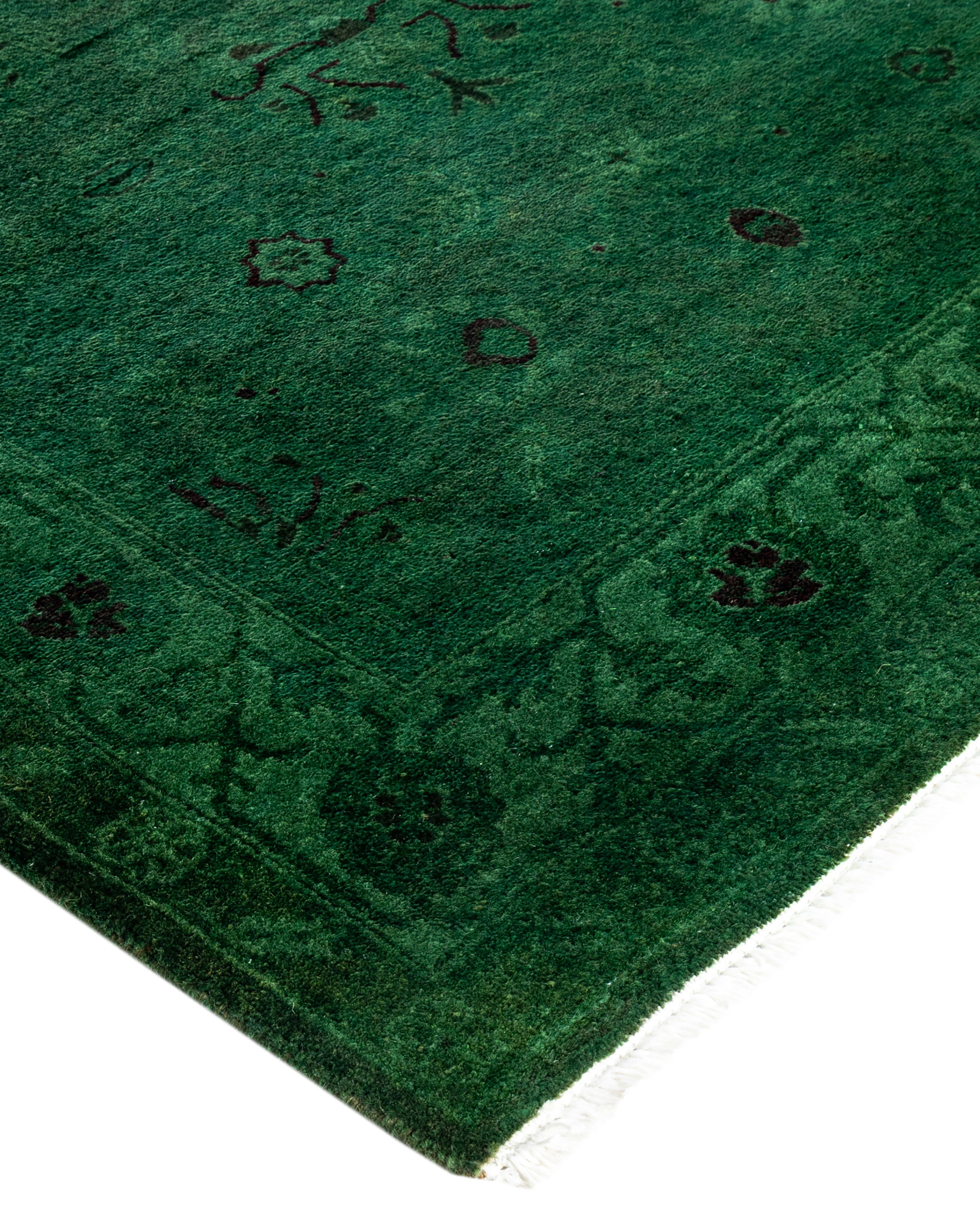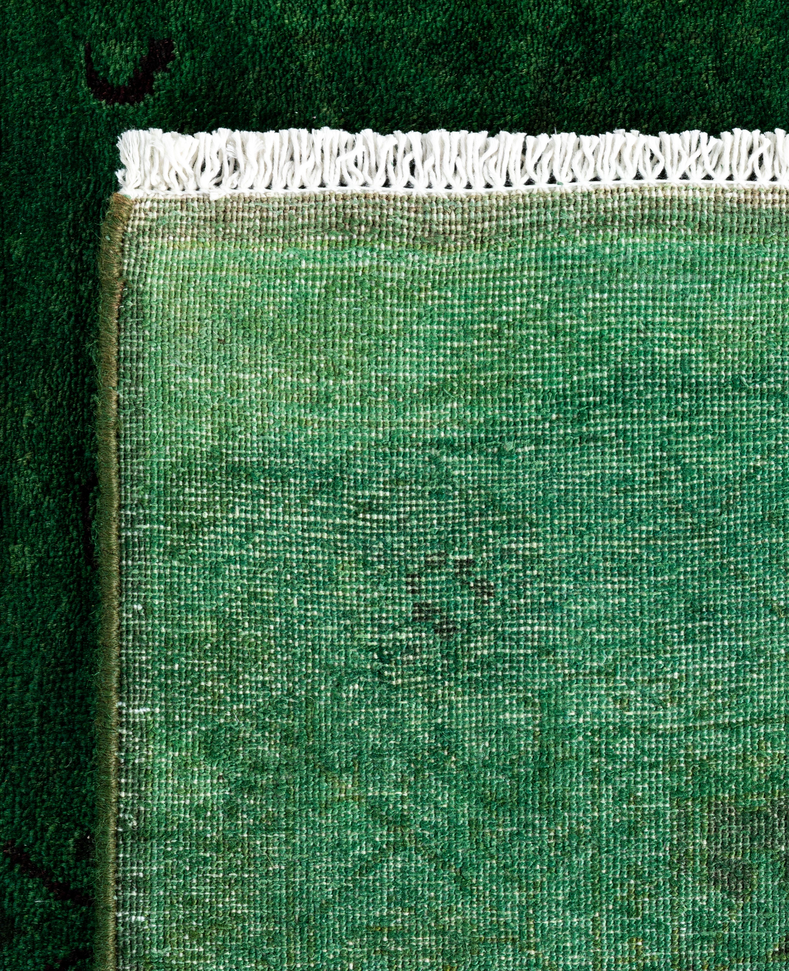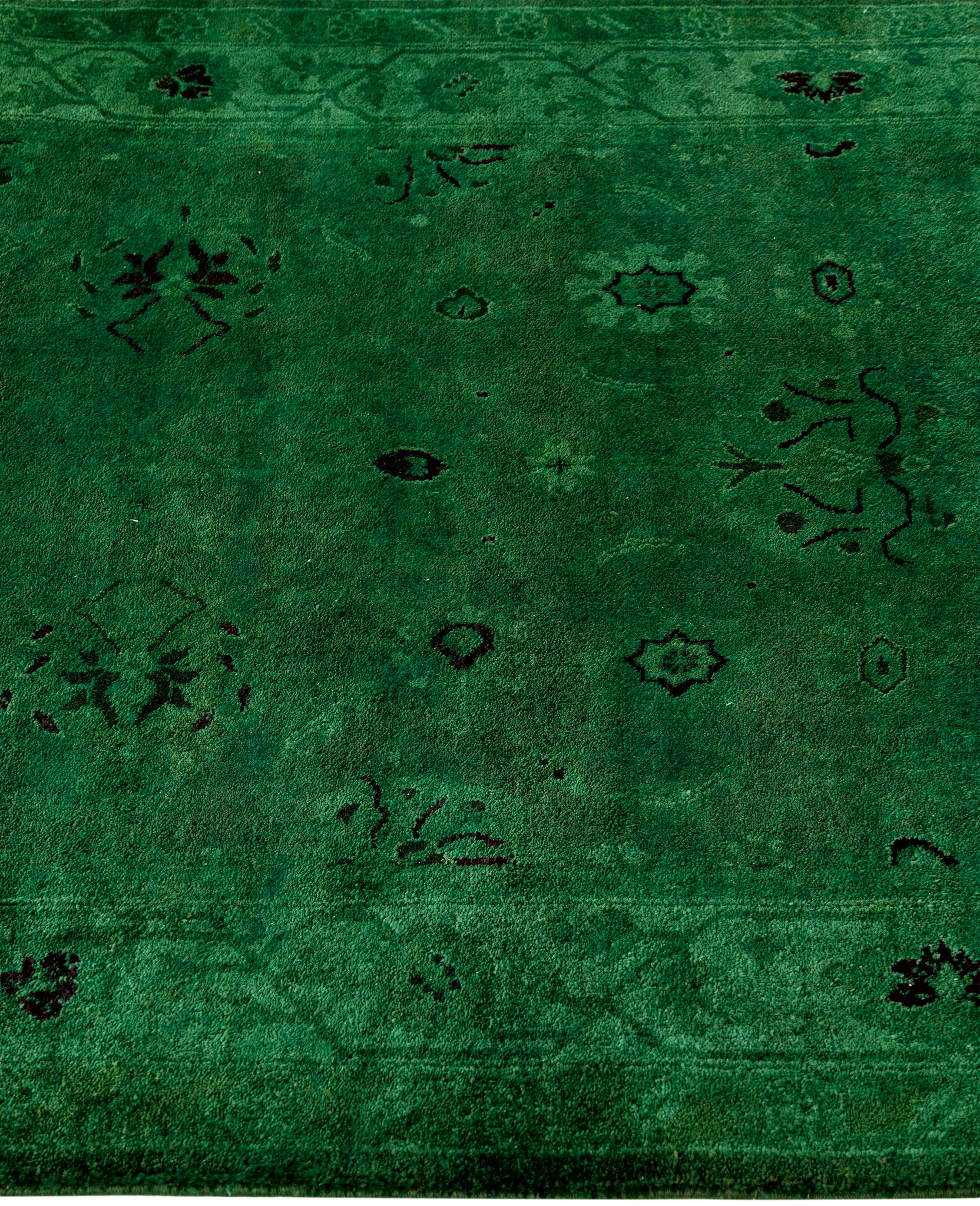 Contemporary Overdyed Wool Hand Knotted Green Runner 3' 1" x 13' 6"