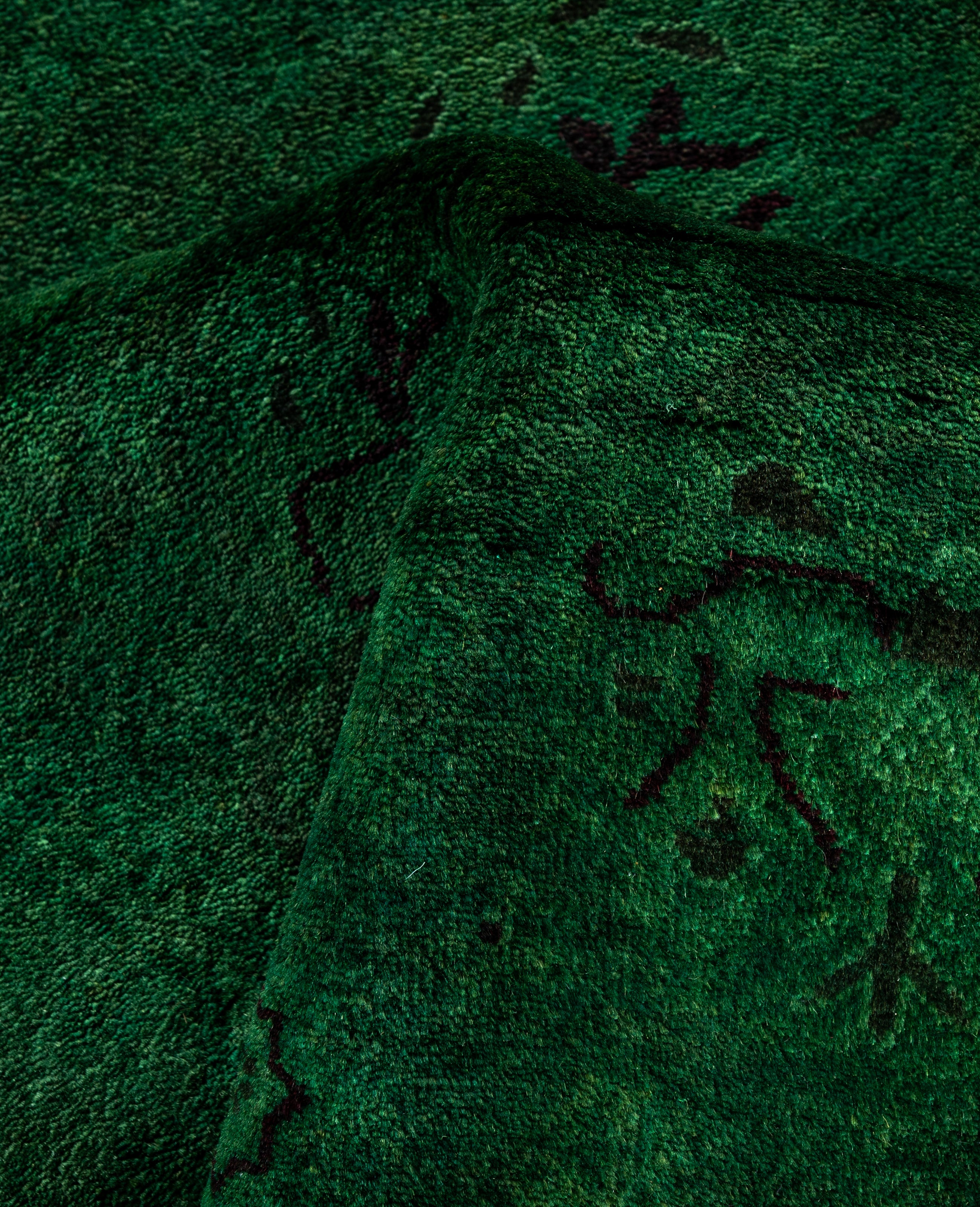 Over-dyed area rugs are created by taking vintage or traditional rugs and applying a vibrant, monochromatic dye over the existing patterns. This technique results in a bold, modern aesthetic while preserving the intricate designs beneath, blending the old with the new. The rugs are often faded and distressed before dyeing, which adds texture and depth to their appearance. The over-dye process breathes new life into worn or antique rugs, giving them a contemporary twist with rich, saturated colors like deep blues, purples, or bright reds. These rugs work well in both eclectic and modern spaces, offering a unique, artistic flair to any room. They provide a dynamic focal point, balancing between traditional craftsmanship and contemporary design trends. Over-dyed rugs are perfect for those looking to add a pop of color and character to their home decor.
