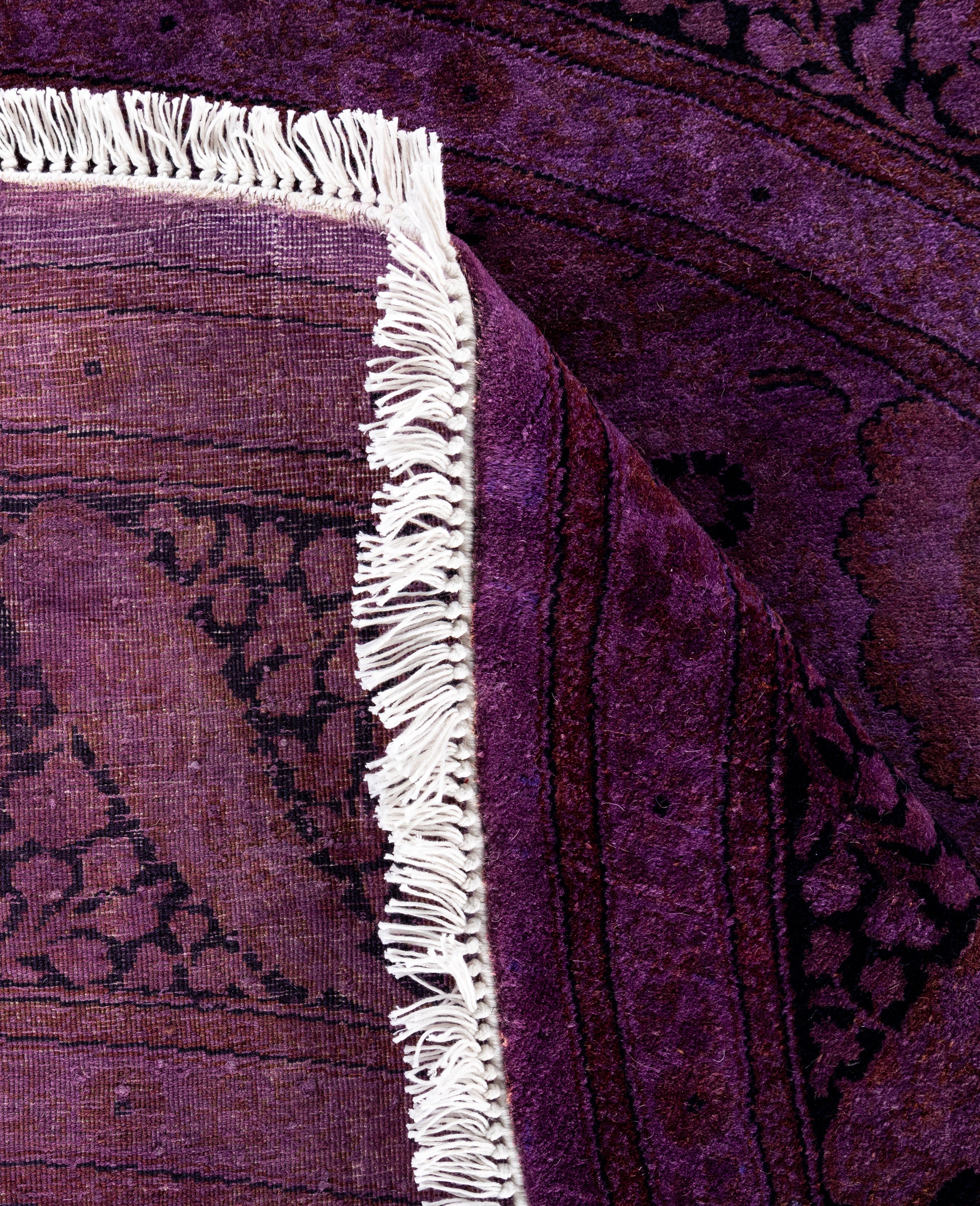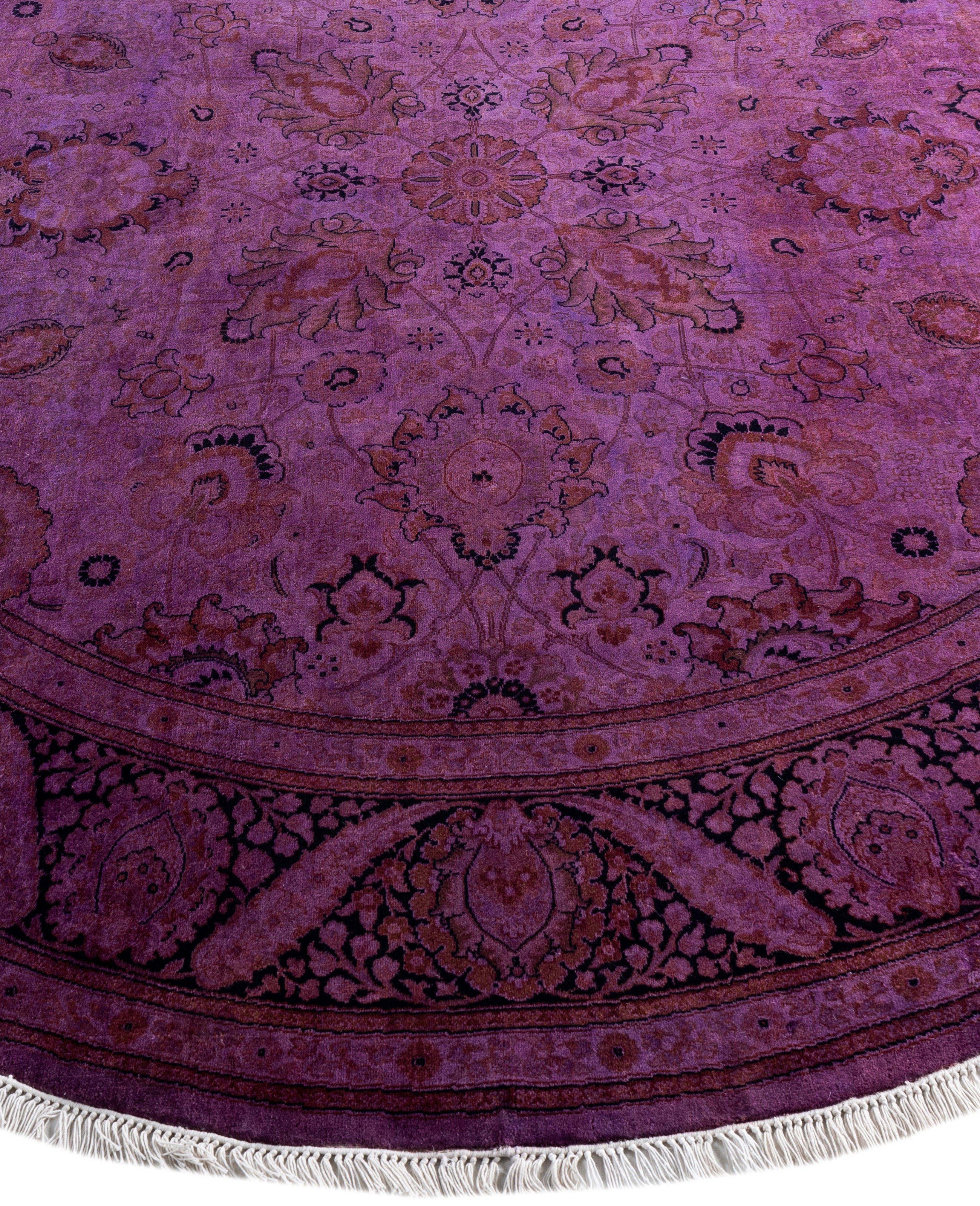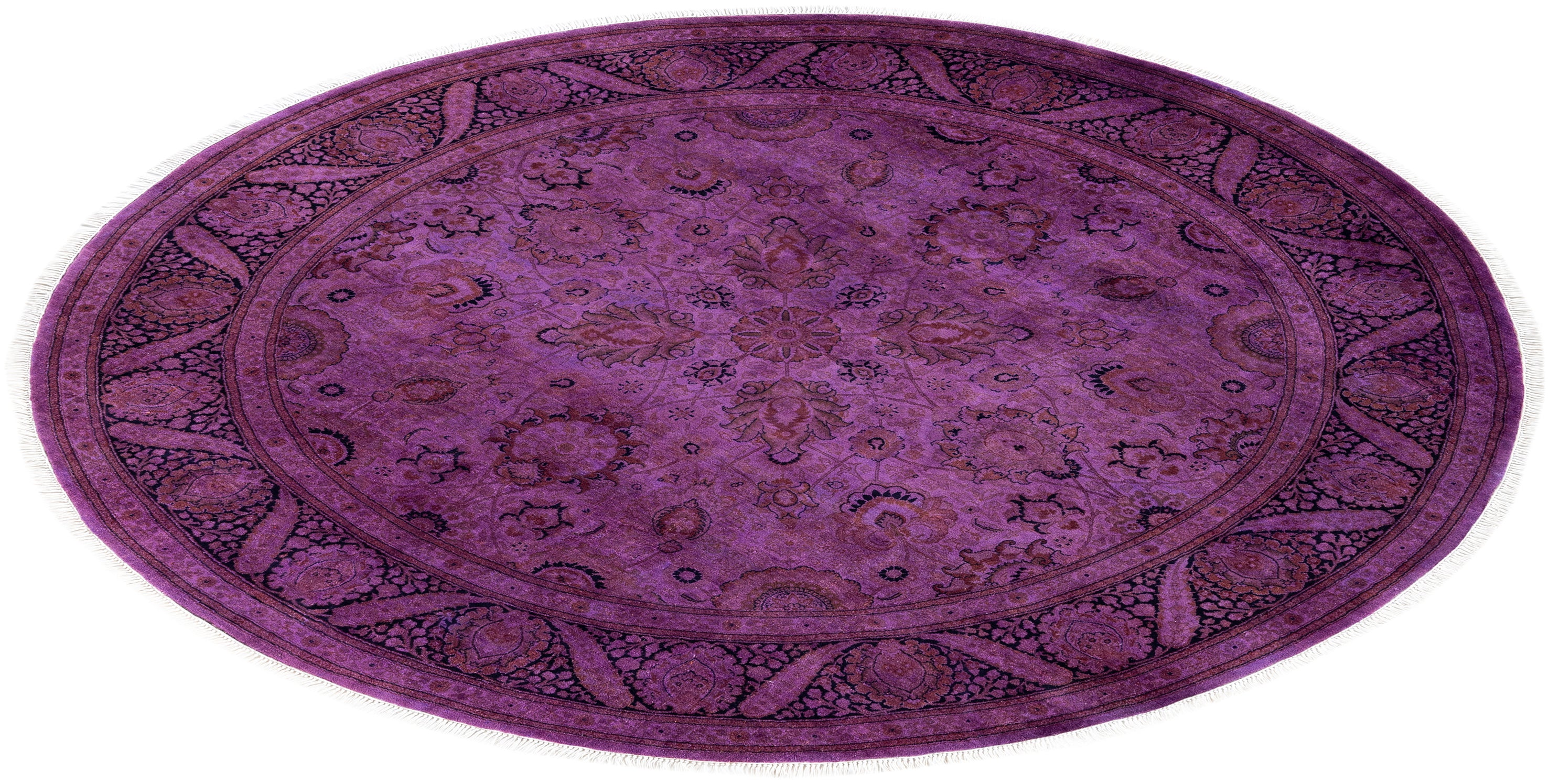 Contemporary Overdyed Wool Hand Knotted Purple Round Area Rug 7' 1" x 7' 1"