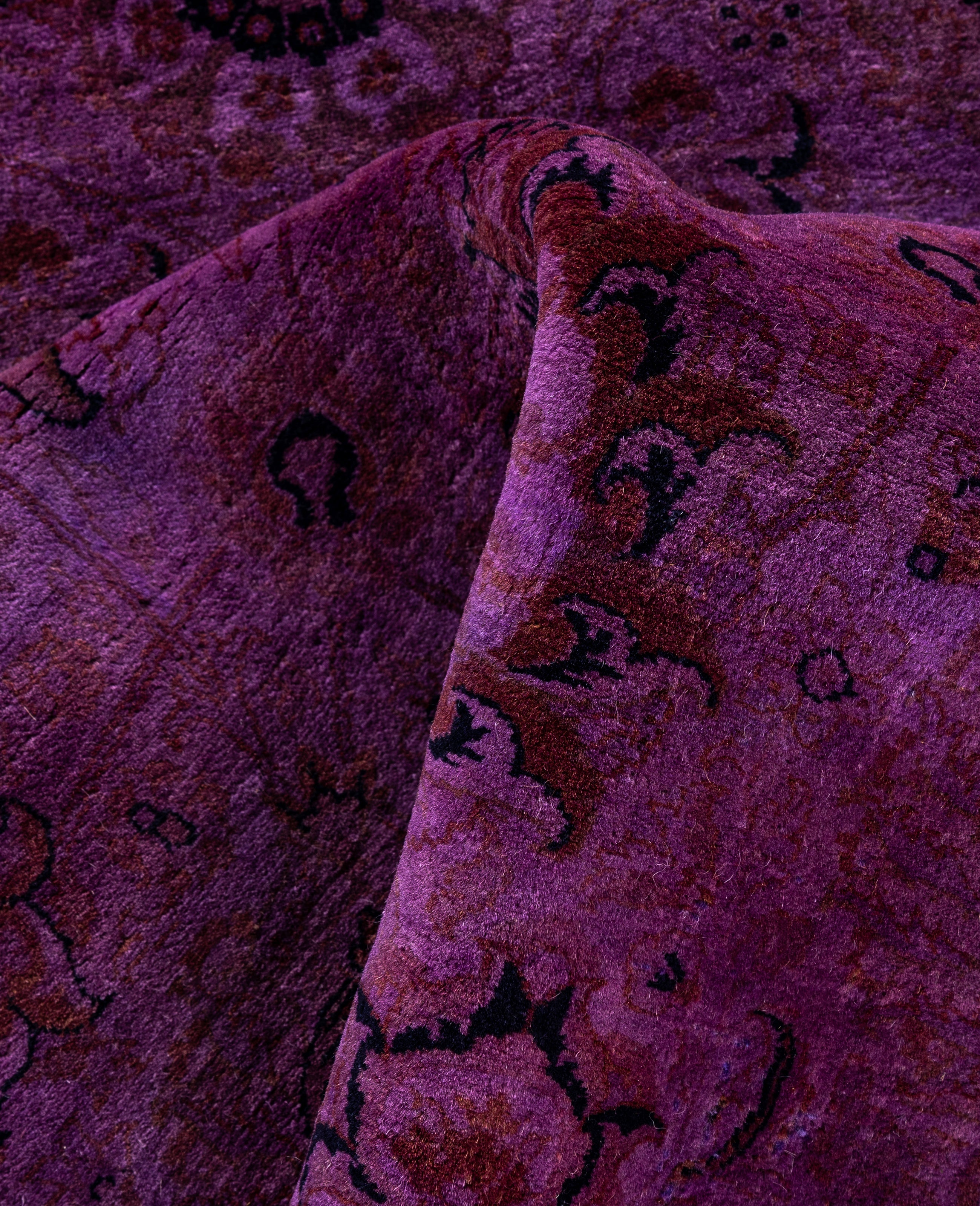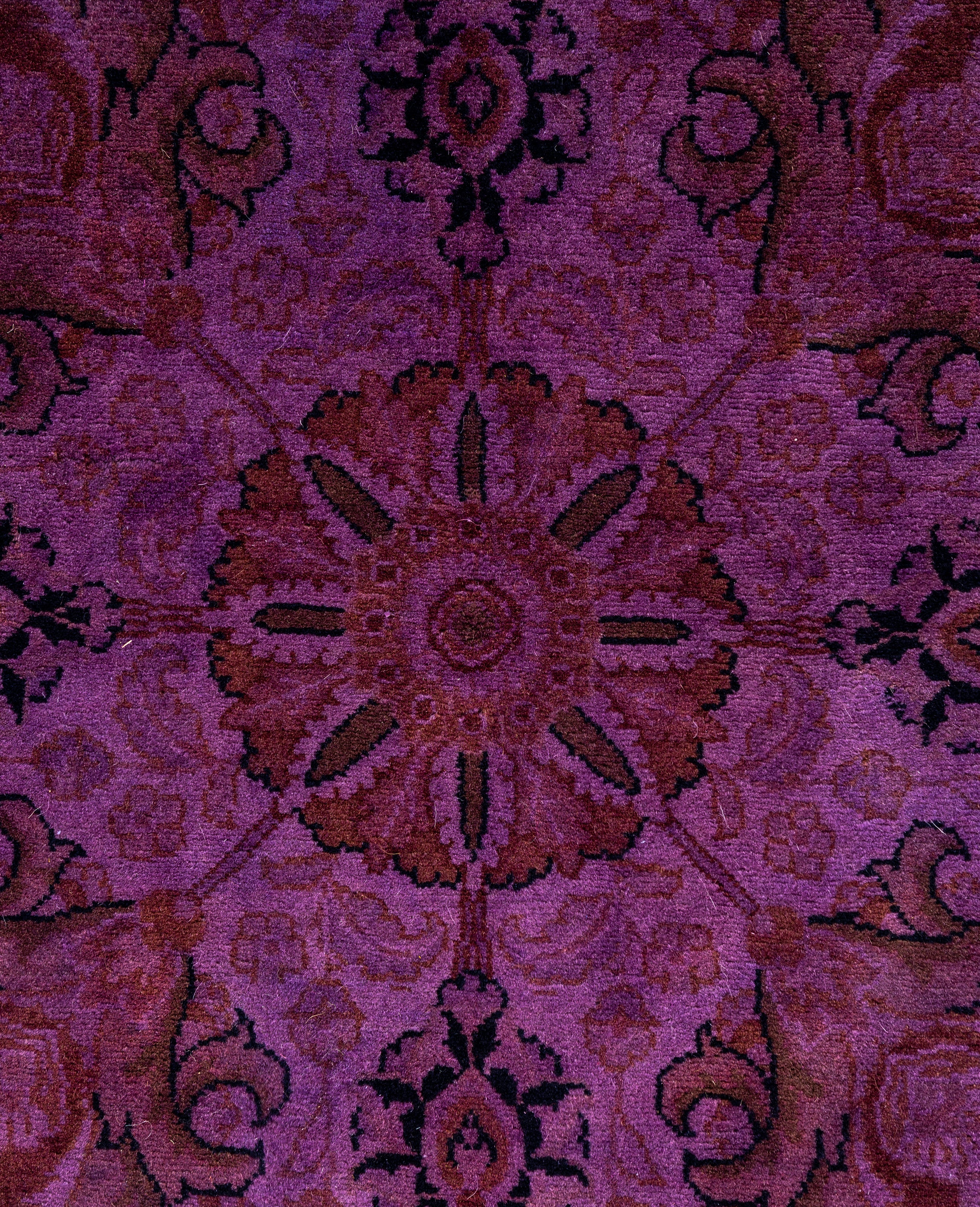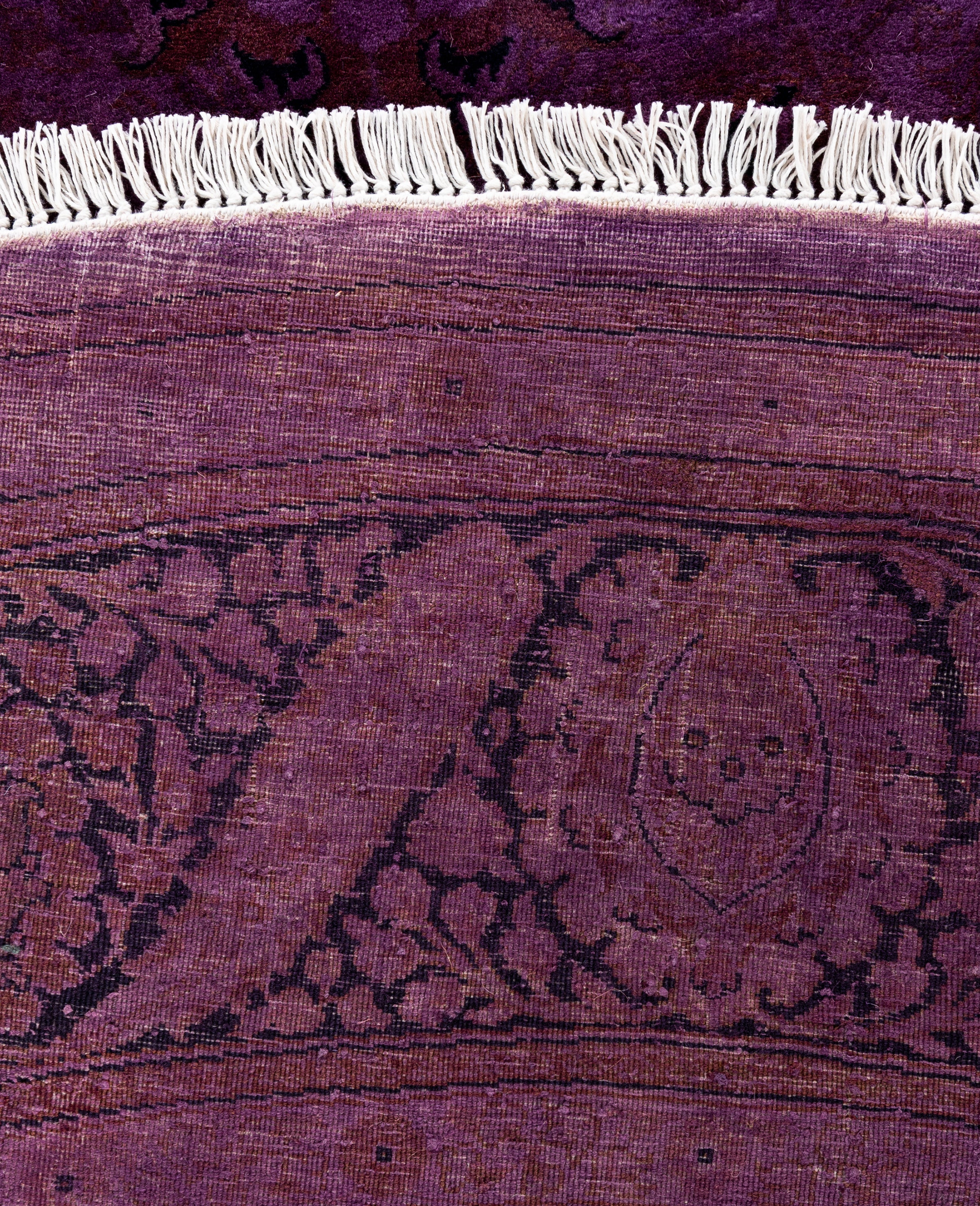 Contemporary Overdyed Wool Hand Knotted Purple Round Area Rug 7' 1" x 7' 1"