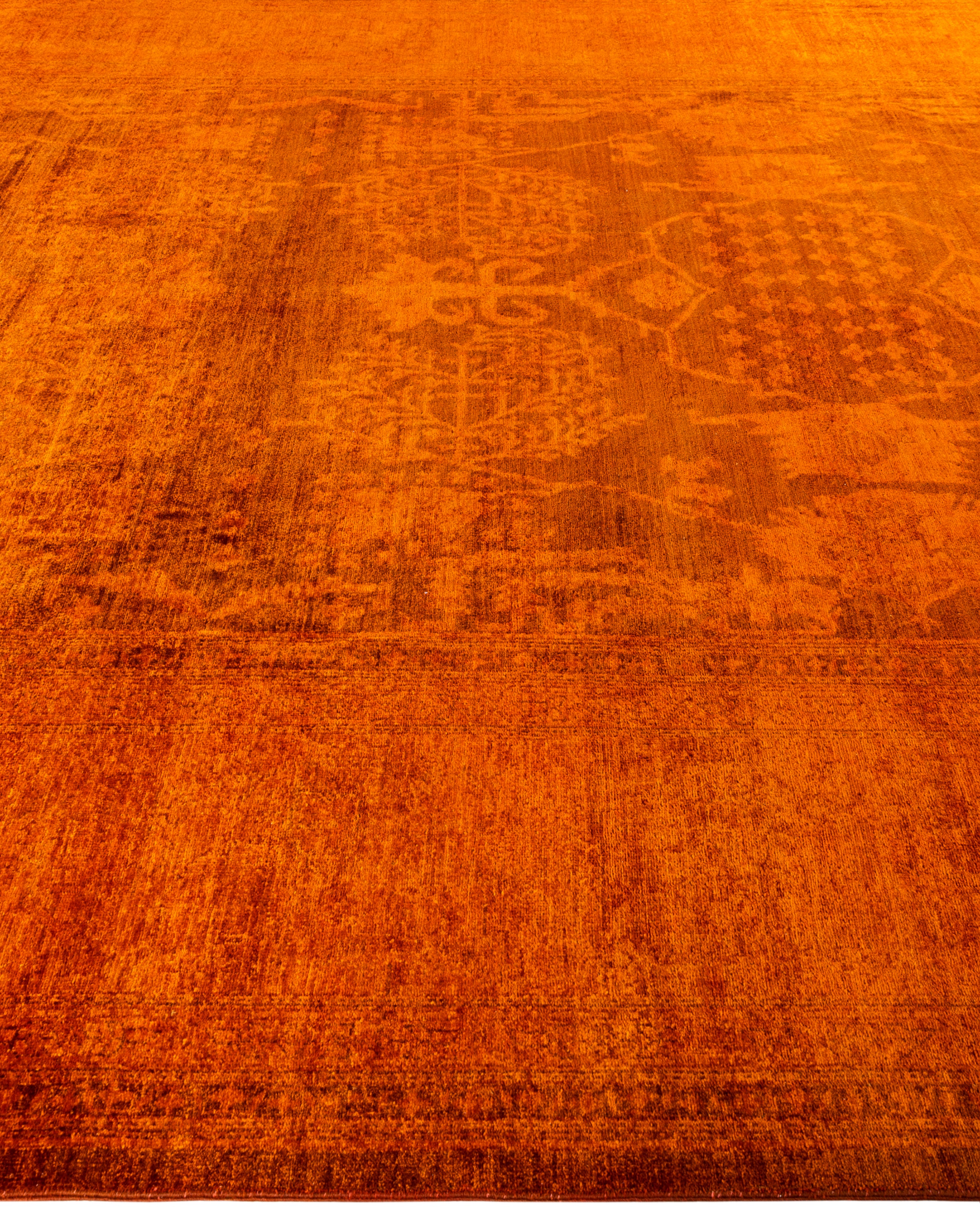 Contemporary Overdyed Wool Hand Knotted Orange Area Rug 10' 0" x 13' 9"