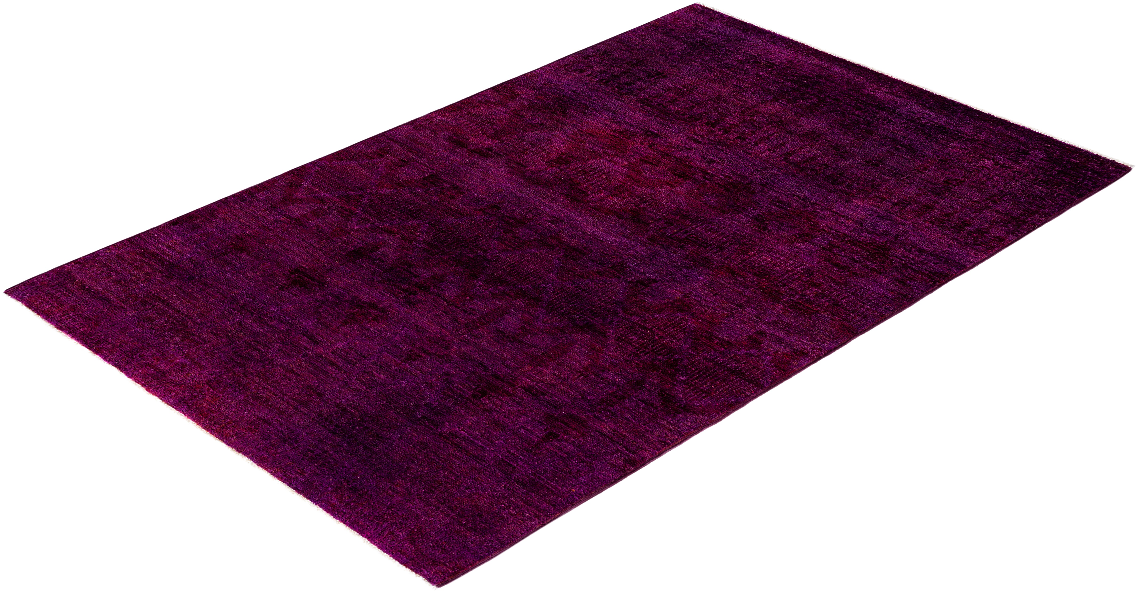 Contemporary Overdyed Wool Hand Knotted Purple Area Rug 4' 0" x 6' 0"