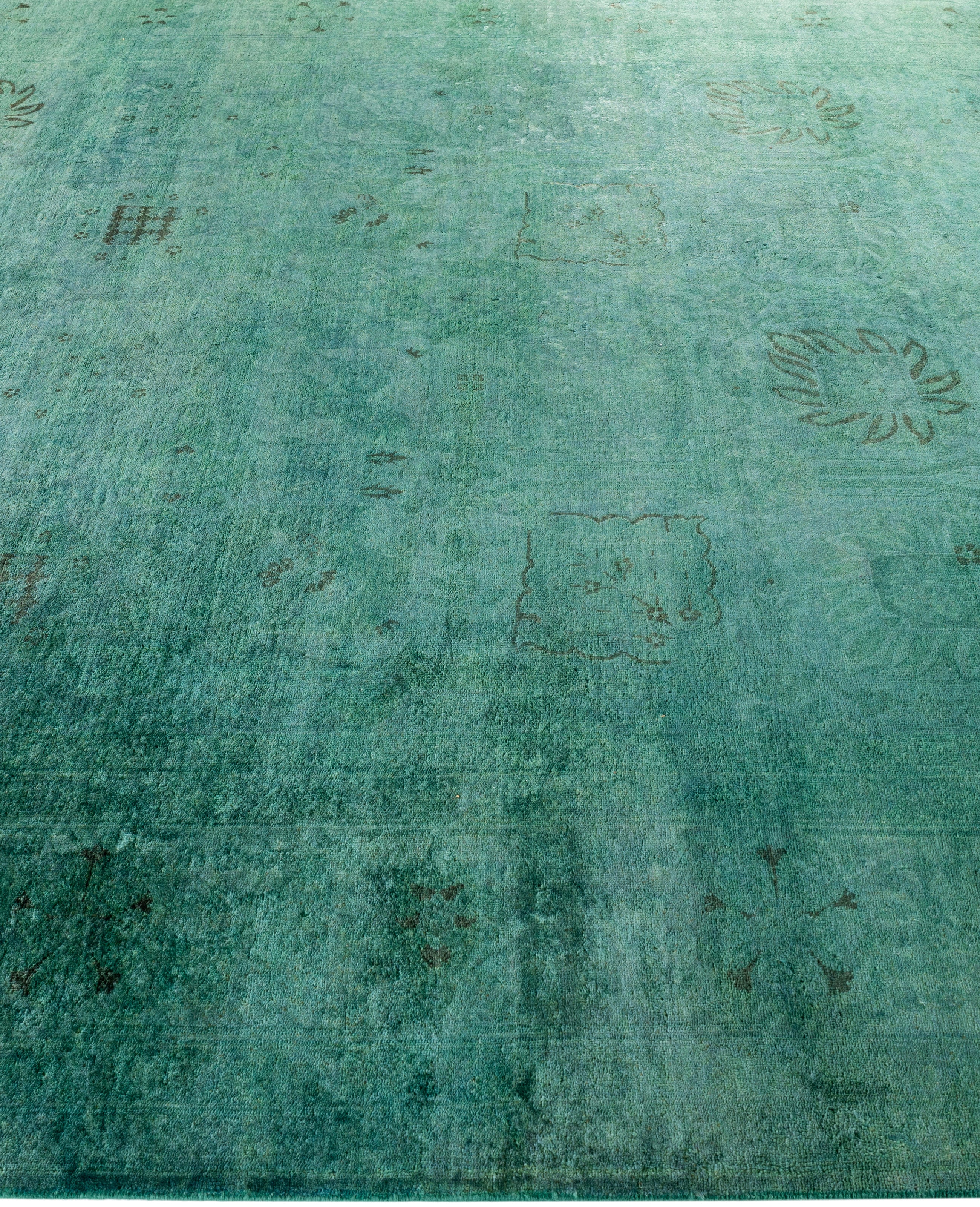 Contemporary Overdyed Wool Hand Knotted Green Area Rug 8' 1" x 9' 10"