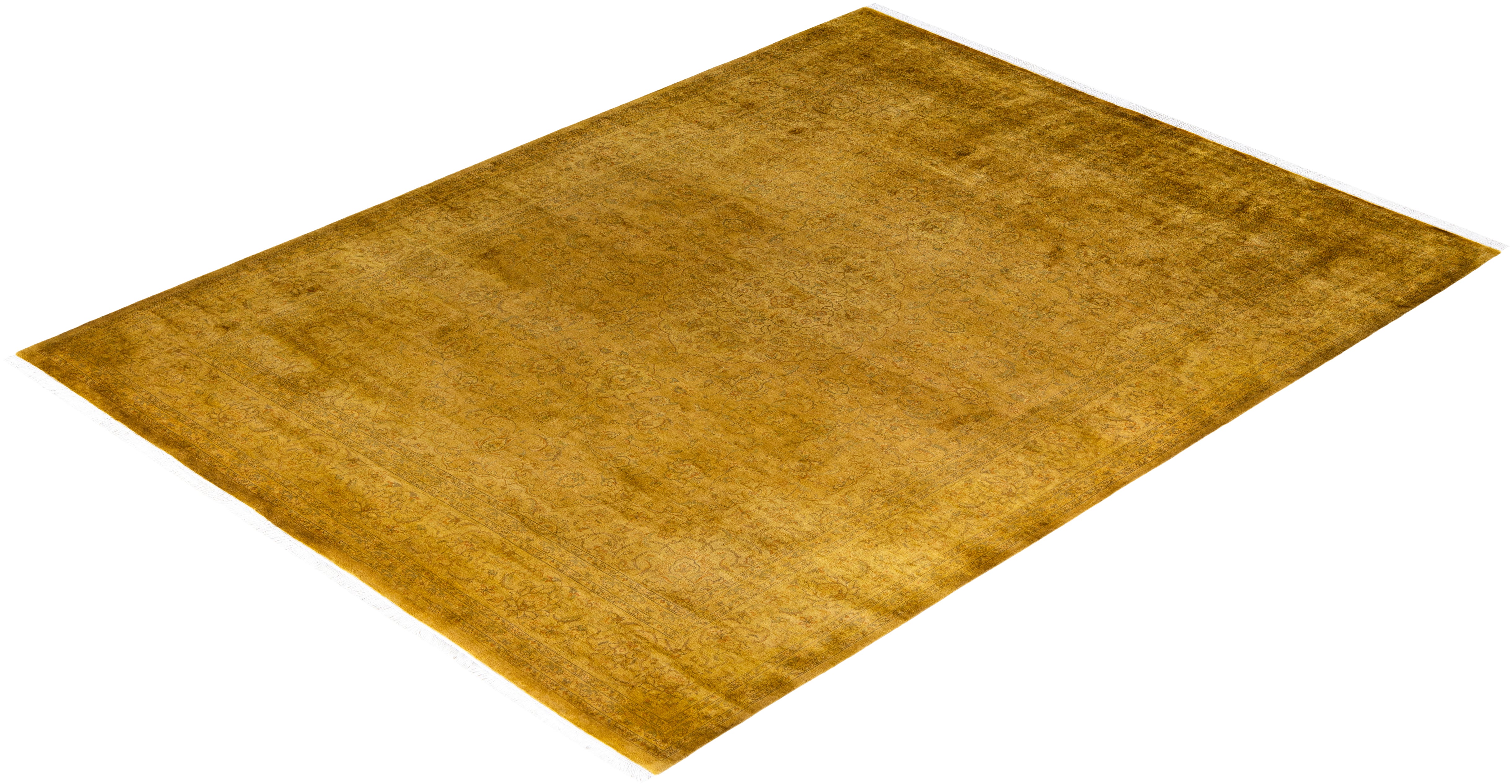 Contemporary Overdyed Wool Hand Knotted Gold Area Rug 8' 1" x 10' 5"