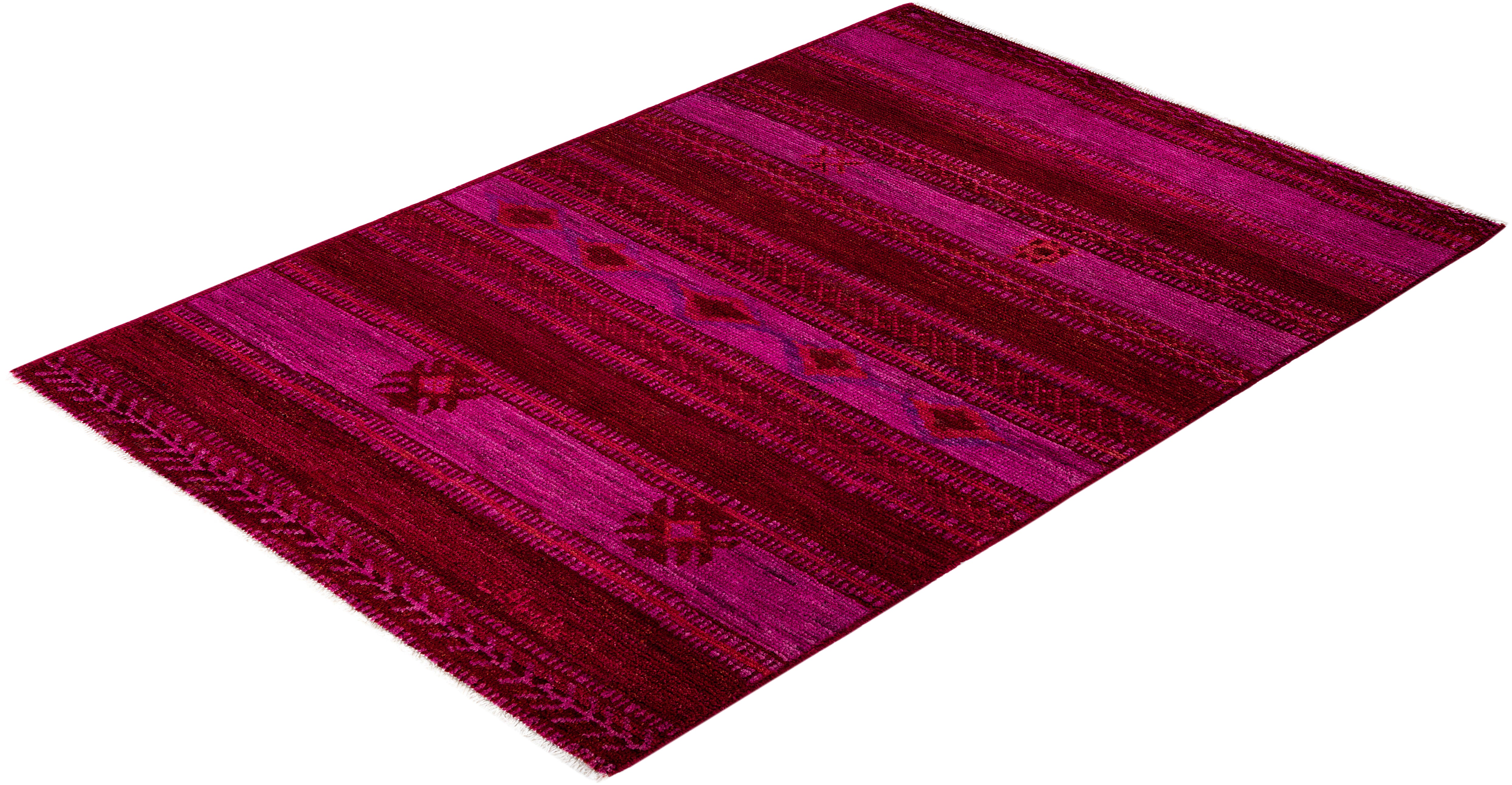 Contemporary Overdyed Wool Hand Knotted Purple Area Rug 4' 1" x 6' 1"